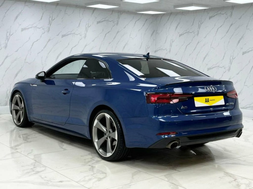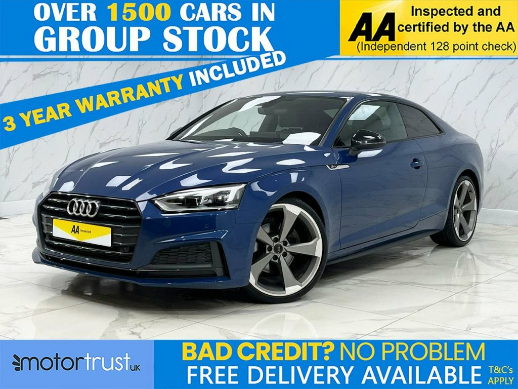 This 2019 Audi A5 TFSI Black Edition boasts a clear vehicle history, offering you complete peace of mind. This stylish coupe features a 2.0 litre petrol engine and meets Euro 6 emissions standards. As a Black Edition, it comes with a host of desirable features including LED headlights with dynamic rear indicators, a light and rain sensor for automatic light activation, and a deluxe 3 zone electronic climate control system. For added comfort, the front seats are heated, and the Bluetooth interface allows for seamless connectivity. The Audi A5 TFSI Black Edition is designed for efficiency and enjoyment, achieving an impressive 40 mpg. Its low CO2 emissions further highlight its economical nature compared to similar vehicles. This particular example will be supplied with a full 12 months MOT, ensuring its roadworthiness for the year ahead. Navarra Blue, Leather-Alcantara - Sport Seats with S E, 2 x SDXC Card Readers, 2 x USB Charging Ports and 1 x AUX-IN, 20in Alloy Wheels - 5-Arm Rotor Design w, 4-Way Electric Lumbar Support, 6-Airbag System, Air Inlets - Horizontal Inlay in Matt Al, Anti Theft Locking Wheel Bolts, Anti-Theft Alarm, Audi Connect Infotainment Services - 3 M, Audi Connect Safety and Service, Audi Drive Select, Audi Smartphone Interface, Audi Sound System, Auto-Dimming Rear-View Mirror, Bluetooth Interface, CD Drive, Chrome-Plated Exhaust Trim, Cloth Headlining in Black, Colour Drivers Information System with 7, Contrast Stitching on Seats - Steering W, Cruise Control with Speed Limiter, DAB Digital Radio Recept