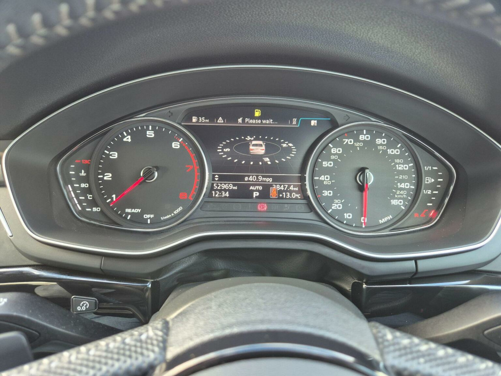 This Audi A5 TFSI Black Edition from 2019 boasts a full service history, with its last service completed at 52,971 miles on 21st October 2025, and an MOT valid until October 2026, offering excellent peace of mind. This stylish coupe features a 2.0 litre petrol engine and meets Euro 6 emissions standards. The Black Edition trim enhances its appeal with striking LED headlights and dynamic rear indicators, complemented by a Bluetooth interface for seamless connectivity. Inside, youll find the comfort of heated front seats and the convenience of deluxe 3-zone electronic climate control, all managed effortlessly with the light and rain sensor system. With an impressive fuel economy of 40 mpg, this Audi A5 TFSI Black Edition offers an efficient driving experience. Its low CO2 emissions further highlight its environmental consideration compared to similar vehicles. The combination of its comprehensive service record, long MOT, and desirable Black Edition specification makes this A5 a compelling choice for those seeking a well maintained and feature rich premium coupe.