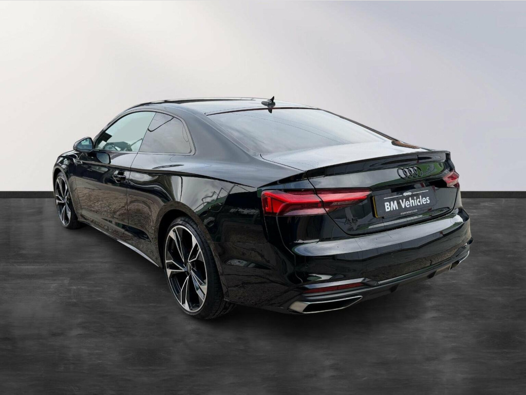 BM Vehicles are pleased to offer this stunning Audi A5 Black Edition Coupe. This vehicles has a massive specification including; Virtual Dash, Flat Bottom Steering Wheel, DAB Radio, Navigation, Bluetooth, Heated Seats, Front & Rear Parking Sensors, 360 Degree Reverse Camera, Apple CarPlay, Cruise Control, 20-inch Alloys and much more! All our vehicles come with a minimum of 6 months service and MOT and are prepared to a high standard. 12 months breakdown cover provided on all vehicles. All vehicles are HPI clear, assuring you that there is no outstanding finance or that the vehicle has not been involved in a previous accident. Finance available from our large panel of lenders, (subject to status) - part exchanges accepted. Viewings by appointment only, please call our team for more information.