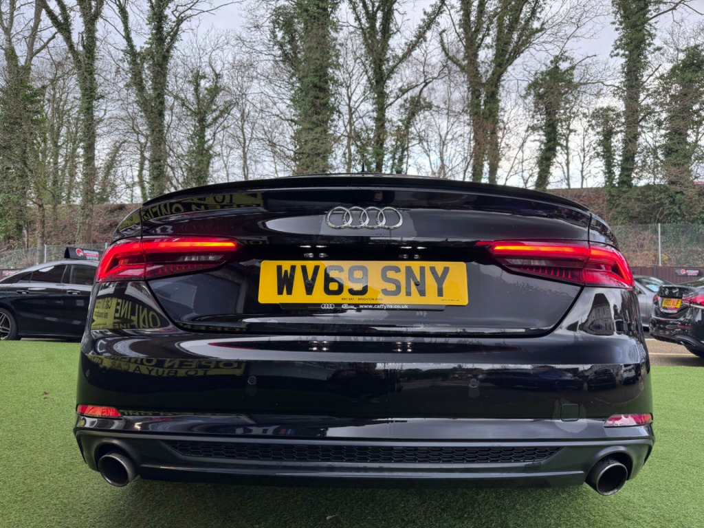 DEPOSIT TAKEN - SIMILAR WANTED This 2019 Audi A5 TFSI Black Edition offers a compelling blend of style and performance, boasting a powerful 2.0 litre petrol engine and meeting Euro 6 emission standards. As a Black Edition model, it comes equipped with striking LED headlights and rear lights, complete with dynamic rear indicators for enhanced visibility. Inside, you'll find comfort and convenience with Deluxe 3-zone electronic climate control and heated front seats, ensuring a pleasant driving experience in any weather. The inclusion of a light and rain sensor means the headlights automatically adjust, while the Bluetooth interface allows for seamless connectivity on the go.The Audi A5 TFSI Black Edition truly excels with its dynamic capabilities, achieving an impressive 0-62mph acceleration in just 7.5 seconds. This swift performance, combined with the sophisticated features like the advanced climate control and LED lighting, positions this vehicle as a superior choice compared to others in its class. The thoughtful integration of technology and comfort makes this A5 a refined and capable option for any discerning driver. x sdxc card readers, 2 x usb charging ports and 1 x aux-in, 20in alloy wheels - 5-arm rotor design with matt titanium-look, 4-way electric lumbar support, 6-airbag system, air inlets - horizontal inlay in matt aluminium, anti theft locking wheel bolts, anti-theft alarm, audi connect infotainment services - 3 month trial, audi connect safety and service, audi drive select, audi smartphone interface, audi sound system, auto-dimming rear-view mirror, bluetooth interface, cd drive, chrome-plated exhaust trim, cloth headlining in black, colour drivers information system with 7in high-resolution tft screen, contrast stitching on seats - steering wheel and gear lever gaiter, cruise control with speed limiter, dab digital radio reception, deluxe 3-zone electronic climate control, door mirrors - folding, door mirrors - high-gloss black, esc - electronic stabilisation control inc abs - asr and edl, electric windows - front, electromechanical parking brake, electromechanical power steering, first aid kit and warning triangle, flat-bottomed 3-spoke leather high multi-function steering wheel, front centre armrest, front and rear air intakes in titanium black, front and rear floor mats, gear lever knob in black perforated leather, heated front seats, high gloss package, high-beam assist, hill hold assist, honeycomb side air inlet grille in titan black, isofix child seat mounting and top tether, inlays - piano finish - black, interior lighting, keyless go, led headlights with led rear lights and dynamic rear indicators, led interior light package, light and rain sensor, luggage compartment mat, mmi navigation, manual seat adjustment, multi collision brake assist, navigation preparation - ready 4 nav, non-smoking package, parking system plus, pedals and footrest - stainless steel, pop-up bonnet for pedestrian protection, power operated tailgate, pre-sense city, privacy glass - side and rear windows, radiator grille and frame in titanium black, rear diffuser strip in chrome, rear diffuser in twilight grey matt with honeycomb grille, rear grille - black grained, s style rear spoiler in high gloss black, seat belt monitoring, space saver spare wheel, split-folding 3-seater rear seat bench in 3 parts - 40-20-40, sport suspension, tool kit and car jack, tyre pressure warning light, variable restraint system, voice control system, window surrounds in titanium black, windscreen with acoustic glazing