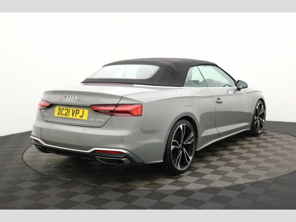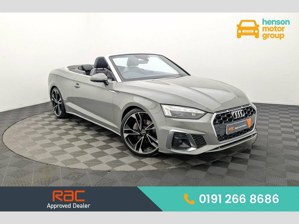 Henson Car Store presents the AUDI A5 CABRIOLET 2.0 TFSI 40 Edition 1 Convertible 2dr Petrol S Tronic Euro 6 (s/s) finished in Grey, this car comes with service history. A beautifully refined and sporty convertible that delivers premium comfort with effortless performance. This Audi A5 Cabriolet is powered by the 2.0-litre TFSI petrol engine producing 204 PS, paired with Audi's smooth S Tronic automatic gearbox, offering strong acceleration, refined cruising and excellent everyday usability. Euro 6 compliant and ULEZ friendly, it's ideal for both city driving and longer journeys. The Edition 1 trim brings an enhanced level of luxury and technology, with striking exterior styling, sleek LED lighting and eye-catching alloy wheels that give the A5 a confident road presence. The fully electric soft-top roof operates smoothly and can be opened or closed quickly, allowing you to enjoy open-top motoring at the touch of a button. Inside, the cabin is finished to Audi's usual high standards, featuring leather and Alcantara sports seats, Audi Virtual Cockpit, MMI Navigation Plus, Apple CarPlay and Android Auto, and a premium infotainment system. Comfort and convenience are further enhanced with dual-zone climate control, cruise control, parking sensors and a host of advanced driver assistance features. Stock Number 020 20in Alloy Wheels - 9J 5-Twin-Spoke - Po, 4-Way Electric Lumbar Support, 6-Airbag System, 8 Passive Loudspeakers, Anti Theft Locking Wheel Bolts, Anti-Theft Alarm, Audi Connect Infotainment Services (36 M, Audi Connect Safety and Service, Audi Connect with Amazon Alexa Integrati, Audi Drive Select, Audi Matrix LED Headlights with LED Rear, Audi Smartphone Interface, Audi Virtual Cockpit, Auto-Dimming Rear-View Mirror, Automatic Start-Stop with Coasting Funct, Black Roof Colour, Bluetooth Interface, Body Coloured Side Sill Trims, Cloth Headlining in Black, Contrast Stitching on Seats - Steering W, Cruise Control System with Speed Limiter, DAB Digital Radio Reception, Deluxe 3-Zone Electronic