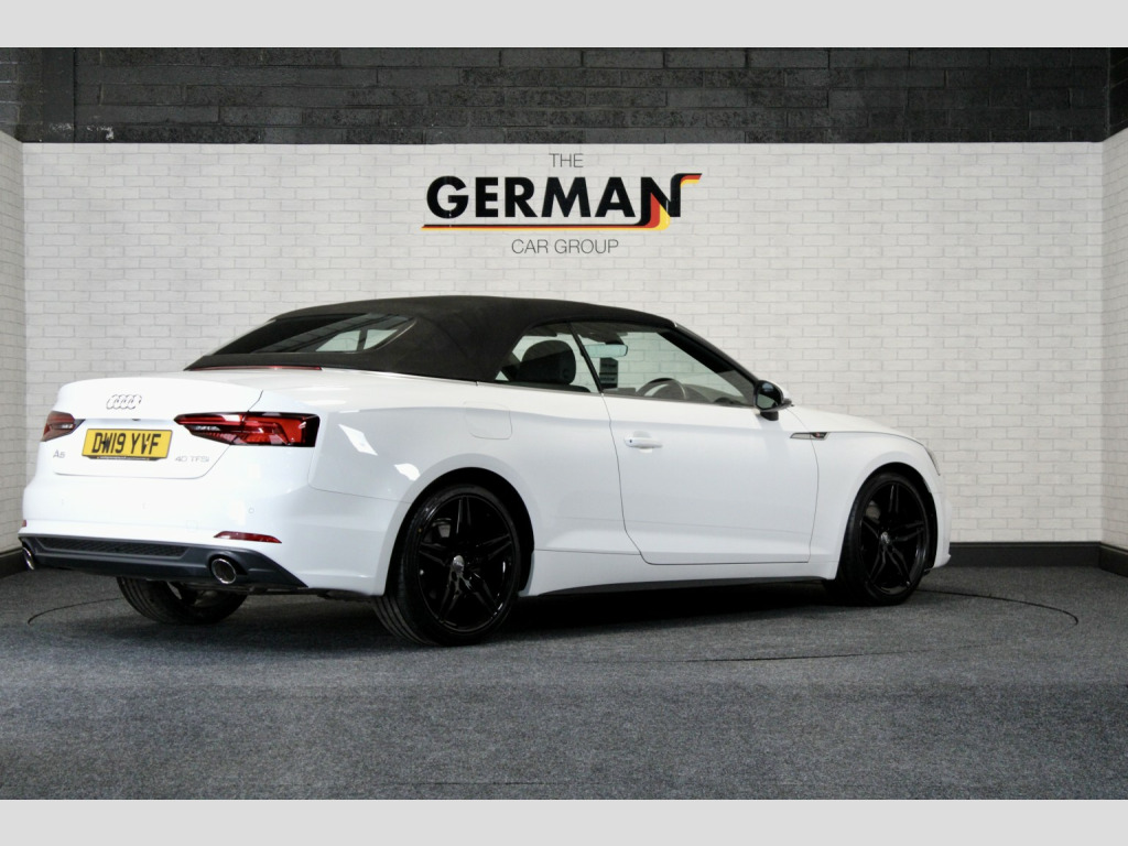 -???? 2025 WINNER OF MOTOR TRADER OF THE YEAR AWARD FOR BERKSHIRE, -???? SHORTLISTED FOR THE 2023 UK INDEPENDENT DEALER OF THE YEAR AWARDS FOR PREMIUM CARS, -???? SHORTLISTED FOR FASTEST GROWING DEALERSHIP AT THIS YEARS MOTORTRADER INDEPENDENT DEALER AWARDS, -???? WINNER OF NEWCOMER DEALERSHIP OF THE YEAR AT THE 2020 MOTORTRADER INDEPENDENT DEALER AWARDS, -???? AWARD WINNING SALES TEAM WITH THE FUTURE STAR AWARD 2020 FROM USED CAR MAGAZINE, -???? NOMINATED FOR INDEPENDENT DEALERSHIP OF THE YEAR 2021 BY MOTORTRADER INDEPENDENT AWARDS, -???? WINNER OF THE EXTRA MILE AWARD 2021 FROM MOTONOVO VEHICLE FINANCE FOR CUSTOMER CARE, -???? SHORTLISTED FOR USED CAR MAGAZINES SPECIALIST USED CAR DEALERSHIP OF THE YEAR 2020, -???? HIGHLY RECOMMENDED BY AUTOTRADER, , - BUY ONLINE, - VISIT OUR SHOWROOM, - NATIONWIDE DELIVERY AVAILABLE, - NATIONWIDE WARRANTY INCLUDED, - MULTI-AWARD WINNING COMPANY AND STAFF, - BESPOKE VIDEO PRESENTATION UPON REQUEST, - FINANCE FROM 8.9 % APR - EASY APPLICATION - INSTANT DECISION, , Key Features;, , **Heated Black Half Leather/Alcantara Sport Seats with Grey Stitch & Embossed S-Line Logo**Electric Lumbar Support**Front & Rear Parking Sensors with Parking Aid Plus**19inch 5-Arm Double Spoke Alloys in Gloss Black with Matching Tyres**Electric Folding/Heated/Auto Dimming Door Mirrors**Audi Drive Select**Leather Wrapped 3-Spoke Multi-Function Steering Wheel**Cruise Control**High Gloss Styling Package**Keyless Start**Sports Suspension**LED Headlights with Dynamic Rear Indicators**Audi Sound System**Audi Connect Navigation & Infotainment with Apple Car Play**S-Line Sports Package**Interior Ambient Lighting Pack**Duel Zone Climate Control**Partial Digital Dash**2 Keys**, , Description;, , Presented in Ibis White with contrasting Black Half Leather/Alcantara Sport Seats with Grey Stitch & 19inch 5-Arm Double Spoke Alloys in Gloss Black. This is a 2 owner from new car boasting a very good service history with 4 oil changes, 3 of which are by Audi Main Dealer & in addition will be prepared for sale with a fresh oil change including gearbox service and has a valid MOT until the end of October 2026. Being the more powerful 40 TFSI model it produces over 180bhp and makes for a superb drive, especially paired with its 7 speed S-Tronic gearbox with paddle shift controls. The fully electric hood simply folds down at the touch of a button and remains its sleek looks with the roof both up and down. With features like Apple Car Play, Heated Seats, Parking Aid Plus, Cruise Control, LED Headlights, Audi Drive Select and Electric Folding Door Mirrors there is plenty to keep both driver and passenger content on any journey. A great looking A5 S-Line Convertible with low ownership, great history and healthy spec!, , About Us;, , The German Car Group is an Independent Specialist in the preparation and sale of Prestige German Vehicles. Having previously had a number of dealerships across the South of England we now operate from our flagship showroom based in the heart of Berkshire, just outside of Ascot and Windsor in the village of Warfield. , With a small team we are able to maintain the highest of standards throughout our business which is something we absolutely pride ourselves on. We are committed to providing an exceptional service from your very first enquiry to the comprehensive aftercare you receive once you drive away. , Each vehicle is meticulously prepared on site, whether this is in the Servicing, MOT or Detailing you can trust The German Car Group to deliver the highest standards of care and attention to detail every time. , Verified by hundreds of 5 star reviews every step of the journey is designed with your satisfaction in mind, ensuring an experience that is truly second to none.