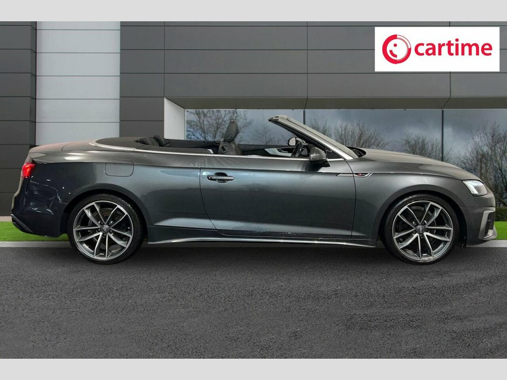 This 2020 Audi A5 Cabriolet TFSI S line boasts exceptionally low mileage for its year, having covered just 29367 miles. This Euro 6 compliant model features a 2.0 litre petrol engine and comes with an MOT valid until October 2026, offering peace of mind. The S line trim enhances its appeal, and you'll appreciate the convenience of the Light and Rain Sensor which automatically activates the headlights, alongside the Deluxe 3-Zone Electronic Climate Control for personalised comfort. Parking is made simpler with the Parking System Plus, offering front and rear sensors for assistance. Further enhancing your driving experience, the Audi A5 Cabriolet is equipped with the Audi Smartphone Interface, seamlessly integrating your Android Auto or Apple CarPlay. The striking Audi Matrix LED Headlights, paired with LED rear lights and dynamic indicators, provide excellent visibility and a distinctive look. This model also offers a surprisingly large boot space, making it practical for everyday use and weekend getaways alike. These carefully selected features demonstrate a superior level of specification compared to other vehicles in its class. 19in Alloy Wheels - 8.5J 5-Spoke-Cavo De, 4-Way Electric Lumbar Support, 6-Airbag System, 8 Passive Loudspeakers, Anti Theft Locking Wheel Bolts, Anti-Theft Alarm, Audi Connect Infotainment Services (36 M, Audi Connect Safety and Service, Audi Drive Select, Audi Matrix LED Headlights with LED Rear, Audi Phone Box with Wireless Charging, Audi Smartphone Interface, Audi Virtual Cockpit, Auto-Dimming Rear-View Mirror, Automatic Start-Stop with Coasting Funct, Cloth Headlining in Black, Contrast Stitching on Seats - Steering W, Cruise Control System with Speed Limiter, DAB Digital Radio Reception, Daytona Grey, Deluxe 3-Zone Electronic Climate Control, Door Handles - Body Coloured, Electric Boot