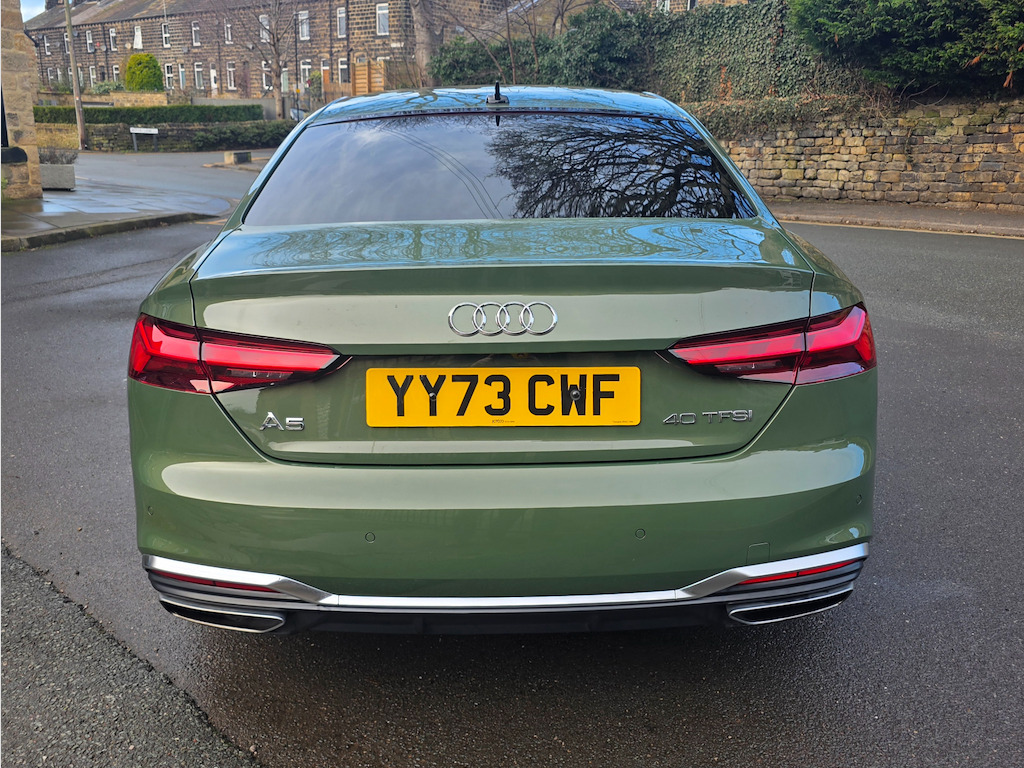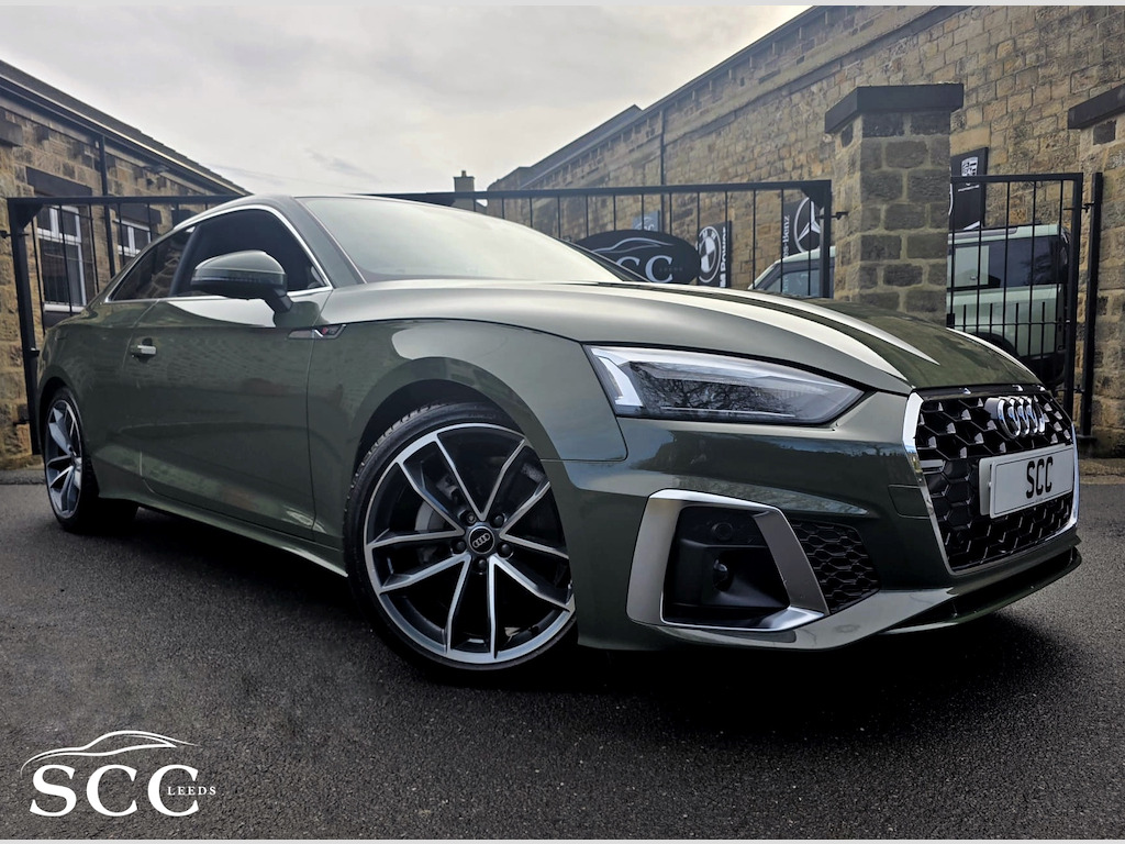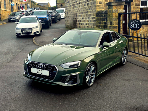 Audi A5 S Line Coupe in District Green. 2 Owners / Full Audi History - Serviced by Harrogate Audi twice - lastly on the 07/05/2025 @ 14573. MOT due 29.11.2026. Turn heads with this stunning Audi A5 Coupe in District Green. Its 19-inch Alloy Wheels give it a sporty edge over the standard A5's like the Sport models or SE base cars. Interior, Comfort & Driving Experience:- Step inside to Microfibre Dinamica Sports Seats with the S embossed logo in black, featuring heated seats for ultimate comfort. Enjoy dual-zone climate control and Audi Drive Select, allowing you to tailor the car’s driving dynamics to your style. The 3-Spoke Leather Multi-Function Sport Steering Wheel keeps you fully in control, while voice control makes operating systems effortless. Technology, Audio & Connectivity This car is packed with premium infotainment and connectivity features such as:- MMI Navigation Plus with MMI Touch Audi Connect Infotainment Services (36-month subscription from new) Audi Connect Safety & Service Audi Smartphone Interface Apple CarPlay & Android Auto Bluetooth Interface 8 Passive Loudspeakers DAB Digital Radio Reception Two Additional USB Ports for Rear Passengers Driver Assistance & Safety Drive with confidence thanks to Audi’s advanced driver assistance features: Attention & Drowsiness Assist Lane Departure Warning Camera-Based Traffic Sign Recognition Cruise Control System with Speed Limiter Parking System Plus (Front & Rear Sensors) Rear-View Camera 6-Airbag Safety System Provenance & Care:- 2 Previous Owners Full Audi Service History — meticulously maintained by Audi Don’t miss this exceptional Audi. Contact us today to book a test drive or call 01943 884551 to speak with a member of our team. 19in Alloy Wheels - 8.5J 5-Spoke-Cavo Design - Contrasting Grey - Partly Polished,3-Spoke Leather High Multi-function Sport Steering Wheel with Grips in Perforated Leather with Paddles and S Badging,4-Way Electric Lumbar Support,6-Airbag System,8 Passive Loudspeakers,ABS - Anti-Lock Braking System,Anti Theft Locking Wheel Bolts,Anti-Theft Alarm,Attention and Drowsiness Assist,Audi Connect Infotainment Services (36 Month Subscription From New),Audi Connect Safety and Service,Audi Drive Select,Audi Smartphone Interface,Audi Virtual Cockpit,Auto-Dimming Rear-View Mirror,Automatic Start-Stop with Coasting Functionality and Efficiency Programme,Bluetooth Interface,Body Coloured Side Sill Trims,Camera Based Traffic Sign Recognition,Cloth Headlining in Black,Contrast Stitching on Seats - Steering Wheel and Gear Lever Gaiter,Cruise Control System with Speed Limiter,DAB Digital Radio Reception,Deluxe 3-Zone Electronic Climate Control,Door Handles - Body Coloured,Door Mirrors - Electrically Adjustable - Heated and Folding - Automatically Dimming,ESC - Electronic Stabilisation Control inc ABS - ASR and EDL,Electric Boot Lid Release,Electric Windows - Front,Electromechanical Power Steering,Email - Calendar and Text Messages can be Displayed on your Vehicles MMI,First Aid Kit and Warning Triangle,Front Centre Armrest,Front Spoiler Lip in Body Colour,Gear Lever Knob in Black Perforated Leather,Heated Front Seats,Hill Hold Assist,ISOFIX Child Seat Mounting and Top Tether,Illuminated Door Sill Trims with S Logo,Inlays - Matt Brushed Aluminium,Keyless Go,LED Headlights and Rear Lights with LED Daytime-Running Lights,LED Interior Light Package,Lane Departure Warning,Light and Rain Sensor,MMI Navigation Plus with MMI Touch,Manual Seat Adjustment,Multi Collision Brake Assist,Parking System Plus - Front and Rear Sensors,Pedals and Footrest - Stainless Steel,Pop-Up Bonnet for Pedestrian Protection,Pre-Sense City,Privacy Glass,Radiator Grille with Honeycomb Structure in Grained Matt Black,Rear-View Camera,S Line Badges on Front Wings,S Line Front and Rear Bumpers and Side Skirt,S Line Rear Diffuser in Matt Anthracite Black with Trim Strip in Matt Aluminium Silver,Seat Belt Monitoring,Side Air Inlets in Grained Matt Black with Inlay in Matt Aluminium Silver,Split-Folding 2-Seater Rear Seat Bench in 3 Parts - 40-20-40 with Rear Centre Armrest,Sport Suspension,Tailpipe Trims in Matt Aluminium Silver,Tool Kit,Two Additional USB Ports for Rear Passengers in the Rear Centre Console,Tyre Repair Kit,Voice Control,Windscreen with Acoustic Glazing,District Green,Microfibre Dinamica - Sports Seats with S Embossed Logo - Black