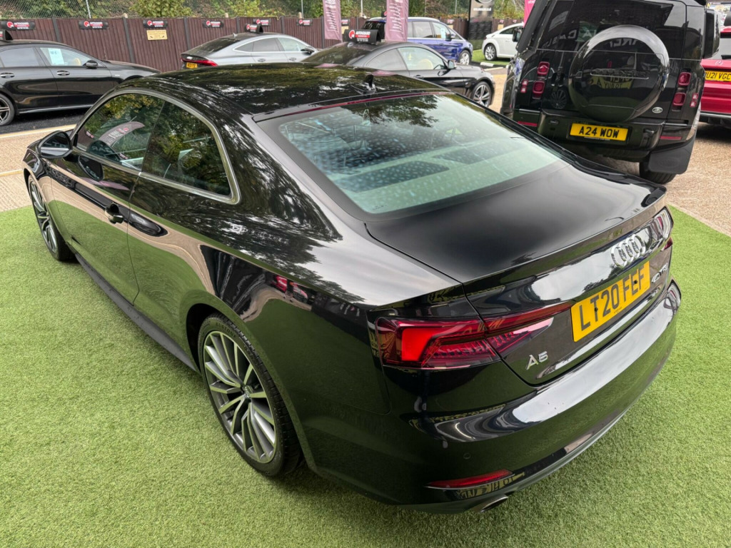 6 months or 12 months warranty available on this car. Finance available subject to status. Front & Rear Parking SensorsSat NavApple CarPlayCruise Control & Speed LimiterBluetooth & AudioDrive SelectFlappy PaddlesAudi ConnectHeated Front SeatsDigital 3 Zone Climate Controlled Air ConSide SkirtsAuto HoldStop StartDigital SpeedoTwin ExhaustAndroid AutoKeyless StartHeated & Power Folding Electric MirrorsTraction ControlDAB/FM19'' Grey Machined Face AlloysCup HoldersMetallic PaintworkImmobiliserAlarmIsofixTwin Air BagsPASAero WipersRemote Central LockingRear HeadrestsElectric Front WindowsFront & Rear Centre ArmrestChain No Cambelt16VUsb x 2Aux InLeather/Alcantara - ''S'' Embossed Seats Boasting exceptionally low mileage for its 2020 registration, this Audi A5 TFSI S line presents a superb ownership proposition with its MOT valid until August 2026 and a clear vehicle history check. This stylish A5, featuring the sought after S line trim, is powered by an efficient 2.0 litre petrol engine and meets Euro 6 emissions standards. Inside, you'll find the convenience of the Audi Smartphone Interface, seamlessly integrating Android Auto and Apple CarPlay, while the Audi Phone Box offers effortless wireless charging for your compatible device.Experience enhanced visibility and safety with the striking Matrix LED headlights and dynamic front and rear indicators, complemented by a rear view camera and Parking System Plus with front and rear sensors for effortless manoeuvring. This A5 also offers a generous boot space, perfect for all your needs. With an impressive fuel economy of 40 mpg and low CO2 emissions, this vehicle demonstrates superior efficiency compared to many others in its class, making it a smart and economical choice for your next car.. Front & Rear Parking Sensors, Sat Nav, Apple CarPlay, Cruise Control & Speed Limiter, Bluetooth & Audio, Drive Select, Flappy Paddles, Audi Connect, Heated Front Seats, Digital 3 Zone Climate Controlled Air Con, Side Skirts, Auto Hold, Stop Start, Digital Speedo, Twin Exhaust, Android Auto, Keyless Start, Heated & Power Folding Electric Mirrors, Traction Control, DAB/FM, 19'' Grey Machined Face Alloys, Cup Holders, Metallic Paintwork, Immobiliser, Alarm, Isofix, Twin Air Bags, PAS, Aero Wipers, Remote Central Locking, Rear Headrests, Electric Front Windows, Front & Rear Centre Armrest, Chain No Cambelt, 16V, Usb x 2, Aux In, Leather/Alcantara - ''S'' Embossed Seats, 19in Alloy Wheels - 8.5J - Multispoke Design - Contrasting Grey - Partly Polished, Leather-Alcantara - Sport Seats with S Embossed Logo - Black with Rock Grey Stitching. Full service history