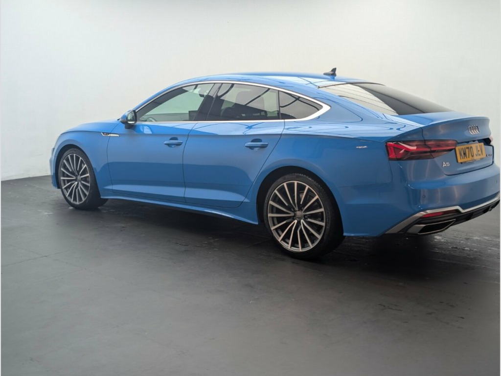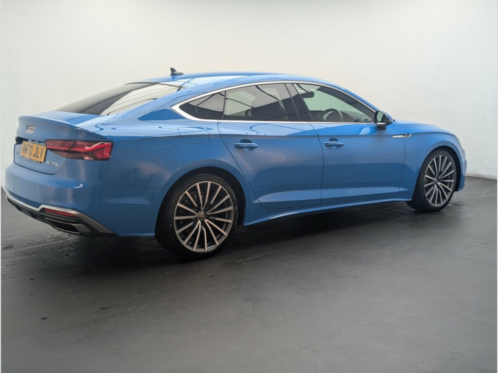 Immaculate Audi A5 in Blue - Heated Seats - USB Connection - DAB Radio - Sat Nav - Privacy Glass - Air Conditioning - Digital Display - Alloy Wheels 3 Services, last serviced at 41784 Sleek and sporty, this **Audi A5 2.0 TFSI 40 S line Sportback** delivers 204PS with smooth S Tronic automatic transmission. Euro 6 compliant, it combines elegant design, advanced tech, and dynamic performance—perfect for those seeking luxury and excitement in a stylish 5-door package. 19in Alloy Wheels - 8.5J 5-Spoke-Cavo De, 4-Way Electric Lumbar Support, 6-Airbag System, 8 Passive Loudspeakers, Anti Theft Locking Wheel Bolts, Anti-Theft Alarm, Audi Connect Infotainment Services (36 M, Audi Connect Safety and Service, Audi Drive Select, Audi Matrix LED Headlights with LED Rear, Audi Phone Box with Wireless Charging, Audi Smartphone Interface, Audi Virtual Cockpit, Auto-Dimming Rear-View Mirror, Automatic Start-Stop with Coasting Funct, Cloth Headlining in Black, Contrast Stitching on Seats - Steering W, Cruise Control System with Speed Limiter, DAB Digital Radio Reception, Deluxe 3-Zone Electronic Climate Control, Door Handles - Body Coloured, Electric Windows - Front, E