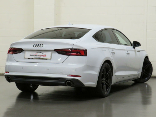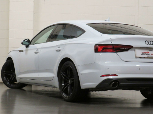 Arrow Motor Company are pleased to present this fantastic Audi A5 S-line Sportback S Tronic, finished in the stunning Gloss Ibis White Paintwork with a Full Black Leather and Alcantara Interior. Equipped with Audis 2.0 Litre Petrol Engine capable of producing 188bhp whilst providing the most economical of drivers with an incredible 39.8mpg, with potential to rise to 55.4mpg in Extra-Urban environments. This Particular Example is Complimented by Full Service History (FSH). This vehicle also benefits from the following impressive list of features…, , …↓ ↓ ↓ ↓ ↓ ↓ ↓ ↓ ↓ ↓ ↓ ↓ ↓ ↓ ↓ ↓ ↓ ↓ ↓ ↓ ↓…, , …Interior Features…, , Audi MMI Satellite Navigation System | 8-Inch Digital Multi Media Display | 11-Inch Full Virtual Cockpit Display | Black Alcantara and Leather Fully Electrically Adjustable Heated S Branded Front Seats | Apple Carplay | Tri-Zone Automatic Climate Control | Front and Rear Ultrasonic Park Pilot Display | DAB Rario | Bluetooth Connectivity | Wireless Phone Docking Charger | Eco Stop/Start System | Electrically Operated Boot Release | Ambient LED Lighting | Frameless Rear View Mirror | Electric Parking Brake | Cruise Control | Push Button Start | Front and Rear Electric Window Controls | Electrically Adjustable Heated Folding Wing Mirror Controls | Wheel Mounted Paddle Shifters | Black Leather Stippled S Line Branded Multifunctional Steering Wheel | Multifunctional Trip Computer | CD Player | 2x SD Ports | Global Window Key Command | Efficiency Mode | Comfort Mode | Dynamic Driving Mode | 12v Port | 2x Cup Holders | Front and Rear Interior Illumination | Back Seat Deployable Leather Arm Rest | Folding Rear Seats | Chrome Plated Peddles | LED Chrome S-Line Door Sills | , , …Exterior Features…, , 19-Inch Black 10-Spoke Alloy Wheels | Front and Rear Ultrasonic Parking Sensors | Electric Boot | Dual Chrome Exhaust | Rear Privacy Glass | Automatic LED Headlights | LED Day Time Running Lights | Rear LED Indicators | Wing Mirror Mounted Indicators | Electrically Adjustable Heated Wing Mirrors | Front and Rear Electric Windows | Shark Fin Arial | Body Coloured Roof | Body Coloured Door Handles | Body Coloured Wing Mirrors |