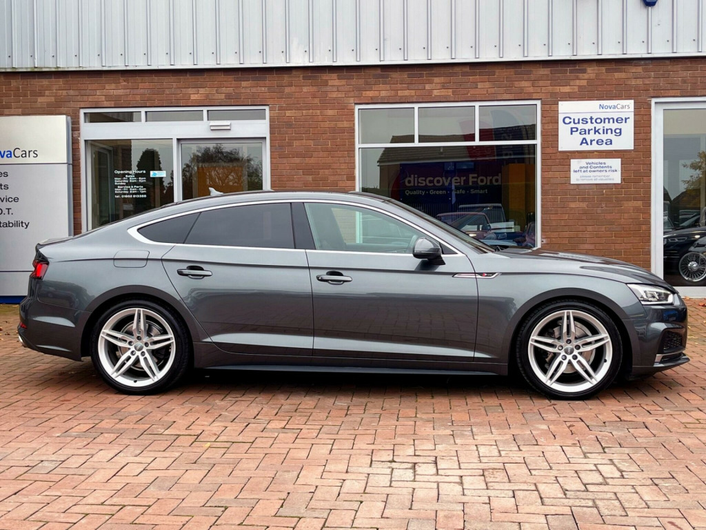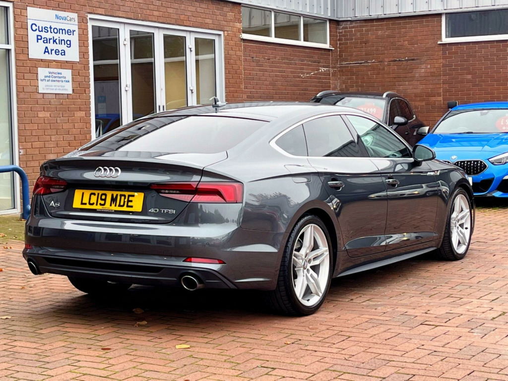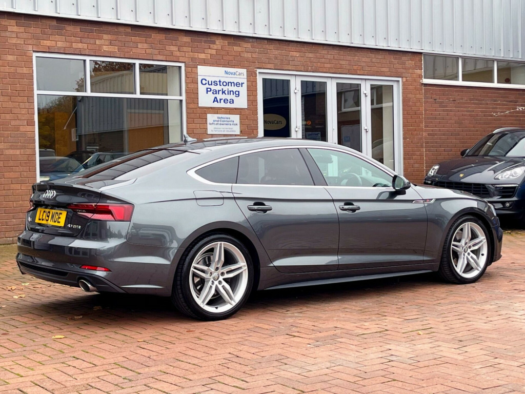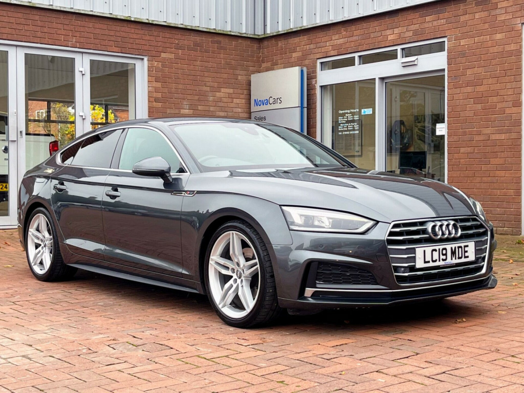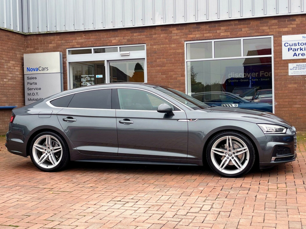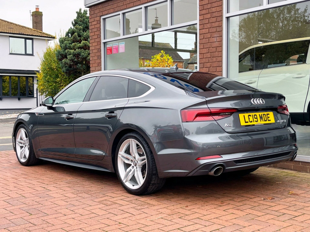 This 2019 Audi A5 2.0 TFSI 40 S line Sportback S Tronic Euro 6 (s/s) 5dr Hatchback is currently available for £18,999 in Newport Shropshire with Petrol engine and Automatic gearbox. For more information or to arrange a viewing, click here to send us an email using form below.