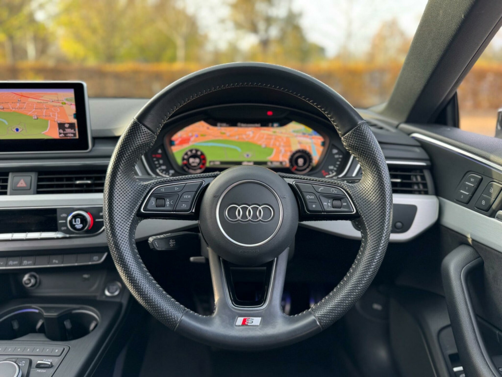 2019 Audi A5 Sportback S Line - 55,000 miles - £16,789Combining coupe elegance with everyday practicality, this 2019 Audi A5 Sportback S Line offers a premium driving experience underpinned by Audi's signature design, engineering, and technology. Finished in Black, this stylish example benefits from a well-maintained history, refined performance, and a host of desirable features.With just 55,000 miles from new, this A5 is ULEZ compliant and comes equipped with high-spec factory options including electric seats, wireless charging, and Audi's acclaimed Virtual Cockpit.Offered with a fresh MOT, comprehensive warranty, and available for nationwide delivery.Spec highlights include:•Audi Virtual Cockpit (Fully Digital Instrument Cluster)•Heated Front Sport Seats • Extended LED Pack (Multi-Colour Ambient Lighting) • Electrically folding mirrors with memory function • Rear view Camera•Electrically Adjustable Front Seats with Lumbar Support with Memory function •Audi Smartphone Interface - Apple CarPlay & Android Auto•Wireless Charging Pad (Audi Phone Box)•Advanced Key - Keyless Entry & Start•Hill-Hold Assist•MMI Infotainment System with Navigation•3-Zone Climate Control•S Line Body Styling & Interior Package•ISOFIX Rear Seats•Cruise Control with Speed Limiter•18'' Audi Alloy Wheels•Drive Select with Comfort, Efficiency, and Dynamic•Split-Folding Rear Seats (40:20:40) • Privacy GlassThis A5 Sportback delivers a sleek, comfortable, and connected driving experience, ideal for both professional and family life.Dealer benefits included:•ULEZ Compliant•Service History•12 Months MOT•6-Month Warranty Included (extendable up to 3 years)•HPI Clear (certificate available)•Finance Options Available•Part Exchange Welcome•AA Approved Dealer - 6 Months Roadside Cover Included•Nationwide Delivery Available•Vehicle Sourcing Available in alloy wheels - 5-parallel spoke design, 2 x sdxc card readers, 2 x usb charging ports and 1 x aux-in, 4-way electric lumbar support, 6-airbag system, air inlets - horizontal inlay in matt aluminium, anti theft locking wheel bolts, anti-theft alarm, audi connect infotainment services - 3 month trial, audi connect safety and service, audi drive select, audi smartphone interface, audi sound system, auto-dimming rear-view mirror, bluetooth interface, body coloured door mirrors, cd drive, chrome-plated exhaust trim, cloth headlining in black, colour drivers information system with 7in high-resolution tft screen, contrast stitching on seats - steering wheel and gear lever gaiter, cruise control with speed limiter, dab digital radio reception, deluxe 3-zone electronic climate control, door mirrors - folding, esc - electronic stabilisation control inc abs - asr and edl, electric windows - front, electromechanical parking brake, electromechanical power steering, first aid kit and warning triangle, front centre armrest, front and rear floor mats, gear lever knob in black perforated leather, heated front seats, high gloss package, high multi-function 3-spoke leather steering wheel with grips in perforated leather and s badging, high-beam assist, hill hold assist, honeycomb side air inlet grille in titan black, isofix child seat mounting and top tether, illuminated door sill trims with s logo, inlays - matt brushed aluminium, interior lighting, keyless go, led headlights with led rear lights and dynamic rear indicators, led interior light package, light and rain sensor, luggage compartment mat, mmi navigation, manual seat adjustment, multi collision brake assist, navigation preparation - ready 4 nav, non-smoking package, parking system plus, pedals and footrest - stainless steel, pop-up bonnet for pedestrian protection, power operated tailgate, pre-sense city, radiator grille in twilight grey with matt aluminium inlays, rear diffuser strip in chrome, rear diffuser in twilight grey matt with honeycomb grille, rear grille - black grained, s line badges on front wings, s line front and rear bumpers, s line side skirts in black, seat belt monitoring, space saver spare wheel, split-folding 3-seater rear seat bench in 3 parts - 40-20-40, sport suspension, tool kit and car jack, tyre pressure warning light, variable restraint system, voice control system, windscreen with acoustic glazing, rear-view camera, technology package, door mirrors - folding with auto-dimming and memory function, privacy glass - side and rear windows, electrically adjustable front seats with memory function for drivers side, extended led interior lighting package - multi-coloured, leather-alcantara - sport seats with s embossed logo - black with rock grey stitching