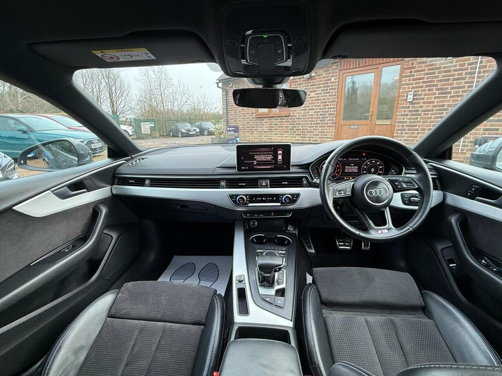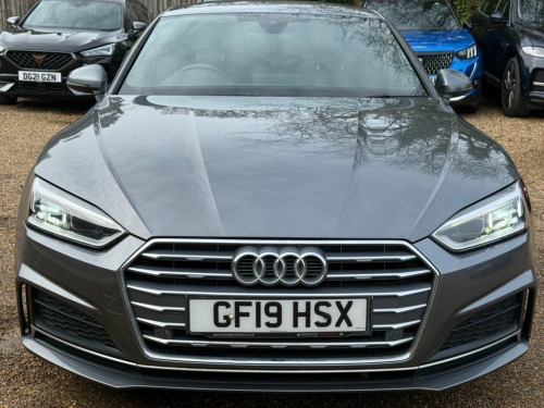 This 2019 Audi A5 TFSI S line boasts a clear vehicle history, offering you peace of mind. This stylish coupe is equipped with a 2.0 litre petrol engine and meets Euro 6 emission standards. Inside, you'll find a host of premium features designed for comfort and convenience, including deluxe 3 zone electronic climate control, heated front seats, and a Bluetooth interface for seamless connectivity. The S line trim further enhances the sophisticated appeal of this Audi. Experience dynamic performance with the Audi A5 TFSI S line, capable of accelerating from 0 to 62 miles per hour in just 7.5 seconds. This impressive acceleration highlights its superior performance compared to other vehicles in its class. The car also features advanced lighting technology with LED headlights and rear lights, complete with dynamic rear indicators, ensuring excellent visibility. Additionally, the automatic on function for headlights, along with the light and rain sensor, adds to the effortless driving experience. 19in Alloy Wheels - 5-Parallel Spoke Des, 2 x SDXC Card Readers, 2 x USB Charging Ports and 1 x AUX-IN, 4-Way Electric Lumbar Support, 6-Airbag System, Air Inlets - Horizontal Inlay in Matt Al, Anti Theft Locking Wheel Bolts, Anti-Theft Alarm, Audi Connect Infotainment Services - 3 M, Audi Connect Safety and Service, Audi Drive Select, Audi Smartphone Interface, Audi Sound System, Auto-Dimming Rear-View Mirror, Bluetooth Interface, Body Coloured Door Mirrors, CD Drive, Chrome-Plated Exhaust Trim, Cloth Headlining in Black, Colour Drivers Information System with 7, Contrast Stitching on Seats - Steering W, Cruise Control with Speed Limiter, DAB Digital Radio Reception, Deluxe 3-Zone Electroni