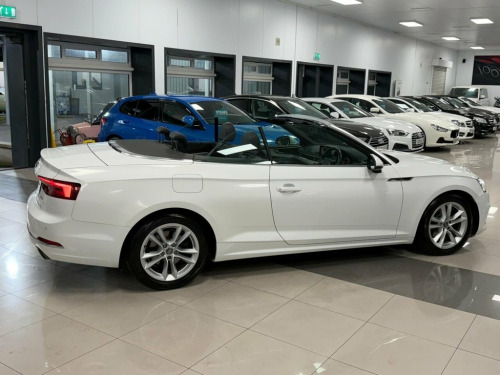 The Audi A5 Cabriolet 2.0 TFSI 40 Sport offers a stylish and engaging open-top driving experience, powered by a smooth and efficient 190 ps petrol engine paired with a manual gearbox for those who enjoy a more hands-on drive. Its Sport trim adds refined detailing, a sleek exterior design, and a comfortable, well-appointed interior. With Euro 6 efficiency and Audi's signature build quality, this convertible blends performance, sophistication, and everyday usability, making it an appealing choice for both spirited drives and relaxed cruising. 18in Alloy Wheels - 5-Arm Star Design, 2 x SDXC Card Readers, 2 x USB Charging Ports and 1 x AUX-IN, 4-Way Electric Lumbar Support, 6-Airbag System, Acoustic Hood - Fully Automatic, Acoustic Soft Top - Black, Air Inlets in Titanium Black with Matt A, Anti Theft Locking Wheel Bolts, Anti-Theft Alarm, Audi Connect Infotainment Services - 3 M, Audi Connect Safety and Service, Audi Drive Select, Audi Smartphone Interface, Audi Sound System, Auto-Dimming Rear-View Mirror, Black Hood, Bluetooth Interface, Body Coloured Door Mirrors, CD Drive, Chrome-Plated Exhaust Trim, Cloth Headlining, Colour Drivers Information System with 7, Comfort Dynamic Suspension, Cruise Control with Speed Limiter, DAB Di