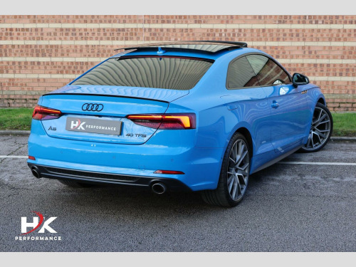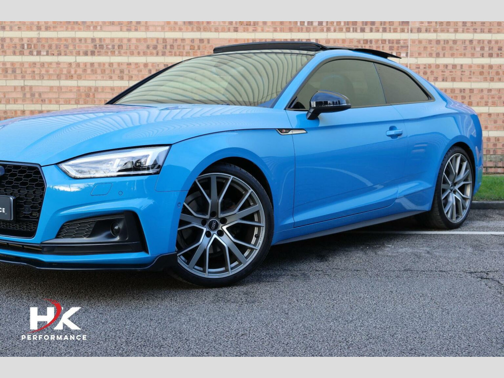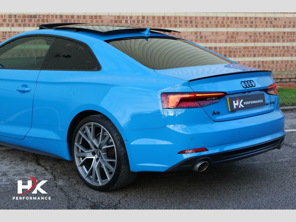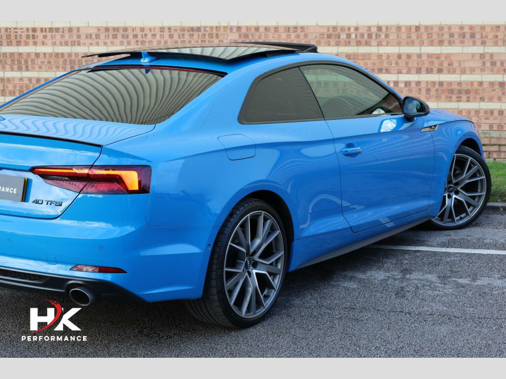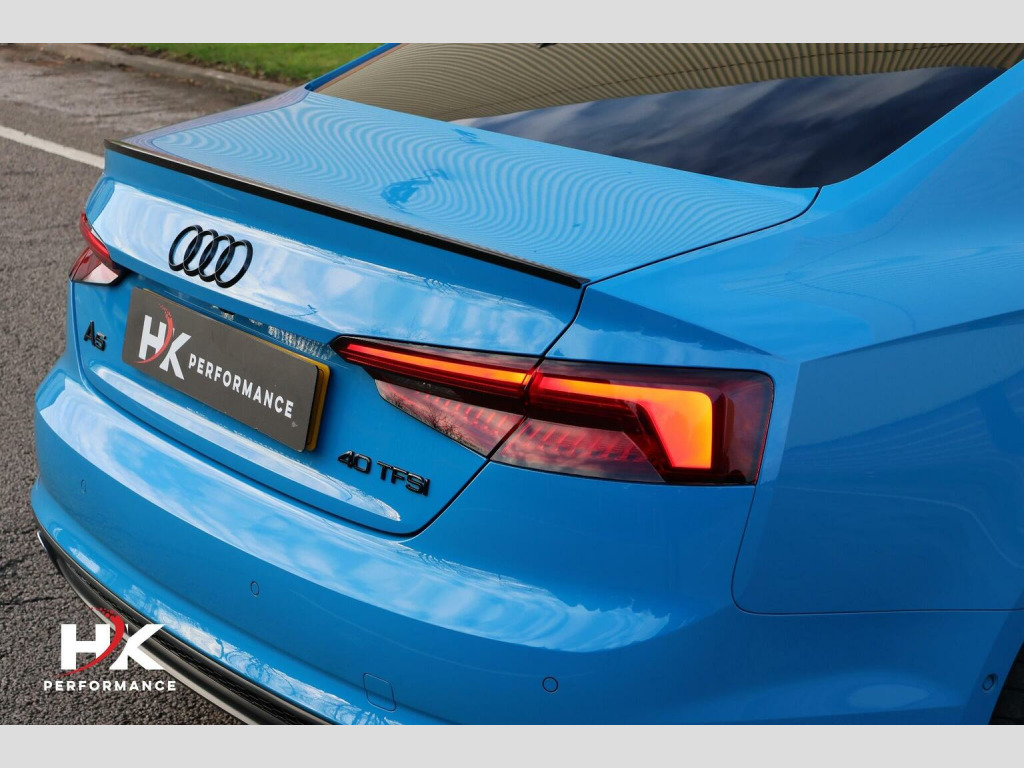 2020 (70) FACELIFT AUDI A5 40 TFSI VORSPRUNG EDITION FINISHED OFF IN TURBO BLUE, FULL AUDI SERVICE HISTORY, OPTIONAL EXTRAS INCLUDE; ELECTRIC SLIDING PANORAMIC SUNROOF, COMFORT & SOUND PACKAGE, BANG & OLUFSEN SOUND SYSTEM, KEYLESS ENTRY, HOLD ASSIST, TOUR ASSISTANCE PACKAGE CONSISTING OF ADAPTIVE CRUISE CONTROL, ASSISTED STEERING, ACTIVE LANE ASSIST, BLIND SPOT MONITOR, PARKING SYSTEM PLUS WITH 360 SURROUND VIEW CAMERA, FULL NAPA LEATHER, MASSAGE SEATS, ELECTRIC SEATS WITH MEMORY FUNCTION, HEATED FRONT SEATS, HEATED REAR SEATS, VIRTUAL COCKPIT, REVERSE CAMERA, PRIVACY GLASS, MATRIX LED HEADLIGHTS WITH HIGH BEAM ASSIST AND DYNAMIC INDICATORS FRONT / REAR, ELECTRIC FOLDING WING MIRRORS, FACTORY BLACK STYLING PACK, APPLE CAR PLAY, 20in Alloy Wheels, Adaptive Comfort Suspension with Damping Control, Adaptive Cruise Control with Stop&Go and Traffic-Jam Assist, Anti-Theft Alarm, Active Lane Assist, Drive Select, Matrix LED Headlights with LED Rear Lights and Dynamic Front and Rear Indicators, Parking System Plus, Phone Box with Wireless Charging, Pre-Sense City, Side Assist including Pre-Sense Rear, Smartphone Interface, Audi Virtual Cockpit, Auto-Dimming Rear-View Mirror, Automatic Headlight Adjustment, Camera-Based Traffic Sign Recognition, Collision Avoidance Assistant, Comfort and Sound Package, Contrast Stitching on Seats - Steering Wheel and Gear Lever Gaiter, DAB Digital Radio, Deluxe 3-Zone Climate Control, Door Mirrors - Folding with Auto-Dimming and Memory Function, Extended LED Interior Lighting Package - Multi-Coloured, Extended Leather Package, Head-Up Display, Headlights - High-Beam Assist, Heated Front and Outer Rear Seats, High-Gloss Package, Hill Hold Assist, Keyless Go, LED Interior Lighting Pack, Massage Function For Front Seats, £199 ADMIN FEE APPLIES.