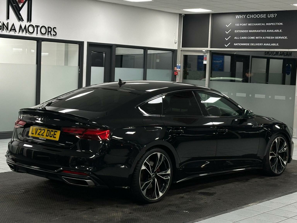 This 2022 Audi A5 2.0 TFSI 45 Black Edition Sportback S Tronic quattro Euro 6 (s/s) 5dr Hatchback is currently available for £26,250 in Manchester Lancashire with Petrol engine and Auto Clutch Manual gearbox. For more information or to arrange a viewing, click here to send us an email using form below.