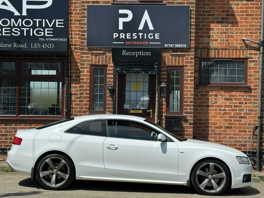 PRESTIGE AUTOBAHN ARE PROUD TO PRESENT A 2011 Audi A5 2.0 TFSI Black Edition S Tronic quattro Euro 5 2dr, A WELL-CARED FOR AND MAINTAINED VEHICLE COVERING JUST OVER 108,000 RELIABLE MILES BACKED BY FULL SERVICE HISTORY FOR YOUR PEACE OF MIND. FACTORY FITTED EXTRAS INCLUDE, B&O SOUND SYSTEM, CRUISE CONTROL, MULTI FUNCTION STEERING WHEEL, HEATED SEATS , AUX PORT. THE CAR DRIVES ABSOLUTELY SUPERB. ANY INSPECTIONS & TEST DRIVES ARE MOST WELCOME. ALL DEALER FACILITIES ARE AVAILABLE. WE CAN ARRANGE FINANCE, LOW COST DELIVERY, EXTENDED WARRANTIES AND ACCEPT ANY CAR AS PART EXCHANGE FOR A HASSLE FREE PURCHASE. AT PRESTIGE AUTOBAHN WE ARE CONFIDENT IN PROVIDING FIRST CLASS CUSTOMER SERVICE. WE PROVIDE YOU WITH AS MUCH INFORMATION ABOUT OUR VEHICLES AS POSSIBLE. PAYMENTS CAN BE MADE VIA CASH, BANK TRANSFER OR DEBIT CARD. PLEASE CALL US ON 07707 950218 OR EMAIL US AT PRESTIGEAUTOBAHNGMAIL.COM FOR ANY QUESTIONS OR ENQUIRIES. THANK YOU. in 5 segment spoke design alloy wheels, 19in 5arm rotor alloy wheels with titanium look finish, 19in alloy wheels - 5-arm rotor design titanium look, 3spoke s line leather steering wheel, 4spoke leather steering wheel, abs - anti-lock braking system, ami - audi music interface, aux-in socket, acoustic parking system - rear, airbags - driver, airbags - front passenger, airbags - front side system, alarm - thatcham category 1, audi music interface, automatic wipers with rain sensor, bang and olufsen sound system, bi-xenon headlights, black styling package, climate control - electronic 3-zone, cloth headlining in black, concert radio & single cd player with mp3 facility, concert radio - mp3-cd player, dab digital radio, delete engine designation at rear, deletion of model & engine designation at rear, door mirrors - electrically adjustable and heated, drivers information system - dis, esp - electronic stability programme, electric windows - front, electrically adjustable 4-way lumbar support, electromechanical power steering, front fog lights, front&rear floor mats, headlights - automatic adjustment, headlights washers, isofix child seat preparation front and rear with passenger airbag deactivation switch, inlays - piano finish - black, intelligent key, mobile telephone preparation - bluetooth interface, mobile telephone preparation- bluetooth interface, piano black finish inlay, power steering - servotronic, privacy glass, seats - drivers manual height adjustment, sound package, space saver spare wheel, split-folding rear seats, sport suspension, sports suspension, steering column - rake and reach adjustment, steering wheel - 3-spoke leather - multi-function - sports - shift paddles, cruise control, heated front seats