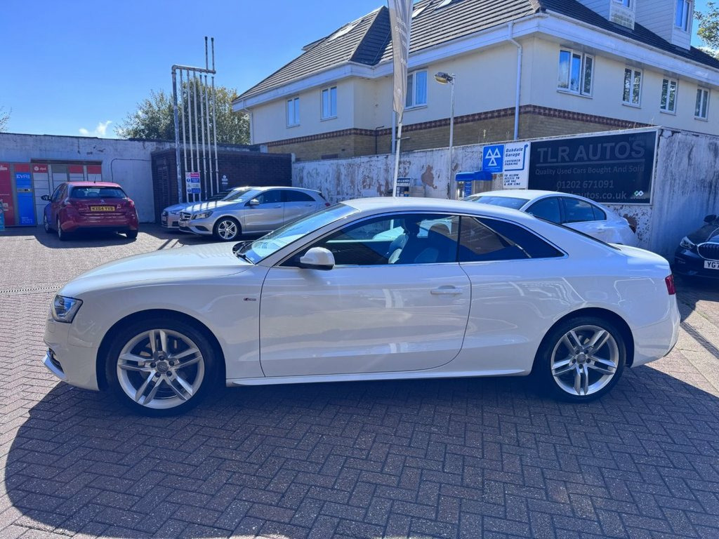 64 Audi A5 2.0 TFSi S Line Quattro, 64,000mls, Next MOT due 13/09/2026, Full service history, 4 seats, White, 3 owners, Leather-Alcantara - S Line Sports Seats - Black with Grey Stitching, Seats - Front Electric Adjustment, Steering Wheel - 3-Spoke Multifunction Flat Bottomed, Privacy Glass, Bang and Olufsen Sound System, Audi Parking System Plus - Rear, 18in Alloy Wheels - 5-Double-Spoke Design, Auto Opening Boot Lid, Cruise Control, DAB Digital Radio, LED Daytime Running Lights. This vehicle comes with a comprehensive multipoint check, Free MOT for Life with us. HPI and VMC check, Service if due, Part Exchange Welcome. All major debit and credit cards accepted, TLR Autos 01202 671091 12V Power Socket - Centre Console, 18in Alloy Wheels - 5-Double-Spoke Desig, ABS - Anti-Lock Braking System, Airbags - Driver, Airbags - Front Passenger, Airbags - Front Side, Airbags - Head Level Side For Front and , Alarm - Thatcham Category 1, Anti Theft Locking Wheel Bolts, Audi Parking System Plus - Front, Audi Parking System Plus - Rear, Auto Opening Boot Lid, Auto-Dimming Rear-View Mirror, Automatic Wipers with Rain Sensor, AUX-IN Socket, Car Jack, Climate Control - Electronic 3-Zone, Cloth Headlining in Black, Colour Centre Console Screen, Colour Drivers Information System - DIS, Concert Radio - MP3-CD Player, Cruise Control, Cup Holders - Centre Console, DAB Digital Radio, Display S