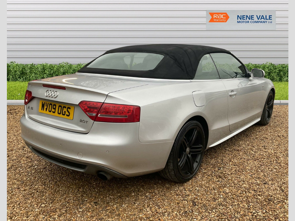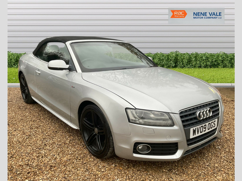 This 2009 Audi A5 Cabriolet TFSI S line offers a superb blend of style and practicality. Finished in the desirable S line trim, this model boasts a 2.0 litre petrol engine, providing a smooth and responsive driving experience. Its generous boot space ensures you have ample room for luggage or shopping, making it a versatile choice for everyday use and weekend getaways alike.With a fuel economy of up to 42 miles per gallon, this A5 Cabriolet is more economical than many similar vehicles. Furthermore, its low CO2 emissions contribute to a more environmentally friendly drive. This combination of efficient performance, spaciousness, and impressive fuel economy makes the Audi A5 Cabriolet TFSI S line a compelling option for those seeking a premium convertible.. 10 Speakers, 18in 10Spoke design Alloy Wheels, 18in 5Spoke S Line Alloy Wheels, 3Spoke S Line Multifunction Leather Steering Wheel, 4Spoke Leather Multifunction Steering Wheel, Concert Radio & CD player with MP3 SD card reader & Aux input socket, Delete capacity designation at Rear, Deletion of model & engine designation at Rear, Matt brushed Aluminium inlay, Piano Black finish inlay.