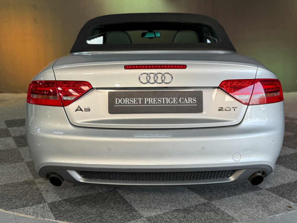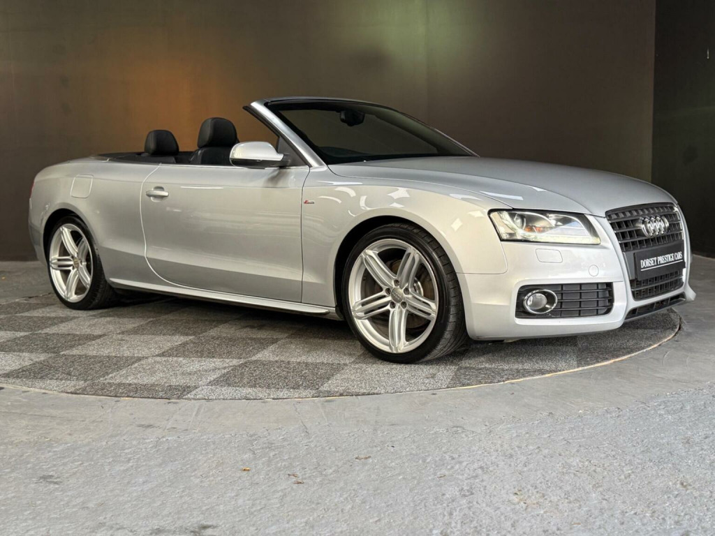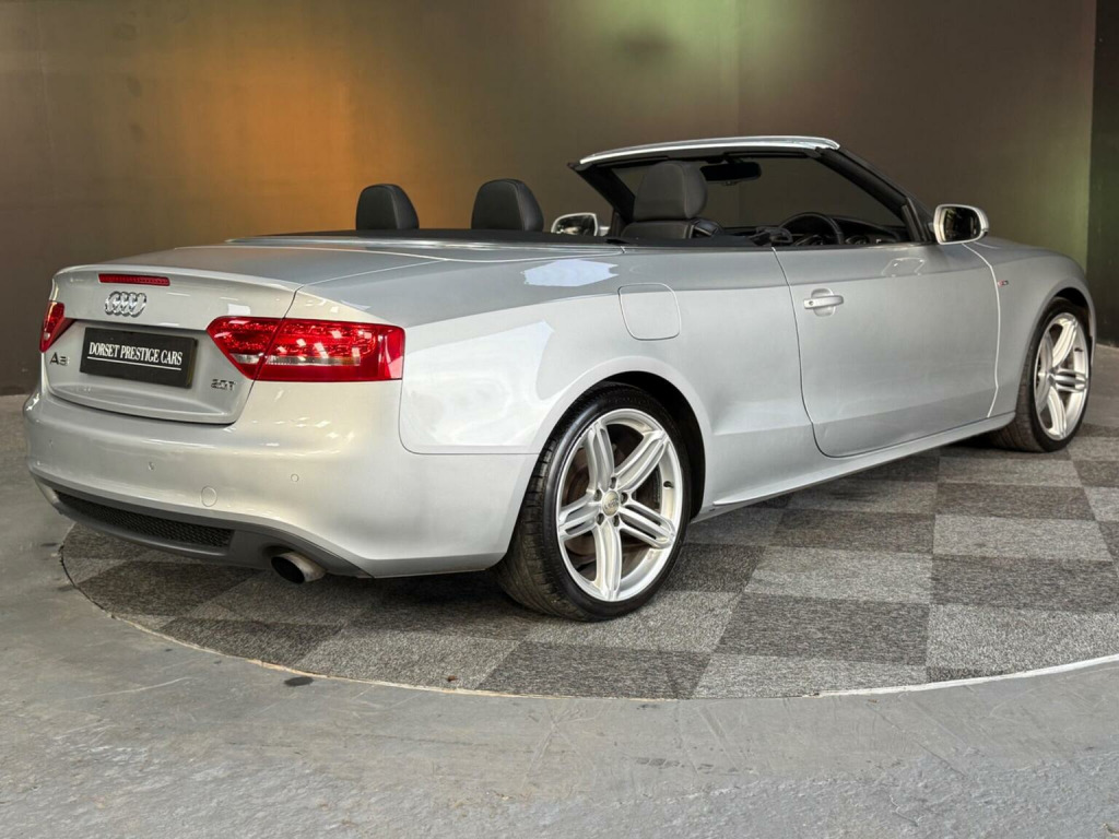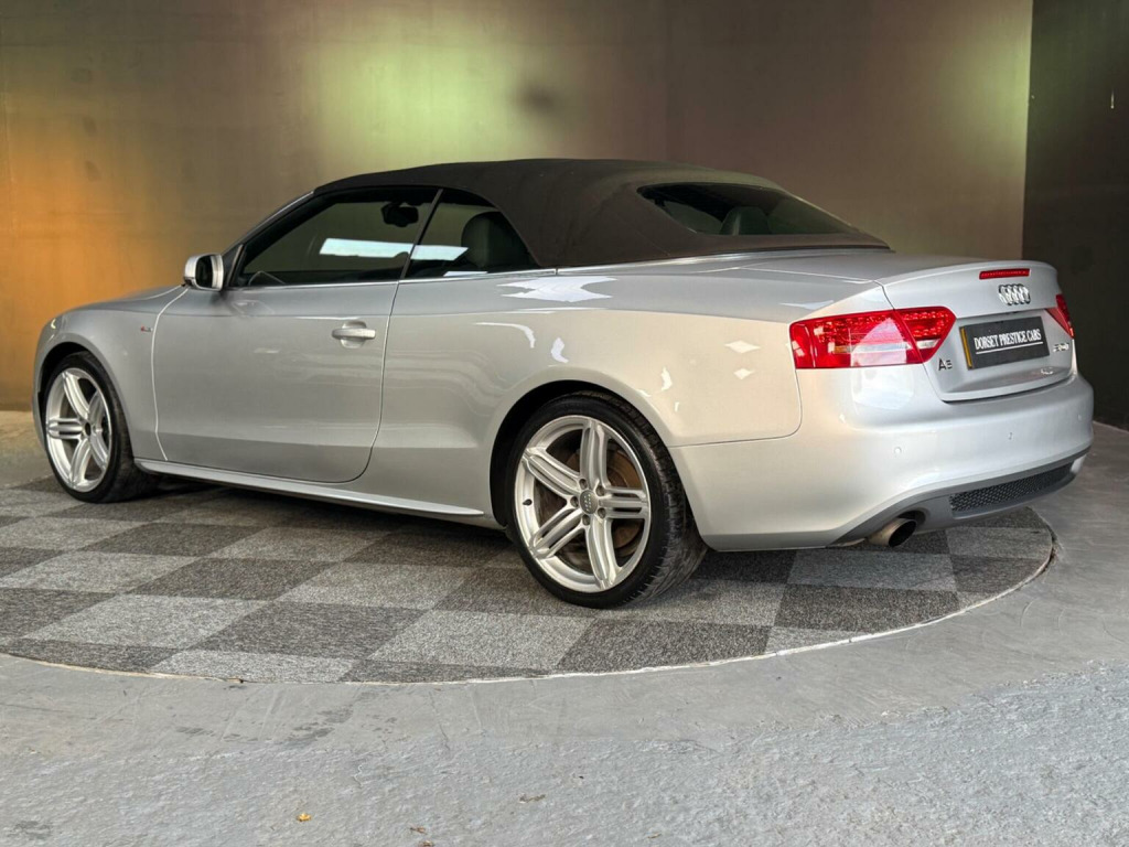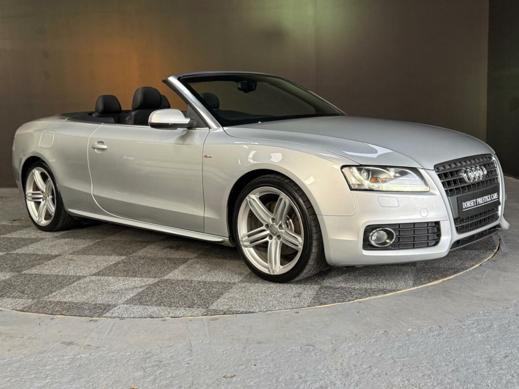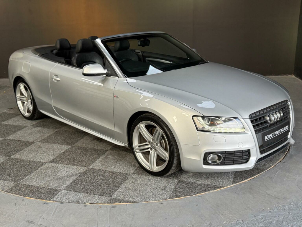 Dorset Prestige Cars are proud to present you this 2009 Audi A5 Cabriolet 2.0 TFSI S line finished in silver with black leather interior. 19 inch S line alloy wheels, Reverse parking sensors, Front and rear fog lights, Electric roof, Bang & Olufsen, Heated Seats, S-Line multifunction steering wheel, Cruise control, Digital dual climate control, Automatic handbrake, Electric handbrake, Automatic wipers, Electric heated mirrors with power fold function, Drivers centre armrest with storage and adjustable, 12 V socket, Isofix seats , Electric folding mirrors. This vehicle is backed up with full service history and two remote keys also comes to the original book pack with manuals, , Nationwide Delivery Trailered or Driven you Choose, 6 Months Warranty+ Extended warranties available 12 Months AA Breakdown.... This vehicle comes with 6 months Warranty for full peace of mind (up to 36 month extension available), 3 or 5 year ceramic coating available, train station collection service, nationwide delivery available on all vehicles. Part Exchange welcome. Open Monday to Saturday ***Viewing By Appointment Only*** All Major Credit and Debit Cards Accepted. Please visit our website for more information on our services and to view our other vehicles currently in stock. Secure this vehicle today for £500 deposit T&Cs Apply! All our vehicles are HPI clear and have been through our workshop for a full health check for peace of mind. See our 5***** reviews , Buy with confidence through us. Find us on Facebook Instagram and YouTube! View our full range of cars on our website and Autotrader profile.