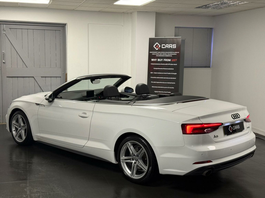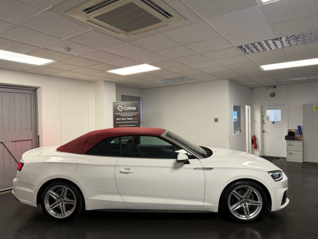 We have just taken in part exchange from a Quattro Tech customer this well maintained and great value A5 Cabriolet, registration PJ18 KNB. , This is the S line 2.0 TFSI 190ps manual in Ibis white with red cabriolet roof and black half leather/alcantara upholstery. , We have the following service history for the car with invoices and recorded on the Audi digital service record;, 30/05/2019 at 19,545 miles at Audi, 28/10/2019 at 28,490 miles, 12/06/2020 at 37,630 miles - major service, 18/06/2021 at 61,519 miles, 13/06/2022 at 77,160 miles, 06/10/2022 at 79,005 miles at Audi inc brake fluid change, 10/10/2023 at 86,835 miles at Quattro Tech, 25/01/2025 at 96,659 miles at QT, We have replaced front and rear pads and discs, air and cabin filters, brake fluid and the auxiliary belt during preparation to complete all current requirements. , Please do call for more information and to discuss this car in more detail, do also make sure you watch our detailed walk-around video on the video tab in the Gallery! We offer competitive finance options with APRs starting from 9.9% over 2-5 years, and can provide any quotations required. All of this can also be done online. We take any make in part exchange - while we only retail VAG product we will still seek the best value we can for your car. If it is easier you can text or WhatsApp on 07564 053855 or go to our website www.qtcars.co.uk and use the WhatsApp icon. We ensure the car receives a structured mechanical check, 12 months MOT upon arrival and 6 months warranty which can be used at any VAT registered garage nationally. Please take a moment to read our reviews to see what our customers are saying