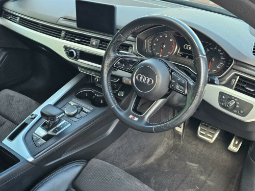 THIS IMPRESSIVE LOOKING AND VERY GOOD CONDITION AUDI A5 S-LINE IS PRESENTED IN METALLIC BLACK WITH CHROME ACCENTS AND S-LINE BODY STYLING, COMPLEMENTED BY 19'' 5-PARALLEL SPOKE SILVER ALLOYS. THE RELIABLE AND ECONOMICAL YET SPORTY 2.0 TFSI ENGINE IS CONNECTED TO A SMOOTH S-TRONIC AUTOMATIC GEARBOX WHICH MAKES THIS CAR EASY AND ENJOYABLE TO DRIVE WHETHER AROUND TOWN OR ON THE MOTORWAY. THE INTERIOR IS UPHOLSTERED IN PART CHARCOAL LEATHER (FRONT HEATED SEATS) WITH ALCANTARA CENTRE INSERTS PLUS CHROME AND BRUSHED ALUMINIUM INSERTS TO THE DASHBOARD AND DOORS WITH LEATHER STEERING WHEEL AND GEAR KNOB WITH PERFORATED LEATHER. THE TECHNOLOGY INCLUDES A 7'' COLOUR SCREEN WITH MMI RADIO PLUS AUDI SOUND SYSTEM WITH DAB, MEDIA STREAMING, BLUETOOTH PHONE AND SAT-NAV. FURTHER EQUIPMENT INCLUDES FRONT AND REAR PARKING SENSORS WITH 'PARKING SYSTEM PLUS' , AUTO LED LIGHTS/WIPERS, LED REAR LIGHTS, DYNAMIC SWEEPING REAR INDICATORS, LED INTERIOR LIGHT PACKAGE, AUTO-DIMMING REARVIEW MIRROR, FACTORY-FITTED REAR PRIVACY GLASS AND MUCH MORE TO BE DISCOVERED. WE HAVE FULLY INSPECTED AND SERVICED THIS CAR, SO THE ONLY ISSUE FOR ITS NEW OWNER WILL BE WHERE THE NEXT TRIP SHOULD BE. PLEASE CALL 0161 761 3452 (OPTION 2) TO ARRANGE A VIEWING, TO RESERVE THE CAR OR FOR MORE INFORMATION. WHILST EVERY EFFORT HAS BEEN MADE TO ENSURE THAT THE STATED SPECIFICATION IS ACCURATE, PLEASE CHECK WITH A MEMBER OF THE SALES TEAM IF A PARTICULAR SPECIFICATION/FEATURE IS IMPORTANT TO YOU.. 18in Alloy Wheels - 5-Twin-Spoke Star Design, 2 x USB Charging Ports and 1 x AUX-IN, 4-Way Electric Lumbar Support, 6-Airbag System, ABS - Anti-Lock Braking System, Air Inlets - Horizontal Inlay in Matt Aluminium, Anti Theft Locking Wheel Bolts, Anti-Theft Alarm, Audi Connect Infotainment Services - 3 Month Trial, Audi Connect Safety and Service, Audi Drive Select, Audi Smartphone Interface, Audi Sound System, Auto-Dimming Rear-View Mirror, Bluetooth Interface, Body Coloured Door Mirrors, CD Drive, Cloth Headlining in Black, Colour Drivers Information System with 7in High-Resolution TFT Screen, Contrast Stitching on Seats - Steering Wheel and Gear Lever Gaiter, Cruise Control with Speed Limiter, DAB Digital Radio Reception, Deluxe 3-Zone Electronic Climate Control, Door Mirrors - Electrically Adjustable and Heated with Built-in LED Indicators, Dual-Branch Design with 1 Exhaust Tailpipe on the Left and Right, ESC - Electronic Stabilisation Control inc ABS - ASR and EDL, Electric Boot Lid Release, Electric Windows - Front, Electrically Adjustable Front Seats, Electromechanical Parking Brake, Electromechanical Power Steering, Email - Calendar and Text Messages can be Displayed on your Vehicles MMI, First Aid Kit and Warning Triangle, Front Centre Armrest, Front and Rear Floor Mats, Gear Lever Knob in Black Perforated Leather, Heated Front Seats, High Gloss Package, High Multi-Function 3-Spoke Leather Steering Wheel with Grips in Perforated Leather and S Badging with Gear-Shift Paddles, Honeycomb Side Air Inlet Grille in Titan Black, ISOFIX Child Seat Mounting and Top Tether, Illuminated Door Sill Trims with S Logo, Inlays - Matt Brushed Aluminium, Keyless Go, LED Headlights with LED Rear Lights and Dynamic Rear Indicators, LED Interior Light Package, Light and Rain Sensor, MMI Navigation - SD Card Based, Multi Collision Brake Assist, Non-Smoking Package, Parking System Plus, Pedals and Footrest - Stainless Steel, Pop-Up Bonnet for Pedestrian Protection, Pre-Sense City, Radiator Grille in Twilight Grey with Matt Aluminium Inlays, Rear Diffuser in Twilight Grey Matt with Honeycomb Grille, Rear Grille - Black Grained, S Line Badges on Front Wings, S Line Front and Rear Bumpers, S line Side Skirts in Black, Seat Belt Monitoring, Space Saver Spare Wheel, Split-Folding 2-Seater Rear Seat Bench in 3 Parts - 40-20-40 with Rear Centre Armrest, Sport Suspension, Tool Kit and Car Jack, Tow Bar Preparation, Tyre Pressure Warning Light, Variable Restraint System, Voice Control System, Windscreen with Acoustic Glazing, Rear Side Airbags, 19in Alloy Wheels - Multi-Spoke Design - Contrasting Grey - Partly Polished, Privacy Glass, Leather-Alcantara - Sport Seats with S Embossed Logo - Black.