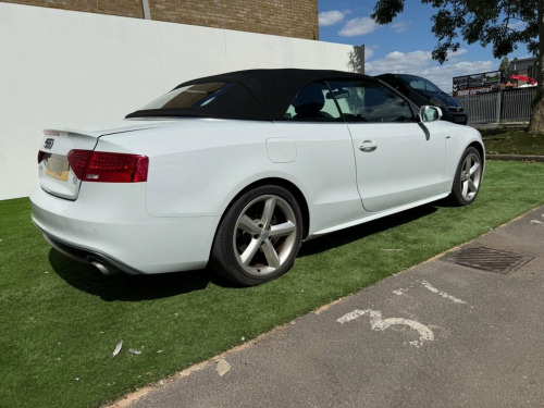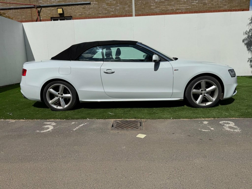 An example of the sleek and powerful Audi A5 Cabriolet 2.0 TFSI S line S Tronic quattro, finished in a crisp white exterior. This premium convertible blends performance, comfort, and all-wheel-drive confidence?perfect for year-round driving in style. Key Features Include: Convertible Rear parking sensors Cruise control Automatic headlights Black leather seats Heated seats Navigation Bluetooth connectivity Air conditioning Alloy wheels Electric windows This vehicle comes with 3 doors, 4 seats, and has covered 96,604 miles. It was first registered in 2012, runs on Petrol, and features an Automatic gearbox. The car is ULEZ compliant, HPI clear, and comes with service history and a valid MOT until May 2026. Important Note: This vehicle is sold with no warranty due to an intermittent gearbox warning light that appears on the dashboard. The car runs and drives well, but is recommended for buyers familiar with or willing to address this issue. As such, it's best suited for trade buyers or mechanically experienced customers. What?s Included: Part exchange welcome Flexible finance options Drive-away insurance, extended warranties, and servicing available at additional costs We also offer nationwide delivery at an additional cost?have the car delivered directly to your door, or visit our dealership to view and collect at your convenience. Visit or Contact Us ? We?re open 7 days a week Unit E4, Middlesex Business Centre, Bridge Road, Southall, London, UB2 4AB Contact us today 12V Power Socket, 18in Alloy Wheels - 5-Spoke Design, ABS - Anti-Lock Braking System, AUX-IN Socket, Acoustic Hood - Fully Automatic, Acoustic Parking System - Rear, Airbags - Driver, Airbags - Front Passenger, Airbags - Front Side System, Alarm - Thatcham Category 1, Audi Sound System, Automatic Wipers with Rain Sensor, Car Jack, Colour Drivers Information System - DIS, Concert Radio - MP3-CD Player, Cup Holders - Centre Console, Deluxe 3-Zone Climate Control, Door Mirrors - Electrically Adjustable a, Door Sill Trims - S Line, ESP - Electronic Stability Programme, Electric Windows - Front and Rear, Electrically Adjustable 4-Way Lumbar Sup, Electromechanical Parking Brake, Electromechanical