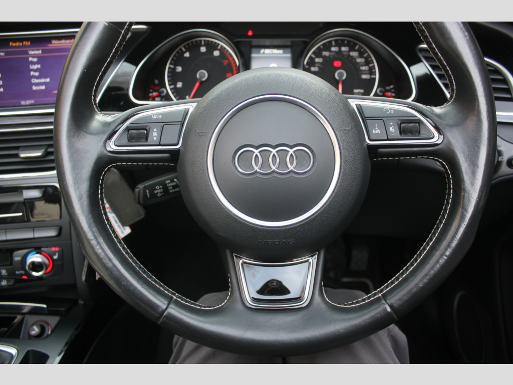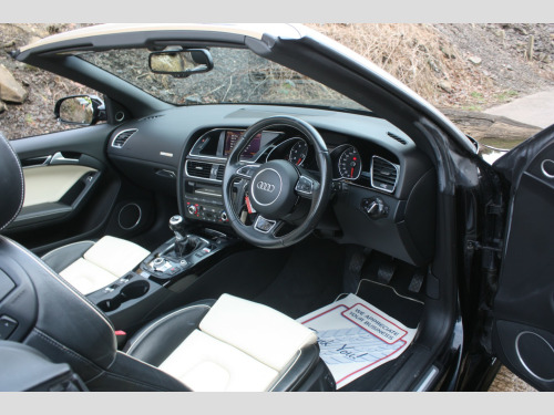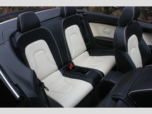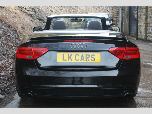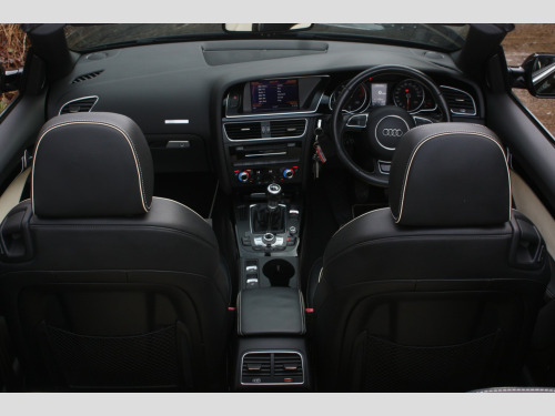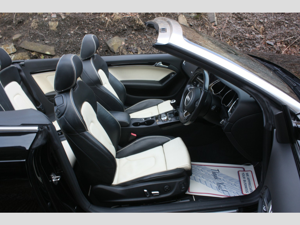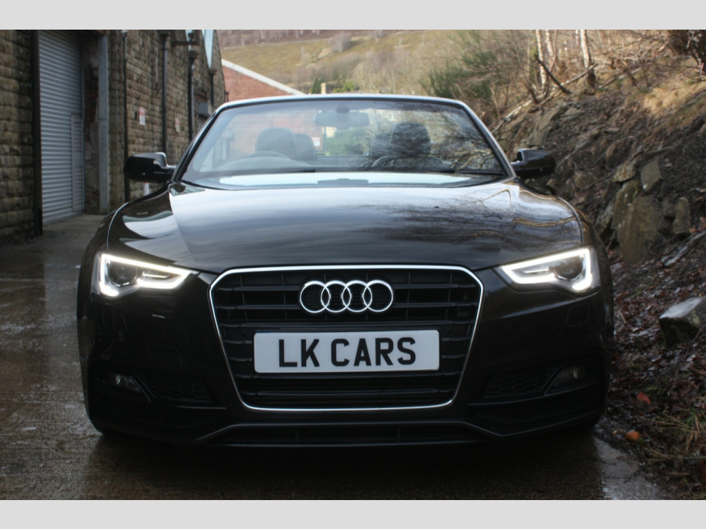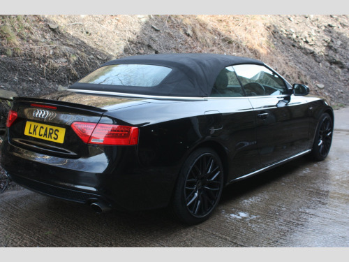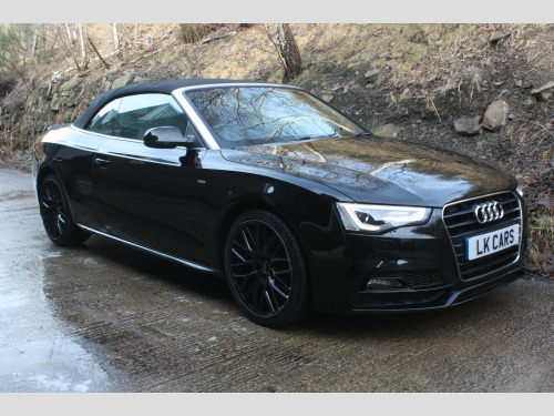 Boasting exceptionally low mileage for its age, this 2015 Audi A5 Cabriolet TFSI S line Special Edition Plus is a truly special find, having been cherished by just one owner. With a mere 17,000 miles on the clock and a full service history, including its most recent service on 18 February 2026 at 17,719 miles, this Euro 6 compliant vehicle offers peace of mind with a 6 month warranty. Inside, youll discover the luxurious Audi Exclusive Line, featuring striking two tone Alabaster White and Black Fine Nappa leather sports seats, complemented by an Audi Exclusive leather covered, 3 spoke multifunction flat bottomed steering wheel and an Audi Exclusive Aluminium gear knob. Front electric adjustment seats ensure optimal comfort for every journey. , This Audi A5 Cabriolet stands out from similar models thanks to its impressive features and thoughtful design. The large boot space offers practicality for everyday use and weekend getaways, a notable advantage for a convertible. Furthermore, its low CO2 emissions highlight its efficiency, making it a more environmentally conscious choice. This S line Special Edition Plus variant combines sporty aesthetics with refined comfort, offering a premium driving experience. , We can provide flexible finance options to make it super easy for you to upgrade, along with part exchange options. We even offer nationwide delivery for your convenience. Check out our full range of vehicles at www.lkcars.co.uk, Viewing is by appointment only, please contact us on 07958390161, , 6 months warranty, Next MOT due 18/02/2026, Last serviced on 18/02/2026 at 17,719 miles, Full service history, 4 seats, Black, 1 owner, Upgrades - Door Mirrors - Mythos Black Housing, Audi Exclusive Line - Sports Seats - Two-Tone Fine Nappa Leather - Alabaster White-Black, Seats - Front Electric Adjustment, Steering Wheel - Audi Exclusive Leather Covered, Standard Features - 12V Power Socket x2, 19in Alloy Wheels - 10-Spoke Y Design, ABS - Anti-Lock Braking System, AMI - Audi Music Interface, AUX-IN Socket, Acoustic Parking System - Rear, Airbags - Driver, Airbags - Front Passenger, Airbags - Front Side, Alarm - Thatcham Category 1, Anti Theft Locking Wheel Bolts, Audi Exclusive Aluminium Gear Knob, Audi Parking System Plus - Front, Audi Parking System Plus - Rear, Audi Sound System Speaker Package, Auto Opening Boot Lid, Auto-Dimming Rear-View Mirror, Automatic Wipers with Rain Sensor, Bang and Olufsen Sound System, Car Jack, Climate Control - Electronic 3-Zone, Colour Centre Console Screen, Colour Drivers Information System - DIS, Concert Radio - MP3-CD Player, Cruise Control, Cup Holders - Centre Console, DAB Digital Radio, Daytime Running Lights, Door Mirrors - Electrically Adjustable and Heated, Door Sill Trims - S Line, ESP - Electronic Stability Programme, Electric Windows - Front and Rear, Electromechanical Parking Brake, Electromechanical Power Steering, Exhaust Tailpipe - Chrome Rolled Finish, Exhaust Tailpipe - Twin, Exterior Aluminium Package, First Aid Kit, Front Centre Armrest, Front Fog Lights, Front and Rear Floor Mats, Fully Automatic Acoustic Hood with LED Passenger Reading Lights, Gear Knob - Perforated Leather, Halogen Headlights, Head Level Heating, Headlights - Bi-Xenon Plus, Headlights - Light Sensor, Headlights - Range Adjustment, Heated Front Seats, Heated Outer Rear Seats, ISOFIX Child Seat Mounting for Front Passenger, ISOFIX Child Seat Mounting for Rear Seats, Inlays - Piano Finish - Black, Interior Chrome Package, LED Daytime Running Lights, LED Rear Lights, Leather Armrests, Mobile Telephone Preparation - Bluetooth Interface, Radiator Grille - High Gloss Black, Rear Diffuser - Gloss Black, Rear Diffuser - S Line Design, Remote Central Locking, Rest Recommendation System, S Line Badges on Wings, S Line Bumpers, S Line Side Skirts, SD Card Reader, Satellite Navigation System - HDD Based, Seats - Front Sports with Electric Lumbar Support, Side Mirrors in High-Gloss Black, Side-Sills in High-Gloss Black, Space Saver Spare Wheel, Split-Folding Rear Seats, Spoiler - Body Coloured, Sport Suspension, Steering Column - Rake and Reach Adjustment, Steering Wheel - 3-Spoke Multifunction Flat Bottomed, Styling Package - S line Exterior, Tool Kit, Warning Triangle, Wind Deflector