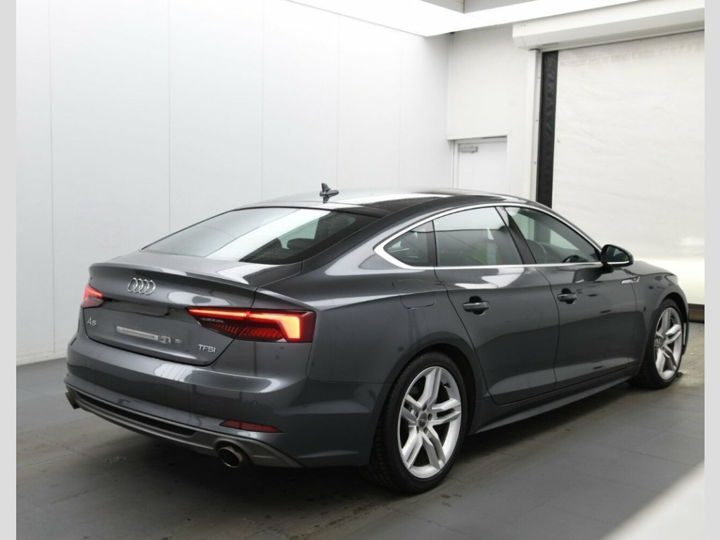 2018 AUDI A5 2.0 TFSI S line Sportback 5dr Petrol S Tronic Euro 6 (s/s) (190 ps) in Daytona Grey. Low Mileage and Service History Supplied. Fitted with Technology Package. 18in Alloy Wheels - 5-Twin-Spoke Star De, 2 x USB Charging Ports and 1 x AUX-IN, 4-Way Electric Lumbar Support, 6-Airbag System, ABS - Anti-Lock Braking System, Air Inlets - Horizontal Inlay in Matt Al, Anti Theft Locking Wheel Bolts, Anti-Theft Alarm, Audi Connect Infotainment Services - 3 M, Audi Connect Safety and Service, Audi Drive Select, Audi Smartphone Interface, Audi Sound System, Auto-Dimming Rear-View Mirror, Bluetooth Interface, Body Coloured Door Mirrors, CD Drive, Cloth Headlining in Black, Colour Drivers Information System with 7, Contrast Stitching on Seats - Steering W, Cruise Control with Speed Limiter, DAB Digital Radio Reception, Daytona Grey, Deluxe 3-Zone Electronic Cli