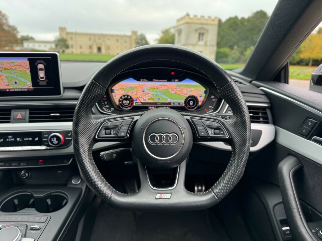 2018 Audi A5 Sportback S Line - 59,000 miles - £16,989Combining coupe elegance with everyday practicality, this 2018 Audi A5 Sportback S Line offers a premium driving experience underpinned by Audi's signature design, engineering, and technology. Finished in Black, this stylish example benefits from a well-maintained history, refined performance, and a host of desirable features.With just 59,000 miles from new, this A5 is ULEZ compliant and comes equipped with high-spec factory options including electric seats, wireless charging, and Audi's acclaimed Virtual Cockpit.Offered with a fresh MOT, comprehensive warranty, and available for nationwide delivery.Spec highlights include:•Audi Virtual Cockpit (Fully Digital Instrument Cluster)•Heated Front Sport Seats•Electrically Adjustable Front Seats with Lumbar Support•Audi Smartphone Interface - Apple CarPlay & Android Auto•Wireless Charging Pad (Audi Phone Box)•Advanced Key - Keyless Entry & Start•Hill-Hold Assist•MMI Infotainment System with Navigation•3-Zone Climate Control•S Line Body Styling & Interior Package•ISOFIX Rear Seats•Cruise Control with Speed Limiter•18'' Audi Alloy Wheels•Drive Select with Comfort, Efficiency, and DynamicThis A5 Sportback delivers a sleek, comfortable, and connected driving experience, ideal for both professional and family life.Dealer benefits included:•ULEZ Compliant•Service History•12 Months MOT•6-Month Warranty Included (extendable up to 3 years)•HPI Clear (certificate available)•Finance Options Available•Part Exchange Welcome•AA Approved Dealer - 6 Months Roadside Cover Included•Nationwide Delivery Available•Vehicle Sourcing Available di side assist including pre-sense rear, technology package, 19in alloy wheels - 5-parallel spoke design, privacy glass, tow bar - folding, deletion of engine technology designation at rear, electrically adjustable front seats with memory function for drivers side, flat-bottomed 3-spoke leather high multi-function steering wheel, leather-alcantara - sport seats with s embossed logo - black, hill hold assist, matrix led headlights with led rear lights and dynamic front and rear indicators, parking assistance pack advanced, rear side airbags, 18in alloy wheels - 5-twin-spoke star design, 2 x usb charging ports and 1 x aux-in, 4-way electric lumbar support, 6-airbag system, abs - anti-lock braking system, air inlets - horizontal inlay in matt aluminium, anti theft locking wheel bolts, anti-theft alarm, audi connect infotainment services - 3 month trial, audi connect safety and service, audi drive select, audi smartphone interface, audi sound system, auto-dimming rear-view mirror, bluetooth interface, body coloured door mirrors, cd drive, cloth headlining in black, colour drivers information system with 7in high-resolution tft screen, contrast stitching on seats - steering wheel and gear lever gaiter, cruise control with speed limiter, dab digital radio reception, deluxe 3-zone electronic climate control, door mirrors - electrically adjustable and heated with built-in led indicators, dual-branch design with 1 exhaust tailpipe on the left and right, esc - electronic stabilisation control inc abs - asr and edl, electric windows - front and rear, electrically adjustable front seats, electromechanical parking brake, electromechanical power steering, email - calendar and text messages can be displayed on your vehicles mmi, first aid kit and warning triangle, front centre armrest, front and rear floor mats, gear lever knob in black perforated leather, heated front seats, high gloss package, high multi-function 3-spoke leather steering wheel with grips in perforated leather and s badging with gear-shift paddles, honeycomb side air inlet grille in titan black, isofix child seat mounting and top tether, illuminated door sill trims with s logo, inlays - matt brushed aluminium, keyless go, led headlights with led rear lights and dynamic rear indicators, led interior light package, light and rain sensor, mmi navigation - sd card based, multi collision brake assist, non-smoking package, parking system plus, pedals and footrest - stainless steel, pop-up bonnet for pedestrian protection, power operated tailgate, pre-sense city, radiator grille in twilight grey with matt aluminium inlays, rear diffuser in twilight grey matt with honeycomb grille, rear grille - black grained, s line badges on front wings, s line front and rear bumpers, s line side skirts in black, seat belt monitoring, space saver spare wheel, split-folding 3-seater rear seat bench in 3 parts - 40-20-40, sport suspension, tool kit and car jack, tow bar preparation, tyre pressure warning light, variable restraint system, voice control system, windscreen with acoustic glazing