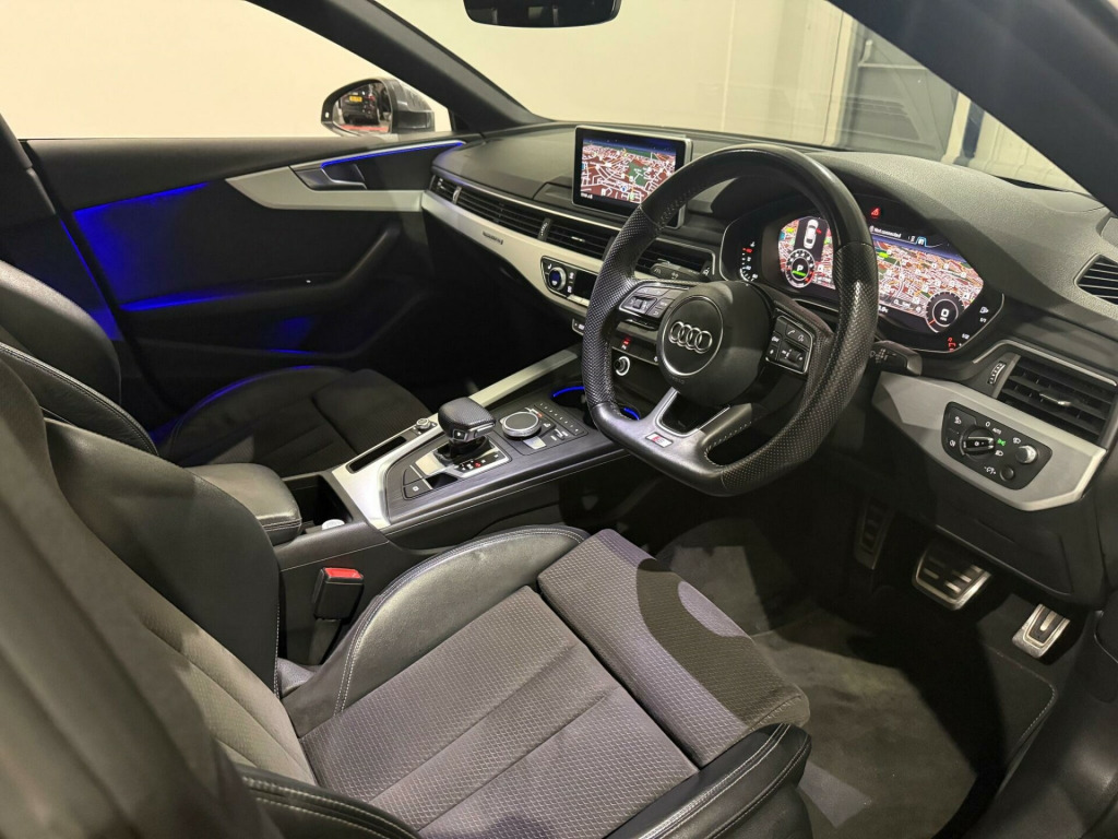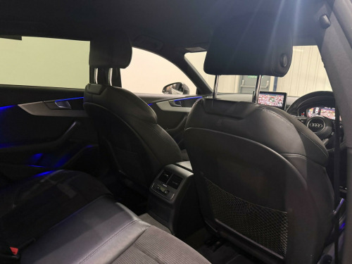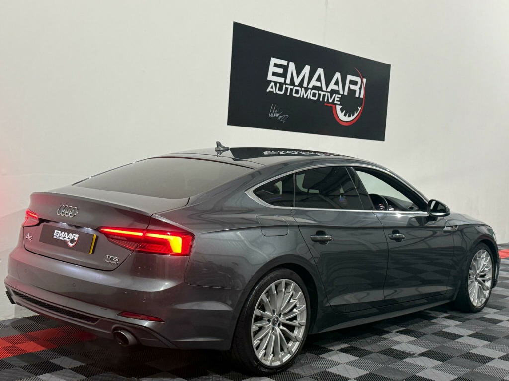 FULL SERVICE HISTORY, HEADS-UP DISPLAY, VIRTUAL COCKPIT DISPLAY, 19'' MULTI SPOKE ALLOYS, MATRIX LED FRONT & REAR DYNAMIC INDICATORS, STORAGE PACKAGE, PRIVACY GLASS, REAR-VIEW CAMERA, S LINE EXTERIOR PACKAGE, COUNTOUR/AMBIENT LIGHTING PACKAGE, ALCANTRA LEATHER, RAIN SENSOR, START/STOP SYSTEM,2 KEYS + MUCH MORE!!!!This 2017 Audi A5 TFSI S line boasts exceptionally low mileage for its age, having covered just 48,000 miles, and comes with a clear vehicle history check. This four wheel drive model is powered by a 2.0 litre petrol engine and meets Euro 6 emission standards. It features striking 19 inch multi spoke alloy wheels in a contrasting grey with a partly polished finish, and benefits from advanced Matrix LED headlights with dynamic front and rear indicators, complemented by LED rear lights.The technology within this A5 is equally impressive, including a Technology Package that offers Bluetooth connectivity and wireless phone charging, alongside a Light and Vision Pack. For added convenience and safety, a rear view camera is integrated for parking assistance. This Audi A5 offers a brisk 0-60mph acceleration in just 5.8 seconds, demonstrating its performance capabilities. Furthermore, its generous boot space provides excellent practicality for everyday use and longer journeys, setting it apart from other vehicles in its class. ad-up display, rear-view camera, 19in alloy wheels - multi-spoke design - contrasting grey - partly polished, audi virtual cockpit, extended led interior lighting package - multi-coloured, technology package, driver assistance pack - tour, matrix led headlights with led rear lights and dynamic front and rear indicators, privacy glass, storage package, electrically adjustable front seats with memory function for drivers side, 18in alloy wheels - 5-twin-spoke star design, 2 x sdxc card readers, 2 x usb charging ports and 1 x aux-in, 4-way electric lumbar support, 6-airbag system, air inlets - horizontal inlay in matt aluminium, anti theft locking wheel bolts, anti-theft alarm, audi connect infotainment services - 3 month trial, audi connect safety and service - e-call, audi drive select, audi smartphone interface, audi sound system, auto-dimming rear-view mirror, bluetooth interface, body coloured door mirrors, cd drive, chrome-plated exhaust trim, cloth headlining in black, contrast stitching on seats - steering wheel and gear lever gaiter, cruise control with speed limiter, dab digital radio reception, deluxe 3-zone electronic climate control, door mirrors - electrically adjustable and heated with built-in led indicators, driver information system - 7in colour display, driver and front passenger airbag with front passenger airbag deactivation, esc - electronic stabilisation control inc abs - asr and edl, electric windows - front, electrically adjustable front seats, electromechanical parking brake, electromechanical power steering, first aid kit and warning triangle, front centre armrest, front and rear floor mats, gear lever knob in black perforated leather, heat-insulating glass - side and rear windows, heated front seats, high gloss package, high multi-function 3-spoke leather steering wheel, honeycomb side air inlet grille in titan black, isofix child seat mounting and top tether, illuminated door sill trims with s logo, inlays - matt brushed aluminium, keyless go, led headlights with led rear lights and dynamic rear indicators, led interior light package, light and rain sensor, luggage compartment mat, mmi navigation - sd card based, mmi radio plus with 7in colour mmi screen, model and engine technology badges at rear, multi collision brake assist, non-smoking package, parking system plus, pedals and footrest - stainless steel, pop-up bonnet for pedestrian protection, power operated tailgate, pre-sense city, radiator grille - twilight grey matt with inlays in matt aluminium, rear diffuser in twilight grey matt with honeycomb grille, rear grille - black grained, remote central locking, s line badges on front wings, s line front and rear bumpers, s line side skirts in black, s line sports package, seat belt monitoring, space saver spare wheel, split-folding 2-seater rear seat bench in 3 parts - 40-20-40 with rear centre armrest, sport suspension, sun visors including vanity mirrors, tool kit and car jack, tyre pressure warning light, variable restraint system, voice control system, windscreen with acoustic glazing