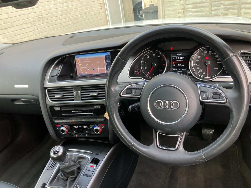 LOVELY A5 QUATTRO, FULL SERVICE HISTORY JUST SERVICED 15TH JANUARY 2016 AT 64,384 MILES, COLOUR SCREEN SATELLITE NAVIGATION, FULL BLACK LEATHER HEATED SEATS, LEATHER MULTI FUNCTION STEERING WHEEL, CRUISE CONTROL, 17 INCH ALLOY WHEELS, DUAL ZONE CLIMATE CONTROL AIR CONDITIONING, TRACTION CONTROL, A.B.S., ELECTRIC WINDOWS, ELECTRIC HEATED MIRRORS, DAB AUDI MULTIMEDIA, BLUETOOTH PHONE CONNECTION, FRONT AND REAR PARKING SENSORS, AUTO LIGHTS AND WIPERS, CENTRE ARMREST, REMOTE CENTRAL LOCKING ALARM WITH 2 KEYS, HPI CLEAR, SPARE WHEEL, TWIN FRONT PLUS SIDE AIRBAGS 12V Power Socket - Centre Console, 18in Alloy Wheels - 10-Spoke Exclusive D, ABS - Anti-Lock Braking System, Airbags - Driver, Airbags - Front Passenger, Airbags - Front Side, Airbags - Head Level Side For Front and , Alarm - Thatcham Category 1, AMI - Audi Music Interface, Anti Theft Locking Wheel Bolts, Audi Parking System Plus, Auto Opening Boot Lid, Auto-Dimming Rear-View Mirror, Automatic Wipers with Rain Sensor, Car Jack, Climate Control - Electronic 3-Zone, Colour Drivers Information System - DIS, Concert Radio, Cruise Control, Cup Holders - Centre Console, DAB Digital Radio, Daytime Running Lights, Display Screen Colour 7in High Resolutio, Door Mirrors - Electrically Adjustable a, El