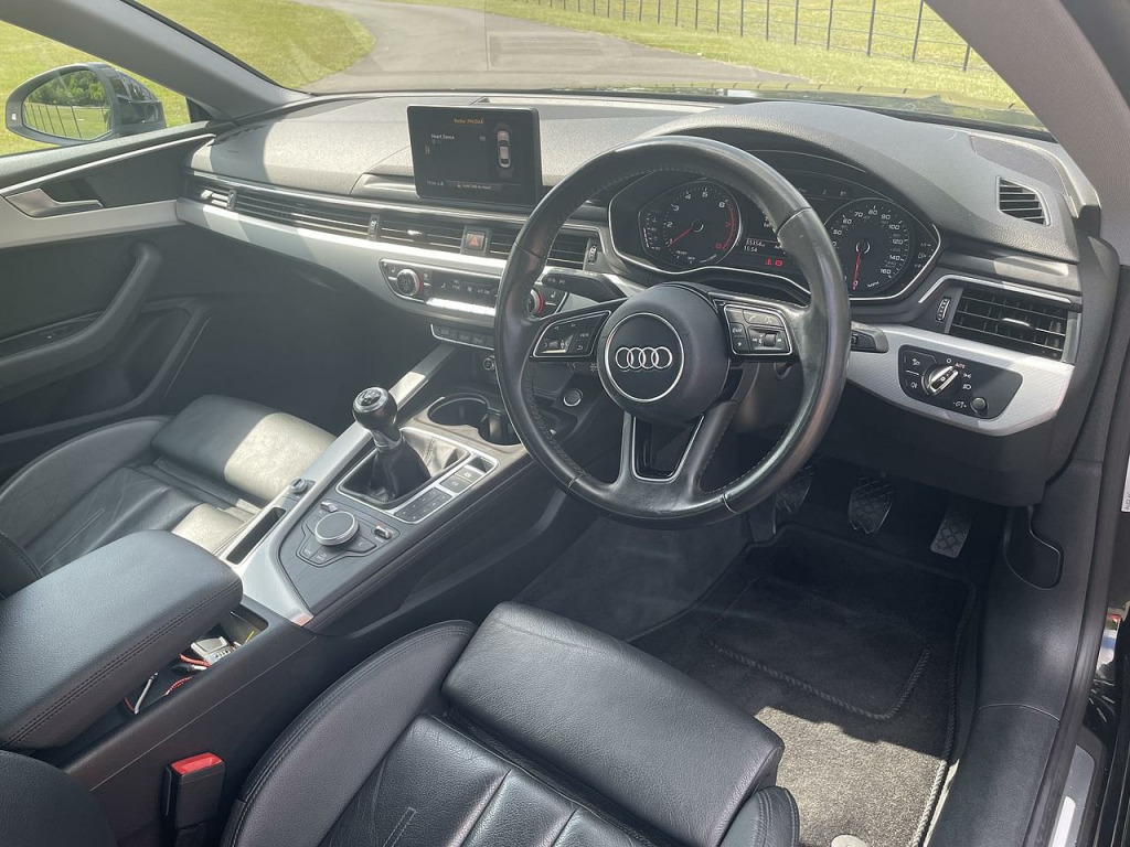Avenue Cars are pleased to present our Audi A5 finished in Black with Full Black Leather Seats. '' Owners from new with 7 Services completed. Last serviced in June 2025 with MOT until August 2025. Great specification including Satellite Navigation, DAB Radio, Front and Rear Parking Sensors, Automatic Lights, Alloy Wheels and 2 x keys. We offer competitive finance packages from 8.9% APR subject to status, please get in touch to see how we can help you. We are also an approved dealer for Close Motor Finance, Blue, ZUTO, Car Finance 247 and MotoNovo. 6 Months Warranty included and this can be extended up to 36 months. Full dealer facilities. Please call us on 01452 521211 for further details and friendly advice. We are located on the A40 Ross Road at Birdwood in Gloucestershire only 10 minutes from Gloucester City Centre. Postcode: GL19 3EH.. 2 x SDXC Card Readers, 2 x USB Charging Ports and 1 x AUX-IN, Audi Connect Infotainment Services - 3 Month Trial, Audi Connect Safety and Service - e-call, Audi Smartphone Interface, Audi Sound System, Bluetooth Interface, CD Drive, DAB Digital Radio Reception, Driver Information System - 7in Colour Display, MMI Navigation - SD Card Based, MMI Radio Plus with 7in Colour MMI Screen, Audi Drive Select, Cruise Control with Speed Limiter, Tyre Pressure Warning Light, Voice Control System, 17in Alloy Wheels - 5-Twin-Spoke Design, Air Inlets - Titan Black with Matt Aluminium Inlay, Anti Theft Locking Wheel Bolts, Body Coloured Door Mirrors, Chrome-Plated Exhaust Trim, Door Mirrors - Electrically Adjustable and Heated with Built-in LED Indicators, Electric Windows - Front, Heat-Insulating Glass - Side and Rear Windows, High Gloss Package, Model and Engine Technology Badges at Rear, Radiator Grille - Twilight Grey Matt with Inlays in Matt Aluminium, Rear Diffuser Strip in Matt Aluminium Silver, Space Saver Spare Wheel, Windscreen with Acoustic Glazing, Light and Rain Sensor, Xenon Headlights with LED Daytime Running Lights, 4-Way Electric Lumbar Support, Auto-Dimming Rear-View Mirror, Deluxe 3-Zone Electronic Climate Control, Door Sill Trims with Aluminium Inlay, Electric Boot Lid Release, Electrically Adjustable Front Seats, Front and Rear Floor Mats, Front Centre Armrest, Heated Front Seats, High Multi-Function 3-Spoke Leather Steering Wheel, Inlays - Aluminium Ellipse - Silver, Keyless Go, LED Interior Light Package, Luggage Compartment Mat, Non-Smoking Package, Split-Folding 2-Seater Rear Seat Bench in 3 Parts - 40-20-40 with Rear Centre Armrest, Sun Visors including Vanity Mirrors, Tool Kit and Car Jack, Comfort Dynamic Suspension, Electromechanical Power Steering, 6-Airbag System, Anti-Theft Alarm, Driver and Front Passenger Airbag with Front Passenger Airbag Deactivation, Electromechanical Parking Brake, ESC - Electronic Stabilisation Control inc ABS - ASR and EDL, First Aid Kit and Warning Triangle, ISOFIX Child Seat Mounting and Top Tether, Multi Collision Brake Assist, Parking System Plus, Pop-Up Bonnet for Pedestrian Protection, Pre-Sense City, Remote Central Locking, Seat Belt Monitoring, Variable Restraint System, Mythos Black, Twin Leather-Leatherette - Sport Seats - Black.