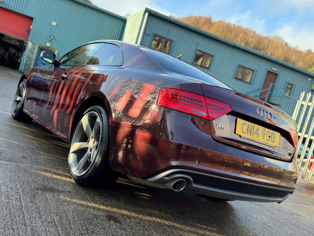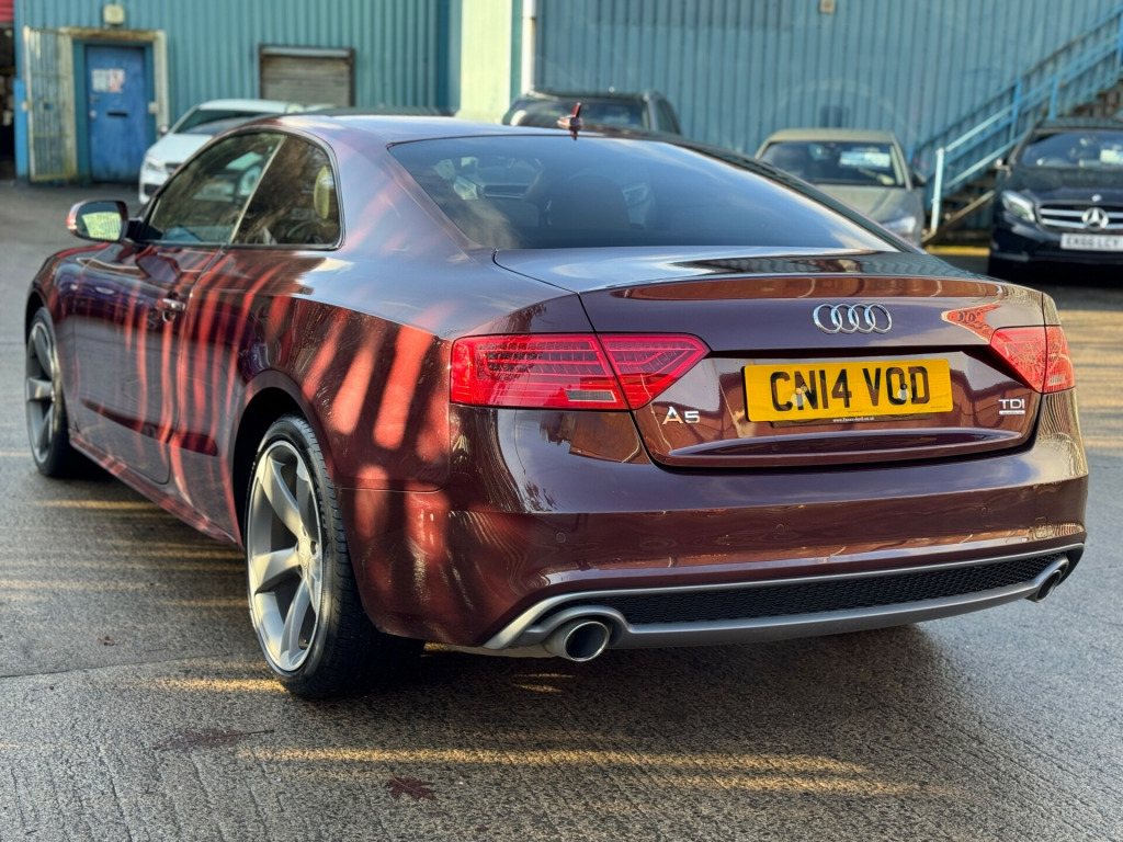 This 2014 Audi A5 3.0 TDI V6 Black Edition Coupe 2dr Diesel S Tronic quattro Euro 5 (s/s) (24 Coupe is currently available for £12,195 with Diesel engine and Automatic gearbox. For more information or to arrange a viewing, click here to send us an email using form below.
