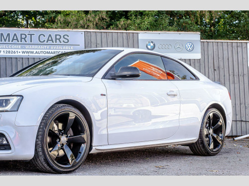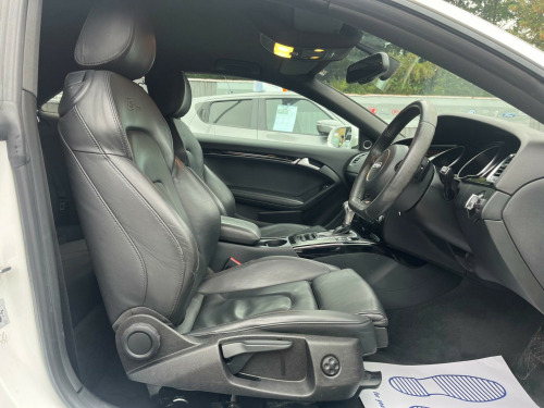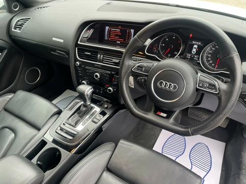 This Audi A5 TDI V6 Black Edition from 2013 boasts exceptionally low mileage for its age, having covered just 81,000 miles, and has been cared for by only two owners. This sophisticated model features a powerful 3.0L diesel engine paired with Audi's renowned four wheel drive system, ensuring excellent performance and grip. The Black Edition trim enhances its striking appearance, while the interior offers a premium feel with Audi Exclusive Aluminium Gear Knob, a leather covered Audi Exclusive steering wheel, and Audi Exclusive Carpets. Convenience is further assured with the Convenience Package and the Audi Parking System Plus, which includes rear parking sensors to aid manoeuvring.This particular A5 stands out with its impressive acceleration, reaching 0 to 62 miles per hour in a swift 5.8 seconds, demonstrating its dynamic capabilities. Its low insurance group rating is a significant advantage, making it more affordable to own and run. Practicality is also a key benefit, with generous boot space offering ample room for luggage or shopping. These attributes collectively highlight how this Audi A5 offers a superior driving experience and ownership proposition compared to many other vehicles in its class.. 12V Power Socket x2, 19in Alloy Wheels - 5-Arm Rotor Design Titanium Look, ABS - Anti-Lock Braking System, AMI - Audi Music Interface, Acoustic Parking System - Rear, Airbags - Driver, Airbags - Front Passenger, Airbags - Front Side System, Airbags - Head Level Side For Front and Rear, Alarm - Thatcham Category 1, Anti Theft Locking Wheel Bolts, Auto Opening Boot Lid, Bang and Olufsen Sound System, Black Styling Package, Climate Control - Electronic 3-Zone, Cloth Headlining in Black, Colour Drivers Information System - DIS, Concert Radio - MP3-CD Player, Cup Holders - Centre Console, DAB Digital Radio, Door Mirrors - Electrically Adjustable and Heated, ESP - Electronic Stability Programme, Electric Windows - Front, Electrically Adjustable 4-Way Lumbar Support, Electromechanical Power Steering, First Aid Kit, Front Centre Armrest, Front Fog Lights, Fully Automatic Hood, Headlights - Automatic Adjustment, Headlights - Bi-Xenon Plus, Headlights Washers, ISOFIX child seat preparation Front and Rear with passenger airbag deactivation switch, Inlays - Piano Finish - Black, Intelligent Key, LED Daytime Running Lights, Leather Armrests, Light and Rain Sensor Package, Mobile Telephone Preparation - Bluetooth Interface, Privacy Glass, Radiator Grille - Matt Black, Radiator Grille Frame - High Gloss Black, Seats - Drivers Manual Height Adjustment, Sound Package, Space Saver Spare Wheel, Split-Folding Rear Seats, Sport Suspension, Steering Column - Rake and Reach Adjustment, Steering Wheel - 3-Spoke Leather-Multifunction-Flat Bottomed-Shift Paddles, Steering Wheel - Multi-function, Audi Parking System Plus, Alcantara - leather - S Line Seats - Black with Grey Stitching, Audi Exclusive Aluminium Gear Knob, Audi Exclusive Carpets, Convenience Package, Steering Wheel - Audi Exclusive Leather Covered, Technology Package - Low. Part service history