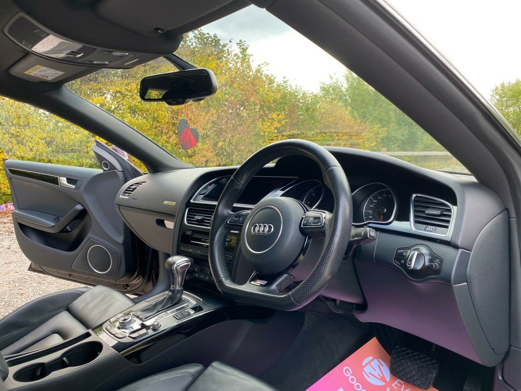 This 2014 Audi A5 TDI V6 Black Edition offers excellent value with its MOT valid until September 2026 and a clear vehicle history check. This striking model, featuring the desirable Black Edition trim, is powered by a robust 3.0 litre diesel engine, offering a compelling blend of performance and efficiency. Benefiting from a partial service history and a 6 month warranty for your peace of mind, this Audi A5 also boasts low mileage for its age, having covered just 93,000 miles.The driving experience is enhanced by a range of premium features, including Bi-Xenon Plus headlights with automatic activation and a light sensor, ensuring optimal visibility. Inside, you'll find a luxurious Bang and Olufsen sound system for an immersive audio experience, and electronic 3-zone climate control to keep all occupants comfortable. This Audi A5 stands out with its impressive acceleration, reaching 0-62mph in a swift 7.1 seconds, a performance that surpasses many vehicles in its class. Furthermore, its low insurance group rating and generous boot space make it a practical and economical choice for everyday use and longer journeys.. 12V Power Socket - Centre Console, 19in Alloy Wheels - 5-Arm Rotor Design Titanium Finish, 6.5in Display Screen, ABS - Anti-Lock Braking System, AMI - Audi Music Interface, Airbags - Driver, Airbags - Front Passenger, Airbags - Front Side, Airbags - Head Level Side For Front and Rear, Alarm - Thatcham Category 1, Anti Theft Locking Wheel Bolts, Auto Opening Boot Lid, Auto-Dimming Rear-View Mirror, Automatic Wipers with Rain Sensor, Bang and Olufsen Sound System, Black Styling Package, Car Jack, Climate Control - Electronic 3-Zone, Cloth Headlining in Black, Colour Drivers Information System - DIS, Concert Radio, Cruise Control, Cup Holders - Centre Console, DAB Digital Radio, Door Mirrors - Electrically Adjustable and Heated, Door Sill Trims - S Line, EDL - Electronic Differential Lock, ESP - Electronic Stability Programme, Electric Windows - Front and Rear, Electromechanical Parking Brake, Electromechanical Power Steering, Exterior Aluminium Package, First Aid Kit, Front Centre Armrest, Front Fog Lights, Front Passenger Airbag Deactivation Switch, Front and Rear Floor Mats, Gear Knob - Perforated Leather, Headlight Washers, Headlights - Bi-Xenon Plus, Headlights - Light Sensor, Headlights - Range Adjustment, ISOFIX Child Seat Preparation Front and Rear, Inlays - Piano Finish - Black, Intelligent Key, Interior Chrome Package, LED Daytime Running Lights, LED Rear Lights, Leather Armrests, Mobile Telephone Preparation - Bluetooth Interface, Privacy Glass, Radiator Grille - High Gloss Black, Rear Parking Sensors, Rest Recommendation System, Seats - Front Sports with Electric Lumbar Support, Space Saver Spare Wheel, Steering Column - Rake and Reach Adjustment, Steering Wheel - 3-Spoke Multifunction Flat Bottomed, Steering Wheel - Multi-function, Tool Kit, Warning Triangle. Part service history