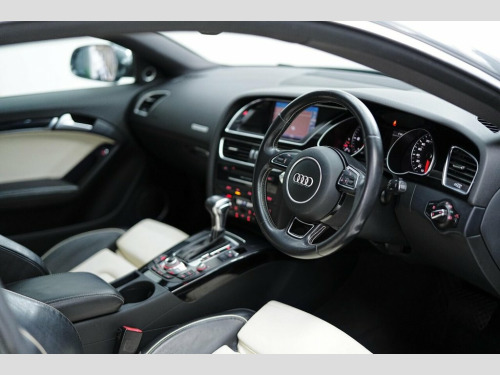 Ultra High Spec Daytona Grey A5 Coupe - Panoramic Glass Sunroof Roof, 19" Alloy Wheels, Front & Rear Parking Sensors, Privacy Glass Tinted Windows, Folding Heated Door Mirrors, LED DRL Headlights, Bang & Olufsen Premium Audio, Technology Package, Satellite Navigation ,Bluetooth, AUX / USB, Media Interface, DAB Digital Radio, WIFI Connectivity, Electric Seats, Climate Control AC, Heated Seats, Steering Wheel Mounted Shifters, Cruise Control, Audi Drive Select, Adjustable Suspension Dampening, Auto Lights, Auto Wipers, Gloss Black Interior Trim, Auto Dimming Rear View & Many More Fitted Features. Phone Lines Open 7 Days a Week. Free Local Deliveries on all Seen & Purchased Vehicles. Full Video Presentations Available on all Cars. Full Warranties available up to 2 Years with Zero Excess at Trade Cost. Low Rate PCP & HP Finance Available on Most Cars Up to 10 Years Old - Can Assist with Part Exchange. We Are FCA Regulated with Indoor Viewing Available. All Vehicles HPI Clear. We aim to offer the highest market part exchange value -------------- Available Now this Audi A5 Auto Diesel Coupe has covered 76k Miles in Daytona Grey Pearl with Audi Exclusive Line Two Tone Alabaster White & Black Fine Nappa Leather Interior. Documented Service History & Freshly Serviced for Sale. All Vehicles Subject to Full Health Check and/or Fresh MOT Before or at Point of Sale - LOW RATE FINANCE AVAILABLE TERMS APPLY // Consumer Credit Licence Number: 793202 // Any Further Questions Relating t 12V Power Socket - Centre Console, 18in Alloy Wheels - 5-Double-Spoke Desig, ABS - Anti-Lock Braking System, AUX-IN Socket, Airbags - Driver, Airbags - Front Passenger, Airbags - Front Side, Airbags - Head Level Side For Front and , Alarm - Thatcham Category 1, Anti Theft Locking Wheel Bolts, Auto Opening Boot Lid, Auto-Dimming Rear-View Mirror, Automatic Wipers with Rain Sensor, Car Jack, Climate Control - Electronic 3-Zone, Cloth Headlining in Black, Colour Drivers Information System - DIS, Cruise Control, Cup Holders - Centre Console, DAB Digital Radio, Door Mirrors - Electrically Adjustable a, Door Sill Trims - S Line, ESP - Electronic Stability Programme, Electric Windows - Front, Elect