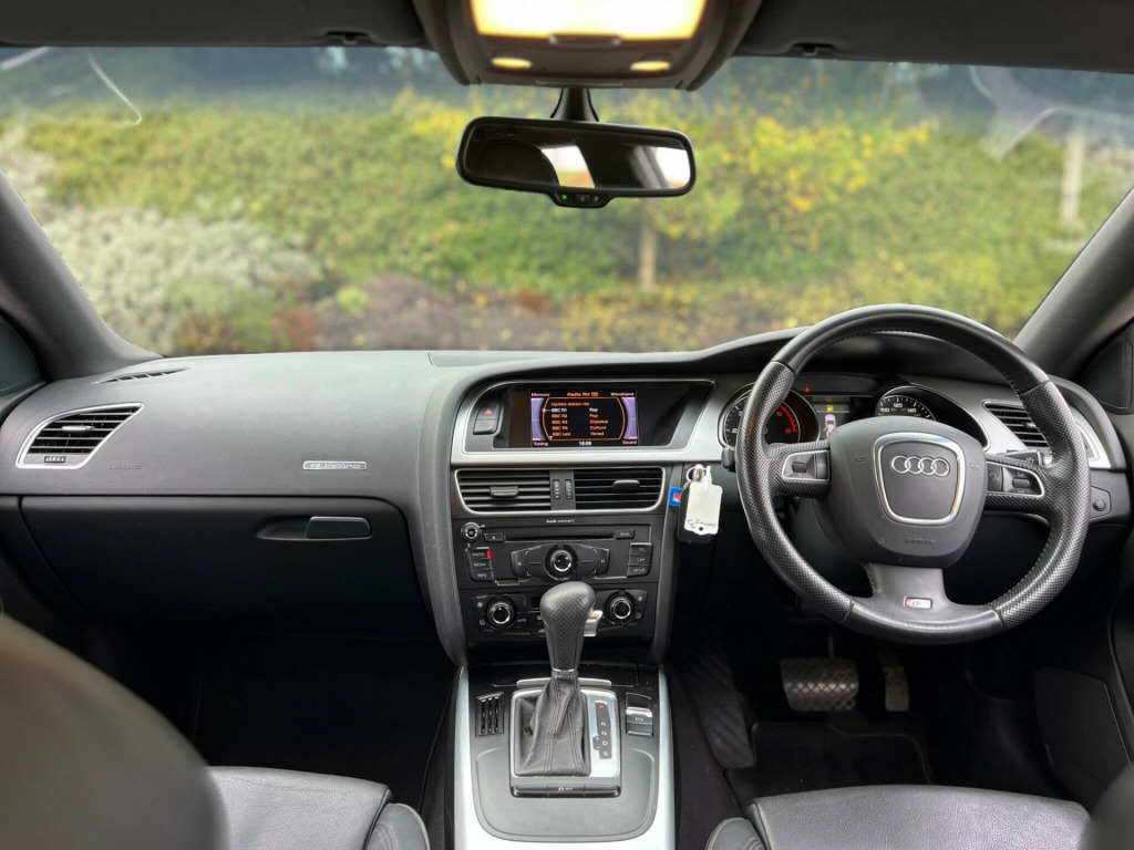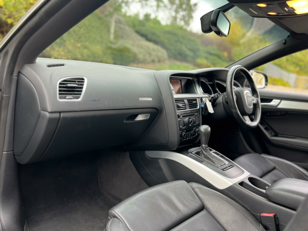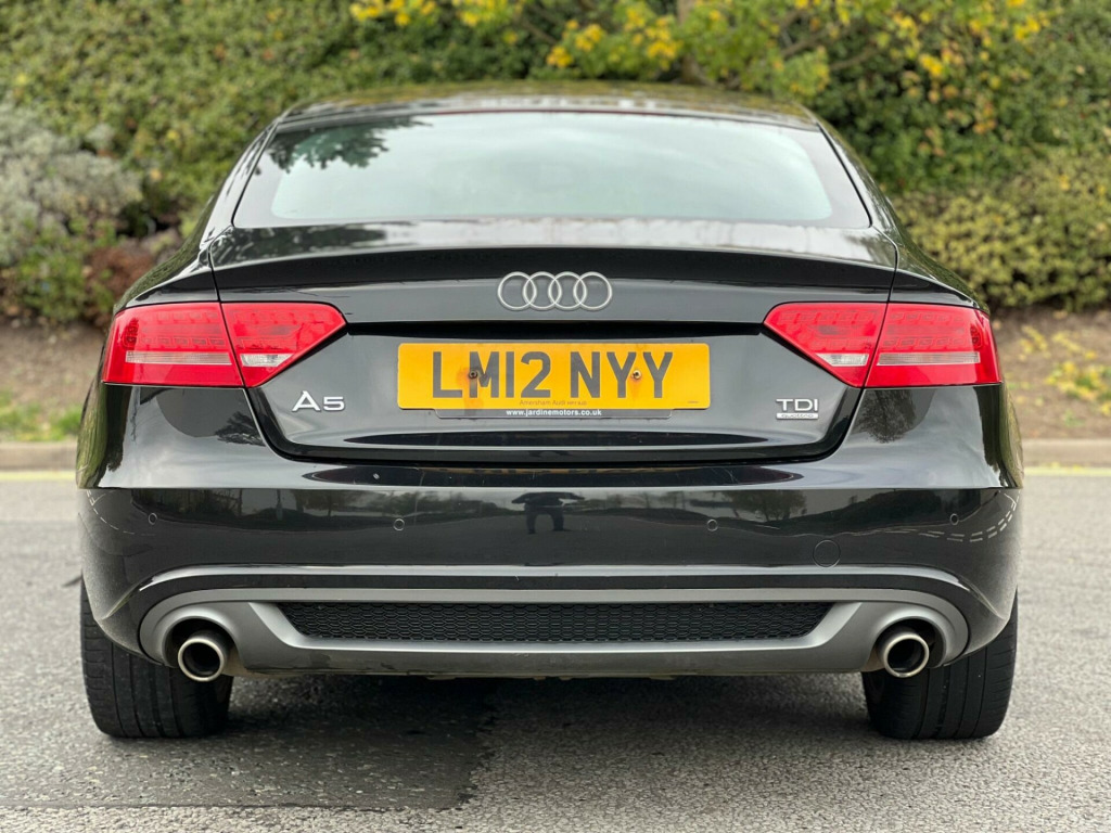 2012 Audi A5 3.0 TDI V6 S line Sportback S Tronic quattro Euro 5 (s/s) 5dr in Grey. 107000 warranted miles on the clock. Car comes with a 12 Month Warranty!!! MOT till 24th November 2026. Only 1 previous owners from new. Service History Available: 9 Services 3 Main Dealer. Car starts and drives well with no mechanical faults. Full V5 Available. Good spec including: Automatic Gearbox, Automatic Headlights, Electric Hand Brake, Leather Seats, Leather Steering Wheel, CD/Radio/AUX/USB, AC/Climate Control, Electric Windows, Electric Mirrors, Alloy Wheels, Cruise Control, Central Locking and many more. Nationwide Delivery Available. P/X Welcome. HPI Clear. ULEZ Compliant. Any questions don't hesitate to contact us on 07443456706 v power socket x2, 18in alloy wheels - 5-spoke s line design, abs - anti-lock braking system, aux-in socket, acoustic parking system - rear, airbags - driver, airbags - front passenger, airbags - front side system, airbags - head level side for front and rear, alarm - thatcham category 1, audi sound system, auto opening boot lid, automatic wipers with rain sensor, climate control - electronic 3-zone, cloth headlining in black, colour drivers information system - dis, concert radio - mp3-cd player, cup holders - centre console, door mirrors - electrically adjustable and heated, esp - electronic stability programme, electric windows - front and rear, electrically adjustable 4-way lumbar support, electromechanical power steering, first aid kit, front centre armrest, front fog lights, headlights - automatic adjustment, headlights - bi-xenon plus, headlights washers, isofix child seat preparation front and rear with passenger airbag deactivation switch, inlays - matt brushed aluminium, intelligent key, led daytime running lights, leather armrests, light and rain sensor package, mobile telephone preparation - bluetooth interface, seats - drivers manual height adjustment, seats - front sports with electric lumbar support, space saver spare wheel, split-folding rear seats, sport suspension, steering column - rake and reach adjustment, steering wheel - 3-spoke leather - multi-function - sports - shift paddles, steering wheel - multi-function
