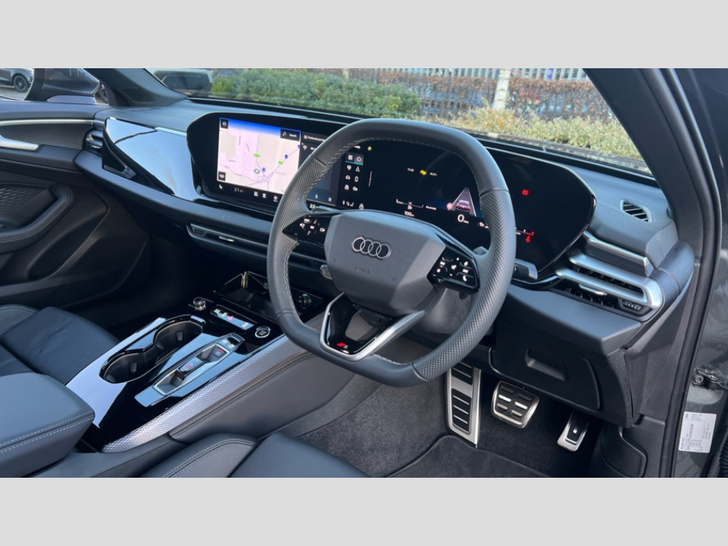 Audi A5 2.0 TFSI 204 S line 4dr S Tronic Adaptive cruise control, Advanced driver attention and fatigue montior, Audi application store, Audi assistant, Audi connect emergency call and service, Audi drive select, Audi smartphone interface, Audi virtual cockpit plus with 11.9" OLED colour display, Automatic start/stop system with coasting functionality, Camera based traffic sign recognition, Intersection assist, Lane departure warning, MMI navigation plus with high resolution 14.5" OLED touchscreen colour display, Park assist plus, Parking system plus with 360 display, Progressive steering with servotronic, Rear view camera, Swerve assist and turn assist, Traffic sign based speed limiter, Sports suspension lowered by 20mm, 2 USB-C ports in both the front and rear, Audi sound system impressive sound with 10 loudspeakers including centre speaker and subwoofer, 6-channel amplifier with a total output of 180 watts, DAB digital radio reception, Smartphone compartment with wireless charging, Aluminium window trims, Auto dimming rear view mirror, Body colour door mirrors, Door mirrors - electrically adjustable, heated, folding and auto dimming on both sides, Front and rear electric windows, Front door sill trims with aluminium inlays, illuminated with 'S' logo, High beam assist, LED headlights Plus incl. digital daytime running lights, turning light, all-weather light, motorway light, manouevring light and intersection light, LED rear lights pro incl. dynamic rear indicators and illuminated light strip with animated coming and leaving home function, LED third brake light, Privacy glass, Rear and side windows with heat insulating glass, Rear boot, Rear side wing doors, S Line badges on the front wings, S line bumpers, radiator grille and diffuser in phantom black and diffuser insert in matt anthracite, White rhombus logo projection light in exterior mirrors, Windscreen with acoustic glazing, 3 rear headrests, 3 seat rear bench, 3 spoke leather steering wheel with multi-function buttons with touch control, flattened on top and bottom, with S badging and contrast stitching, 3-zone automatic climate control, 40:20:40 split folding rear seat bench with centre armrest and cup holders, Comfort front centre armrest, Front and rear floor mats, Front seats with manual adjustment for position and 4-way electric lumbar support, Front sport seats with integrated headrest and S embossed logo, Headlining in black cloth, Heated front seats, i-Size child seat mounting on the front passenger side and outer rear seats, i-Size and top tether on the outer rear seats, Luggage compartment lid, electrically opening and closing, Manual steering column height and depth adjustment, Single front passenger seat, Stainless steel pedals and footrest, Steering wheel grips in perforated leather and shift paddles, Ambient lighting package plus - A5, 3x3 point rear seat belts, Driver airbag, Electric child safety locks, First aid kit with warning triangle and vests, Front emergency brake assist, Front passenger airbag, Front passenger airbag deactivation, Front side airbags with head airbag system and front interaction airbag, Hill hold assist, Seat belt monitoring with rear seat occupant reminder, Tyre pressure loss indicator, Anti theft alarm, Anti-theft wheel bolts, Keyless Go, Accent surfaces and control buttons in gloss black, Black dashboard with contrast stitching, Inlays in matt brushed aluminium with linear embossing, anthracite, Softwrap in leatherette with contrast stitching, Upper and lower interior elements in leatherette, Tyre repair kit