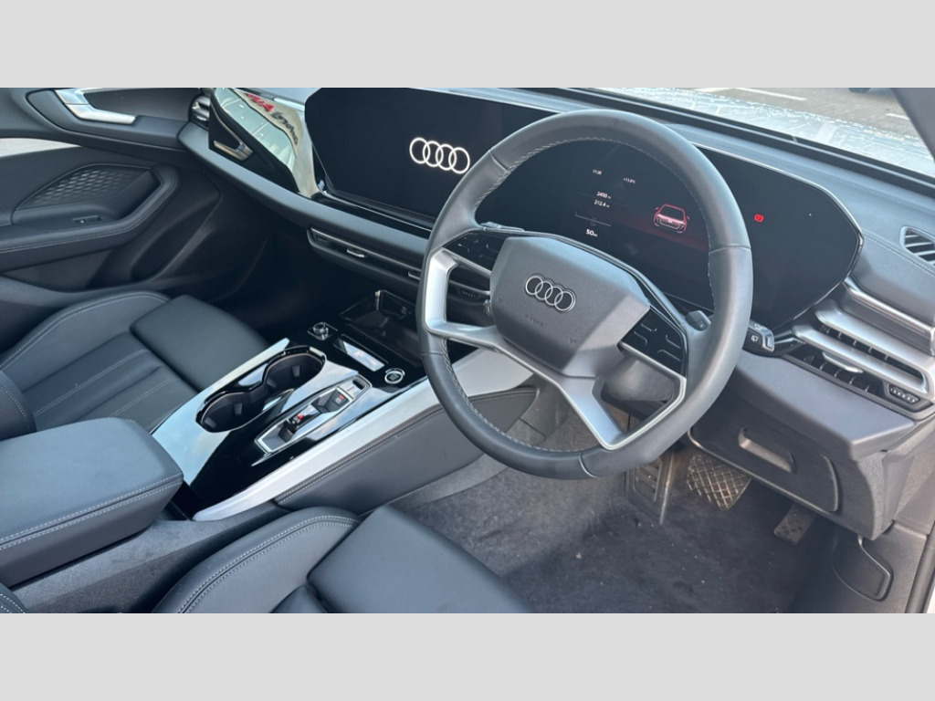 Audi A5 2.0 TFSI 150 Sport 5dr S Tronic Adaptive cruise control, Advanced driver attention and fatigue montior, Audi application store, Audi assistant, Audi connect emergency call and service, Audi drive select, Audi smartphone interface, Audi virtual cockpit plus with 11.9" OLED colour display, Automatic start/stop system with coasting functionality, Camera based traffic sign recognition, Intersection assist, Lane departure warning, MMI navigation plus with high resolution 14.5" OLED touchscreen colour display, Park assist plus, Parking system plus with 360 display, Progressive steering with servotronic, Rear view camera, Swerve assist and turn assist, Traffic sign based speed limiter, Comfort suspension, 2 USB-C ports in both the front and rear, Audi sound system impressive sound with 10 loudspeakers including centre speaker and subwoofer, 6-channel amplifier with a total output of 180 watts, DAB digital radio reception, Smartphone compartment with wireless charging, Aluminium roof rails, Aluminium window trims, Auto dimming rear view mirror, Body colour door mirrors, Door mirrors - electrically adjustable, heated, folding and auto dimming on both sides, Front and rear electric windows, Front door sill trims with aluminium inlays, illuminated, High beam assist, LED headlights Plus incl. digital daytime running lights, turning light, all-weather light, motorway light, manouevring light and intersection light, LED rear lights pro incl. dynamic rear indicators and illuminated light strip with animated coming and leaving home function, LED third brake light, Rear and side windows with heat insulating glass, Rear side wing doors, Rear wash/wipe, Sport bumpers, radiator grille and diffuser in scandium grey and diffuser insert in matt selenite silver, White rhombus logo projection light in exterior mirrors, Windscreen with acoustic glazing, 3 rear headrests, 3 seat rear bench, 3-zone automatic climate control, 40:20:40 split folding rear seat bench with centre armrest and cup holders, Comfort front centre armrest, Front and rear floor mats, Front seats with manual adjustment for position and 4-way electric lumbar support, Front sport seats with integrated head reastrains, Heated front seats, i-Size child seat mounting on the front passenger side and outer rear seats, i-Size and top tether on the outer rear seats, Luggage compartment lid, electrically opening and closing, Manual steering column height and depth adjustment, Rock grey cloth headlining, Single front passenger seat, Twin leather upholstery, Twin spoke leather steering wheel with multi-function buttons with touch control, shift paddles and trim in chrome look, Ambient lighting package plus - A5, 3x3 point rear seat belts, Driver airbag, Electric child safety locks, First aid kit with warning triangle and vests, Front emergency brake assist, Front passenger airbag, Front passenger airbag deactivation, Front side airbags with head airbag system and front interaction airbag, Hill hold assist, Seat belt monitoring with rear seat occupant reminder, Tyre pressure loss indicator, Anti theft alarm, Anti-theft wheel bolts, Keyless Go, Accent surfaces and control buttons in gloss black, Black dashboard with contrast stitching, Inlays in matt brushed aluminium, silver, Softwrap in leatherette with contrast stitching, Upper and lower interior elements in leatherette, Tyre repair kit