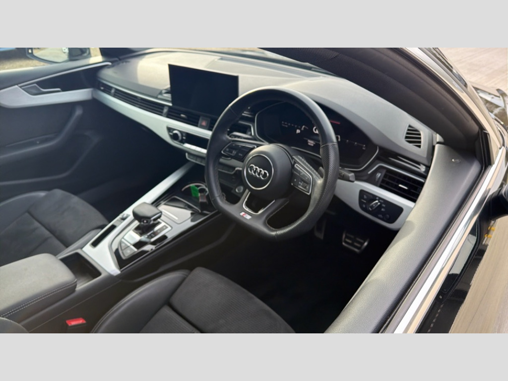Audi A5 35 TDI S Line 5dr S Tronic Audi connect safety and service (e-call), Audi drive select (Auto, Comfort, Dynamic, Efficiency and Individual), Audi parking system plus with front and rear sensors, Audi phone box with wireless charging, Audi smartphone interface, Audi virtual cockpit - 12.3" full colour digital instrument cluster,vehicle/engine speed,Radio/media information+Driver assistance systems, Automatic start-stop system with coasting functionality and efficiency programme, Bluetooth interface, Electro-mechanical power steering, Email, calendar and text messages displayed via MMI, MMI nav+ with MMI touch - 10.1" high resolution MMI display, touch sensitive, 3D map, route/country info, dynamic route guide, personal route assist, Power operated tailgate, Rear view camera, Service interval indicator, Voice control system, Diesel particulate filter, Sports suspension lowered by 23mm, 8 passive loudspeakers, CD player, DAB digital radio reception, Two additional USB ports for rear passenger in rear centre console, Two SDXC card slots, Audi matrix LED headlights with LED rear lights + dynamic front and rear indicators, Auto dimming rear view mirror, Body colour bumpers, Body colour door handles, Body colour front spoiler lip, Body colour side sill trim, Body coloured door mirrors, Electric adjustable heated door mirrors, Electric folding door mirrors, Electric front windows, Front fog lights, Honeycomb structure radiator grille in grained matt black, Matt aluminium silver tailpipe trim, Privacy glass, Rain and light sensors, S line badges on front wings, S line front and rear bumpers with side skirts, S Line rear diffuser in matt titanium black with trim strip in matt aluminium silver, Side air inlets in grained matt black with matt aluminium silver inlay, Towbar preparation, Windscreen with acoustic glazing, 4 way electric lumbar support for driver and front passenger, 40/20/40 split folding 3 seater rear bench seat, Adjustable steering column, Black cloth headlining, Black perforated leather gearknob, Contrast stitching on seats, steering wheel and gear lever gaiter, Deluxe 3 zone electronic climate control, Front centre armrest, Front head restraints, Front/rear floor mats, Heated front seats, Illuminated door sill trim with S logo, ISOFIX child seat mounting and top tether, Luggage compartment mat, Manual seat adjustment, Rear headrests, Stainless steel pedals, Sunvisors with vanity mirrors, LED interior light pack - A5/RS5, 3x3 point rear seatbelts, 6 airbags - Driver, front passenger, curtain and side airbags, Electromechanical parking brake, Electronic Stabilisation Control (ESC) including ABS, ASR and EDL, Front passenger airbag deactivation, Height adjustable front seatbelts, Hill hold assist, Multi collision brake assist, Pop-up bonnet for pedestrian protection, Seatbelt monitoring, Tyre pressure warning, Variable restraint system, Warning triangle and first aid kit, Anti theft alarm system, Anti theft wheel bolts, Immobiliser, Keyless Go, Remote central locking, Matt brushed aluminium inlays, Tool kit, Tyre repair kit