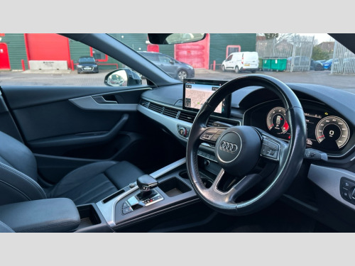 Audi A5 35 TDI Sport 5dr S Tronic Audi connect safety and service (e-call), Audi drive select (Auto, Comfort, Dynamic, Efficiency and Individual), Audi parking system plus with front and rear sensors, Audi phone box with wireless charging, Audi smartphone interface, Audi virtual cockpit - 12.3" full colour digital instrument cluster,vehicle/engine speed,Radio/media information+Driver assistance systems, Automatic start-stop system with coasting functionality and efficiency programme, Bluetooth interface, Cruise control system with speed limiter with free wheeling capability, Electro-mechanical power steering, Email, calendar and text messages displayed via MMI, MMI nav+ with MMI touch - 10.1" high resolution MMI display, touch sensitive, 3D map, route/country info, dynamic route guide, personal route assist, Power operated tailgate, Rear view camera, Service interval indicator, Voice control system, Comfort dynamic suspension, Diesel particulate filter, 8 passive loudspeakers, CD player, DAB digital radio reception, Two additional USB ports for rear passenger in rear centre console, Two SDXC card slots, Auto dimming rear view mirror, Body colour bumpers, Body colour door handles, Body colour side sill trim, Body coloured door mirrors, Electric adjustable heated door mirrors, Electric folding door mirrors, Electric front windows, Front fog lights, LED headlights and rear lights with LED daytime running lights, Matt aluminium silver tailpipe trim, Radiator grille and air inlets in titanium black with matt aluminium silver inserts, Rain and light sensors, Rear diffuser in matt titanium black with trim strip in matt aluminium silver, Sport front and rear bumpers with side skirts, Towbar preparation, Windscreen with acoustic glazing, 3 spoke high multi-function leather sport steering wheel with paddle shift and height and reach adjustable, 4 way electric lumbar support for driver and front passenger, 40/20/40 split folding 3 seater rear bench seat, Deluxe 3 zone electronic climate control, Door sill trims with aluminium inlay, Front centre armrest, Front head restraints, Front/rear floor mats, Heated front seats, ISOFIX child seat mounting and top tether, Luggage compartment mat, Manual seat adjustment, Rear headrests, Sunvisors with vanity mirrors, Twin leather upholstery + front sports seats, LED interior light pack - A5/RS5, 3x3 point rear seatbelts, 6 airbags - Driver, front passenger, curtain and side airbags, Electromechanical parking brake, Electronic Stabilisation Control (ESC) including ABS, ASR and EDL, Front passenger airbag deactivation, Height adjustable front seatbelts, Hill hold assist, Multi collision brake assist, Pop-up bonnet for pedestrian protection, Pre sense city, Seatbelt monitoring, Tyre pressure warning, Variable restraint system, Warning triangle and first aid kit, Anti theft alarm system, Anti theft wheel bolts, Immobiliser, Keyless Go, Remote central locking, Aluminium ellipse silver inlays, Tool kit, Tyre repair kit