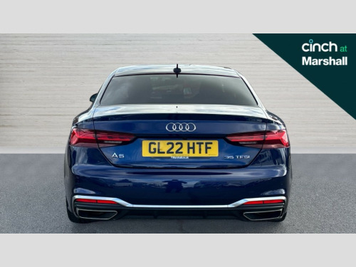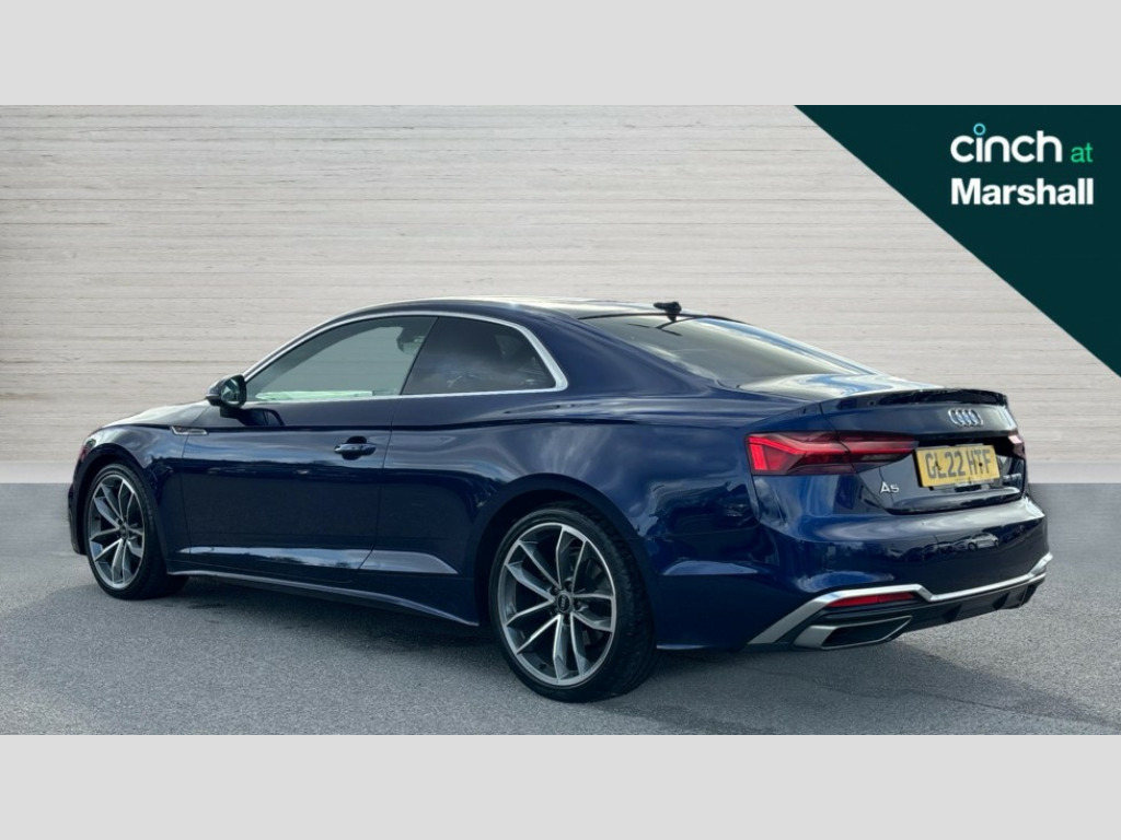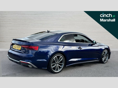 Audi A5 35 TFSI S Line 2dr S Tronic Audi connect safety and service (e-call), Audi connect with Amazon Alexa Integration, Audi drive select (Auto, Comfort, Dynamic and Individual), Audi parking system plus with front and rear sensors, Audi smartphone interface, Audi virtual cockpit - 12.3" full colour digital instrument cluster,vehicle/engine speed,Radio/media information+Driver assistance systems, Automatic start-stop system with coasting functionality and efficiency programme, Bluetooth interface, Electric boot lid release, Electro-mechanical power steering, Email, calendar and text messages displayed via MMI, MMI nav+ with MMI touch - 10.1" high resolution MMI display, touch sensitive, 3D map, route/country info, dynamic route guide, personal route assist, Rear view camera, Service interval indicator, Voice control system, Sports suspension lowered by 23mm, 8 passive loudspeakers, CD player, DAB digital radio reception, Two additional USB ports for rear passenger in rear centre console, Two SDXC card slots, Audi matrix LED headlights with LED rear lights + dynamic front and rear indicators, Auto dimming door mirrors, Auto dimming rear view mirror, Body colour bumpers, Body colour door handles, Body colour front spoiler lip, Body colour side sill trim, Body coloured door mirrors, Electric adjustable heated door mirrors, Electric folding door mirrors, Electric front windows, Front fog lights, Honeycomb structure radiator grille in grained matt black, Kerb-view function for passenger side, LED daytime running lights, LED side indicator lights integrated into door mirrors, LED third brake light, Matt aluminium silver tailpipe trim, Privacy glass, Rain and light sensors, Rear boot, Rear side wing doors, S line badges on front wings, S line front and rear bumpers with side skirts, S Line rear diffuser in matt titanium black with trim strip in matt aluminium silver, Side air inlets in grained matt black with matt aluminium silver inlay, Variable front intermittent wipers, Windscreen with acoustic glazing, 2 seat bench in 2nd row, 4 way electric lumbar support for driver and front passenger, 40/20/40 split folding 2 seater rear seat bench with rear centre armrest, Adjustable steering column, Black cloth headlining, Black perforated leather gearknob, Contrast stitching on seats, steering wheel and gear lever gaiter, Deluxe 3 zone electronic climate control, Front centre armrest, Front head restraints, Front/rear floor mats, Heated front seats, Illuminated door sill trim with S logo, ISOFIX child seat mounting and top tether, Luggage compartment mat, Manual seat adjustment, Rear headrests, Single front passenger seat, Stainless steel pedals, Sunvisors with vanity mirrors, LED interior light pack - A5/RS5, 2 x 3-point rear seatbelts, 6 airbags - Driver, front passenger, curtain and side airbags, Electromechanical parking brake, Electronic Stabilisation Control (ESC) including ABS, ASR and EDL, Front passenger airbag deactivation, Height adjustable front seatbelts, Hill hold assist, Multi collision brake assist, Pop-up bonnet for pedestrian protection, Pre sense city, Seatbelt monitoring, Tyre pressure warning, Variable restraint system, Warning triangle and first aid kit, Anti theft alarm system, Anti theft wheel bolts, Immobiliser, Keyless Go, Remote central locking, Matt brushed aluminium inlays, Tool kit, Tyre repair kit