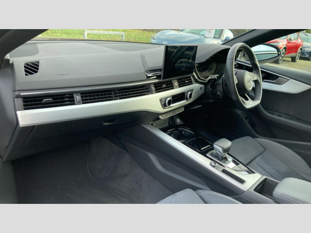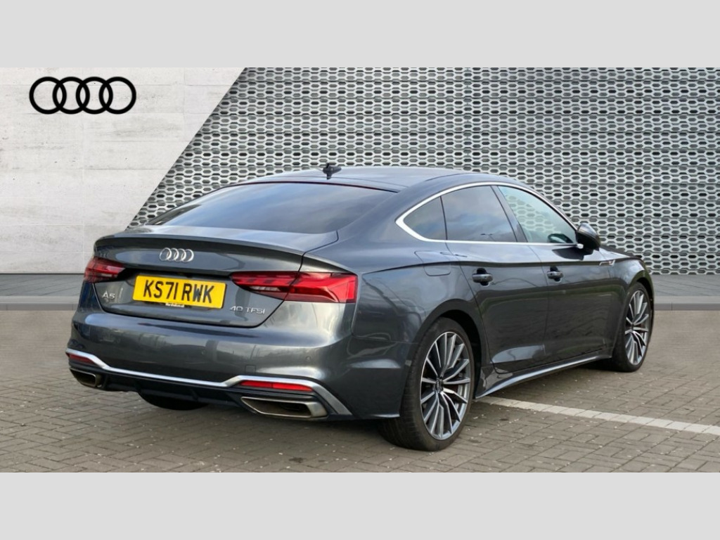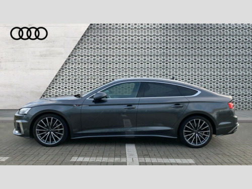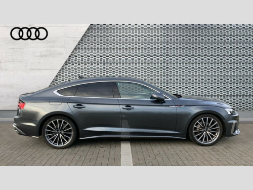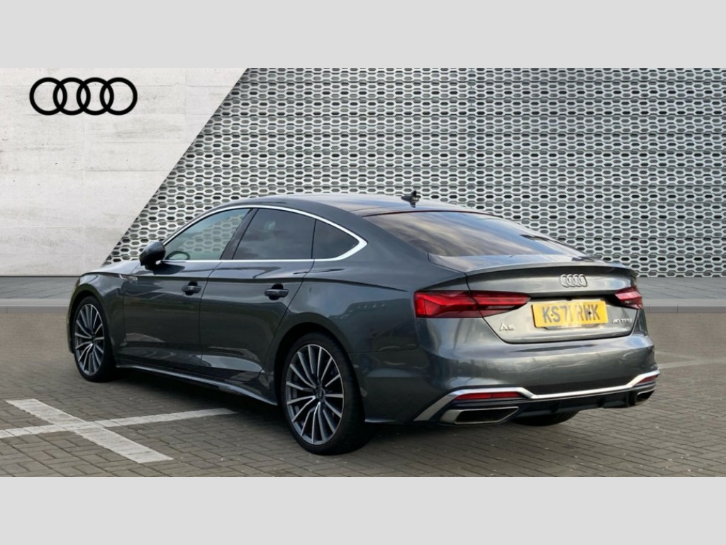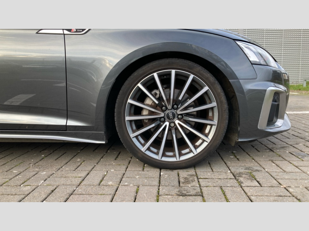 Audi A5 40 TFSI 204 S Line 5dr S Tronic Audi connect safety and service (e-call), Audi connect with Amazon Alexa Integration, Audi drive select (Auto, Comfort, Dynamic, Efficiency and Individual), Audi parking system plus with front and rear sensors, Audi smartphone interface, Audi virtual cockpit - 12.3" full colour digital instrument cluster,vehicle/engine speed,Radio/media information+Driver assistance systems, Automatic start-stop system with coasting functionality and efficiency programme, Bluetooth interface, Electro-mechanical power steering, Email, calendar and text messages displayed via MMI, MMI nav+ with MMI touch - 10.1" high resolution MMI display, touch sensitive, 3D map, route/country info, dynamic route guide, personal route assist, Power operated tailgate, Rear view camera, Service interval indicator, Voice control system, Sports suspension lowered by 23mm, 8 passive loudspeakers, CD player, DAB digital radio reception, Two additional USB ports for rear passenger in rear centre console, Two SDXC card slots, Audi matrix LED headlights with LED rear lights + dynamic front and rear indicators, Auto dimming rear view mirror, Body colour bumpers, Body colour door handles, Body colour front spoiler lip, Body colour side sill trim, Body coloured door mirrors, Electric adjustable heated door mirrors, Electric folding door mirrors, Electric front windows, Front fog lights, Honeycomb structure radiator grille in grained matt black, LED daytime running lights, LED third brake light, Matt aluminium silver tailpipe trim, Privacy glass, Rain and light sensors, Rear side wing doors, S line badges on front wings, S line front and rear bumpers with side skirts, S Line rear diffuser in matt titanium black with trim strip in matt aluminium silver, Side air inlets in grained matt black with matt aluminium silver inlay, Variable front intermittent wipers, Windscreen with acoustic glazing, 4 way electric lumbar support for driver and front passenger, 40/20/40 split folding 3 seater rear bench seat, Adjustable steering column, Black cloth headlining, Black perforated leather gearknob, Contrast stitching on seats, steering wheel and gear lever gaiter, Deluxe 3 zone electronic climate control, Front centre armrest, Front head restraints, Front/rear floor mats, Heated front seats, Illuminated door sill trim with S logo, ISOFIX child seat mounting and top tether, Luggage compartment mat, Manual seat adjustment, Rear headrests, Single front passenger seat, Stainless steel pedals, Sunvisors with vanity mirrors, LED interior light pack - A5/RS5, 3x3 point rear seatbelts, 6 airbags - Driver, front passenger, curtain and side airbags, Electromechanical parking brake, Electronic Stabilisation Control (ESC) including ABS, ASR and EDL, Front passenger airbag deactivation, Height adjustable front seatbelts, Hill hold assist, Multi collision brake assist, Pop-up bonnet for pedestrian protection, Pre sense city, Seatbelt monitoring, Tyre pressure warning, Variable restraint system, Warning triangle and first aid kit, Anti theft alarm system, Anti theft wheel bolts, Immobiliser, Keyless Go, Remote central locking, Matt brushed aluminium inlays, Tool kit, Tyre repair kit