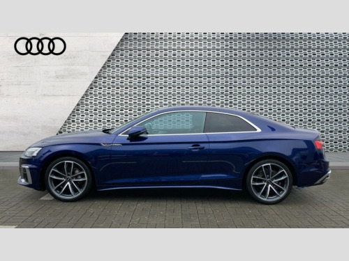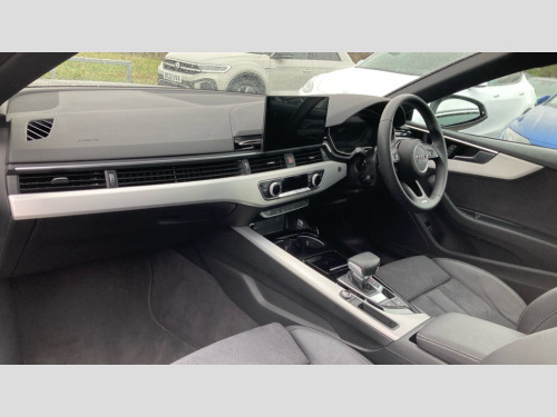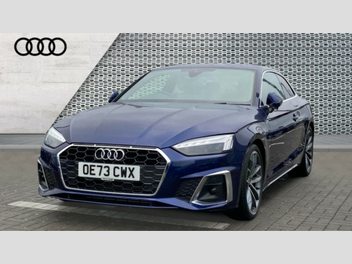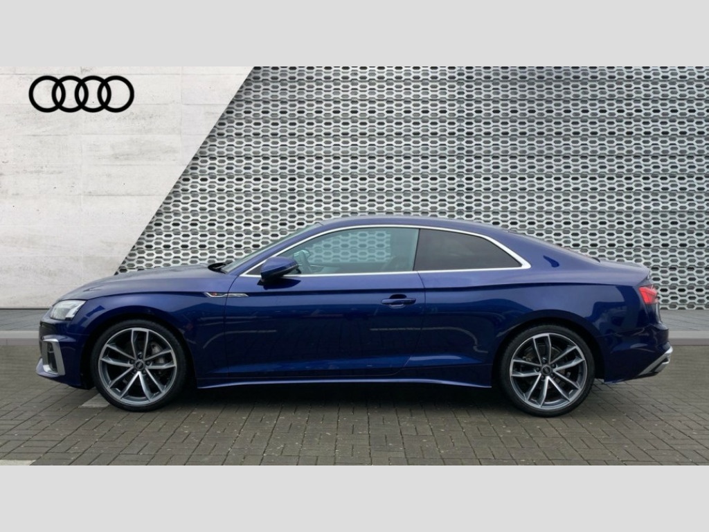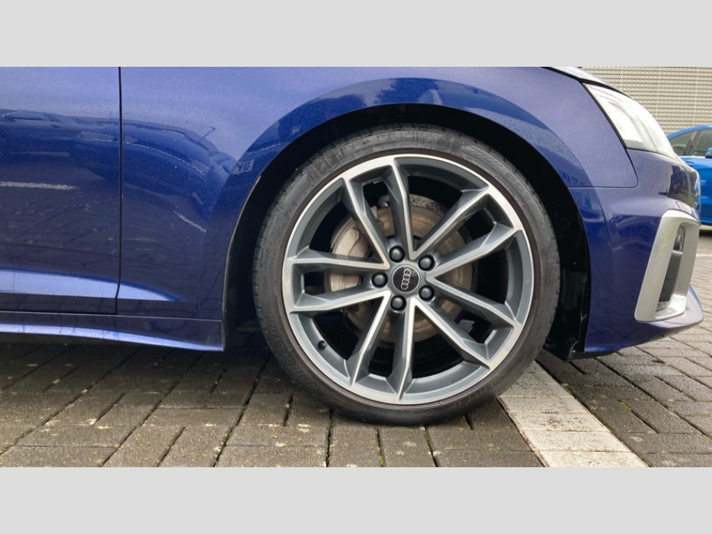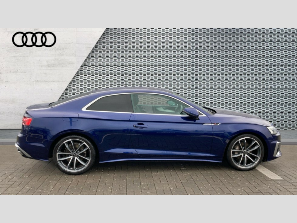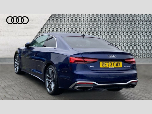Audi A5 40 TFSI 204 S Line 5dr S Tronic [Tech Pack] Audi connect safety and service (e-call), Audi drive select (Auto, Comfort, Dynamic, Efficiency and Individual), Audi phone box light with wireless charging, Audi smartphone interface, Audi virtual cockpit - 12.3" full colour digital instrument cluster,vehicle/engine speed,Radio/media information+Driver assistance systems, Automatic start-stop system with coasting functionality and efficiency programme, Bluetooth interface, Camera based traffic sign recognition, Electro-mechanical power steering, Email, calendar and text messages displayed via MMI, Lane departure warning, MMI nav+ with MMI touch - 10.1" high resolution MMI display, touch sensitive, 3D map, route/country info, dynamic route guide, personal route assist, Park assist with parking aid plus, Power operated tailgate, Rear view camera, Service interval indicator, Voice control system, 54 litre fuel tank, Sports suspension lowered by 23mm, Bang and Olufsen 3D sound system, CD player, DAB digital radio reception, Two additional USB ports for rear passenger in rear centre console, Two SDXC card slots, USB - C in rear, Audi matrix LED headlights with LED rear lights + dynamic front and rear indicators, Auto dimming door mirrors, Auto dimming rear view mirror, Body colour bumpers, Body colour door handles, Body colour front spoiler lip, Body colour side sill trim, Body coloured door mirrors, Electric adjustable heated door mirrors, Electric folding door mirrors, Electric front windows, Front fog lights, Honeycomb structure radiator grille in grained matt black, Kerb-view function for passenger side, LED daytime running lights, LED side indicator lights integrated into door mirrors, LED third brake light, Matt aluminium silver tailpipe trim, Privacy glass, Rain and light sensors, Rear side wing doors, Rear wiper, S line badges on front wings, S line front and rear bumpers with side skirts, S Line rear diffuser in matt anthracite black with trim strip in matt aluminium silver, Side air inlets in grained matt black with matt aluminium silver inlay, Variable front intermittent wipers, Windscreen with acoustic glazing, 3 seat bench in 2nd row, 3 spoke high multifunction leather sport steering wheel with paddle shfit and S badging perforated leather grips, 4 way electric lumbar support for driver and front passenger, 40/20/40 split folding 3 seater rear bench seat, Adjustable steering column, Black cloth headlining, Black perforated leather gearknob, Contrast stitching on seats, steering wheel and gear lever gaiter, Deluxe 3 zone electronic climate control, Front centre armrest, Front head restraints, Front/rear floor mats, Heated front seats, Illuminated door sill trim with S logo, ISOFIX child seat mounting and top tether, Luggage compartment mat, Manual seat adjustment, Rear centre armrest, Rear headrests, Single front passenger seat, Stainless steel pedals and footrest, Sunvisors with vanity mirrors, Extended LED interior light pack - A5/S5, 3x3 point rear seatbelts, 6 airbags - Driver, front passenger, curtain and side airbags, Attention and drowsiness assist, Electromechanical parking brake, Electronic Stabilisation Control (ESC) including ABS, ASR and EDL, Front passenger airbag deactivation, Height adjustable front seatbelts, Hill hold assist, Manual child lock in rear doors, Multi collision brake assist, Pop-up bonnet for pedestrian protection, Pre sense city, Seatbelt monitoring, Tyre pressure warning, Variable restraint system, Warning triangle and first aid kit, Anti theft alarm system, Anti theft wheel bolts, Immobiliser, Keyless Go, Remote central locking, Matt brushed aluminium inlays, Tool kit, Tyre repair kit