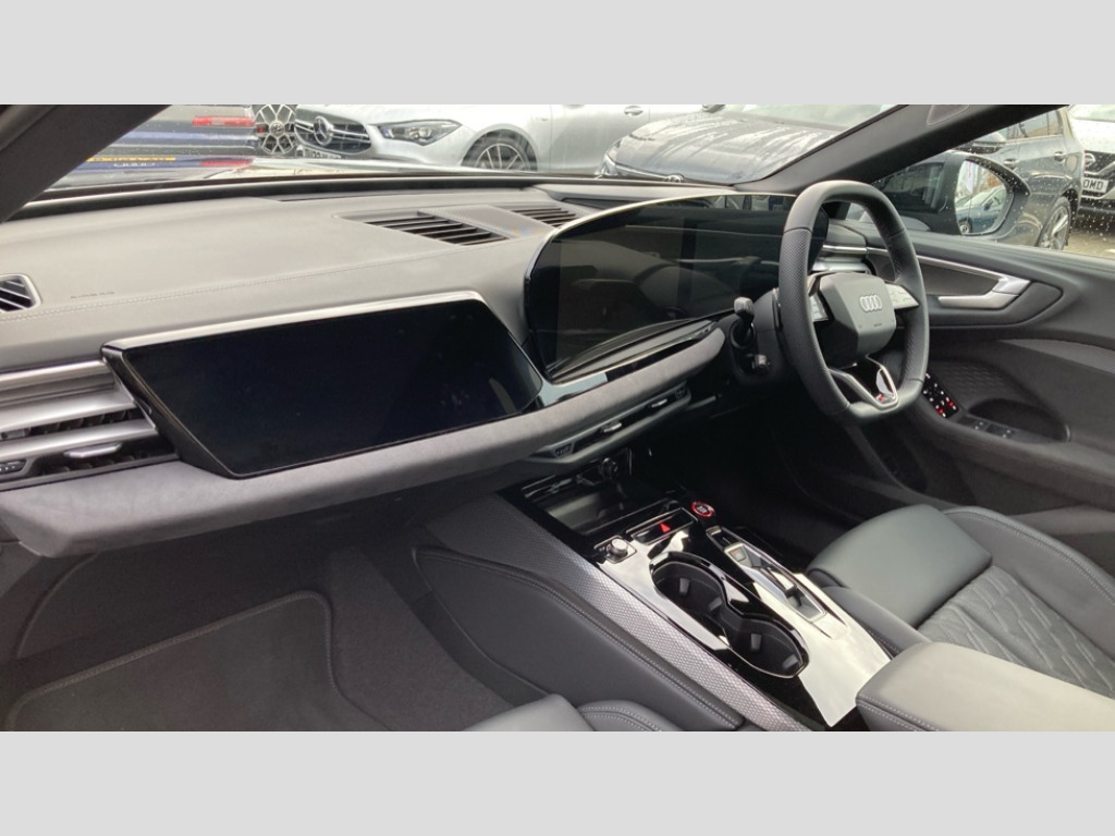 Audi A5 S5 3.0 TFSI Quattro Edition 1 5dr S Tronic Adaptive cruise assist plus with steering intervention, Advanced driver attention and fatigue montior, Audi application store, Audi assistant, Audi connect emergency call and service, Audi drive select, Audi smartphone interface, Audi virtual cockpit plus with 11.9" OLED colour display, Automatic start/stop system with coasting functionality, Camera based traffic sign recognition, Garage door opener, Intersection assist, Lane change assistant with exit warning system, rear cross traffic alert and rear turn assist, Lane departure warning with emergency assist, MMI 10.9" front passenger touch display, MMI navigation plus with high resolution 14.5" OLED touchscreen colour display, Park assist plus, Parking system plus with 360 display, Progressive steering with servotronic, Swerve assist and turn assist, Top view camera, Traffic sign based speed limiter, Quattro with sport differential, S sports suspension with damper control lowered by 20mm, 2 USB-C ports in both the front and rear, DAB digital radio reception, Smartphone compartment with wireless charging, Aluminium window trims, Auto dimming rear view mirror, Black door handles, Black roof rails, Dark chrome-plated tailpipe trims, Digital OLED tail lights including communication light, Door mirrors - electrically adjustable, heated, folding and auto dimming on both sides, Front and rear electric windows, Front door sill trims with aluminium inlays, illuminated with 'S' logo, Headlight cleaning system, High beam assist, LED daytime running lights, LED third brake light, Matrix LED headlights with eight light signatures selectable via the MMI or the myAudi app, Panoramic glass roof with switchable transparency, Privacy glass, Rear and side windows with heat insulating glass, Rear side wing doors, Rear wash/wipe, Red S rhombus badging with S lettering on rear, S bumpers, radiator grille and diffuser in titanium matt black and diffuser insert in matt silver, White rhombus logo projection light in exterior mirrors, Windscreen with acoustic glazing, 3 rear headrests, 3 seat rear bench, 3 spoke leather steering wheel with multi-function buttons with touch control, flattened on top and bottom, with S badging and contrast stitching, 3-zone automatic climate control, 40:20:40 split folding rear seat bench with centre armrest and cup holders, Comfort front centre armrest, Electric steering wheel adjustment, Electrically adjustable front seats, Front and rear floor mats, Front sport seats plus with integrated headrest and S embossed logo, Headlining in black cloth, Heated front and outer rear seats, Heated steering wheel, i-Size child seat mounting on the front passenger side and outer rear seats, i-Size and top tether on the outer rear seats, Luggage compartment lid, electrically opening and closing, Memory function for driver seat, Pearl Nappa leather upholstery, Pneumatically adjustable lumbar support, Single front passenger seat, Stainless steel pedals and footrest, Steering wheel grips in perforated leather and shift paddles, Ventilation seat and massage function for the driver and front passenger, Black styling package plus - A5, Sound and vision pack - A5, 3x3 point rear seat belts, Acoustic vehicle alerting system, Convenience key with safelock, Driver airbag, Electric child safety locks, First aid kit with warning triangle and vests, Front emergency brake assist, Front passenger airbag, Front passenger airbag deactivation, Hill hold assist, Occupant detection in rear seat area, Proactive passenger protection system for front, sides and rear, Red brake calipers, Seat belt monitoring with rear seat occupant reminder, Side airbags in front and rear with head airbag system and front interaction airbag, Tyre pressure loss indicator, Anti theft alarm, Anti-theft wheel bolts, Keyless Go, Accent surfaces and control buttons in gloss black, Black dashboard with contrast stitching, Softwrap in Dinamica with contrast stitching, Upper and lower interior elements in dinamica microfiber, 20" 5 twin spoke design Audi Sport alloy wheels in metallic black and gloss turned finish, Tyre repair kit