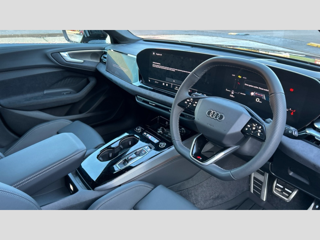 Audi A5 2.0 TFSI 150 Edition 1 5dr S Tronic Adaptive cruise control, Advanced driver attention and fatigue montior, Audi application store, Audi assistant, Audi connect emergency call and service, Audi drive select, Audi virtual cockpit plus with 11.9" OLED colour display, Automatic start/stop system with coasting functionality, Camera based traffic sign recognition, Intersection assist, Lane change assistant with exit warning system, rear cross traffic alert and rear turn assist, Lane departure warning with emergency assist, MMI 10.9" front passenger touch display, MMI navigation plus with high resolution 14.5" OLED touchscreen colour display, Park assist plus, Parking system plus with 360 display, Progressive steering with servotronic, Smartphone interface, Swerve assist and turn assist, Top view camera, Traffic sign based speed limiter, Sports suspension lowered by 20mm, 2 USB-C ports in both the front and rear, Audi sound system impressive sound with 8 loudspeakers including centre speaker and subwoofer, 6-channel amplifier with a total output of 180 watts, DAB digital radio reception, Smartphone compartment with wireless charging, Aluminium window trims, Auto dimming rear view mirror, Black door handles, Black roof rails, Dark chrome-plated tailpipe trims, Door mirrors - electrically adjustable, heated, folding and auto dimming on both sides, Front and rear electric windows, Front door sill trims with aluminium inlays, illuminated with 'S' logo, Headlight cleaning system, High beam assist, LED daytime running lights, LED rear lights pro incl. dynamic rear indicators and illuminated light strip with animated coming and leaving home function, LED third brake light, Matrix LED headlights with eight light signatures selectable via the MMI or the myAudi app, Privacy glass, Rear and side windows with heat insulating glass, Rear side wing doors, Rear wash/wipe, S Line badges on the front wings, S line bumpers, radiator grille and diffuser in phantom black and diffuser insert in matt anthracite, White rhombus logo projection light in exterior mirrors, Windscreen with acoustic glazing, 3 rear headrests, 3 seat rear bench, 3 spoke leather steering wheel with multi-function buttons with touch control, flattened on top and bottom, with S badging and contrast stitching, 3-zone automatic climate control, 40:20:40 split folding rear seat bench with centre armrest and cup holders, Comfort front centre armrest, Electrically adjustable front seats, Front and rear floor mats, Front sport seats with integrated headrest and S embossed logo, Headlining in black cloth, Heated front seats, i-Size child seat mounting on the front passenger side and outer rear seats, i-Size and top tether on the outer rear seats, Luggage compartment lid, electrically opening and closing, Manual steering column height and depth adjustment, Memory function for driver seat, Single front passenger seat, Stainless steel pedals and footrest, Steering wheel grips in perforated leather and shift paddles, Ambient lighting package plus - A5, Black styling package plus - A5, 3x3 point rear seat belts, Acoustic vehicle alerting system, Convenience key with safelock, Driver airbag, Electric child safety locks, First aid kit with warning triangle and vests, Front emergency brake assist, Front passenger airbag, Front passenger airbag deactivation, Hill hold assist, Occupant detection in rear seat area, Proactive passenger protection system for front, sides and rear, Red brake calipers, Seat belt monitoring with rear seat occupant reminder, Side airbags in front and rear with head airbag system and front interaction airbag, Tyre pressure loss indicator, Anti theft alarm, Anti-theft wheel bolts, Keyless Go, Accent surfaces and control buttons in gloss black, Black dashboard with contrast stitching, Softwrap in Dinamica with contrast stitching, Upper and lower interior elements in dinamica microfiber, 20" 5 arm fold design Audi sport alloy wheels in silk matt grey and gloss turned finish, Tyre repair kit