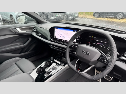 Audi A5 2.0 TFSI 204 S line 5dr S Tronic Adaptive cruise control, Advanced driver attention and fatigue montior, Audi application store, Audi assistant, Audi connect emergency call and service, Audi drive select, Audi virtual cockpit plus with 11.9" OLED colour display, Automatic start/stop system with coasting functionality, Camera based traffic sign recognition, Intersection assist, Lane departure warning, MMI navigation plus with high resolution 14.5" OLED touchscreen colour display, Park assist plus, Parking system plus with 360 display, Progressive steering with servotronic, Rear view camera, Smartphone interface, Swerve assist and turn assist, Traffic sign based speed limiter, Sports suspension lowered by 20mm, 2 USB-C ports in both the front and rear, Audi sound system impressive sound with 8 loudspeakers including centre speaker and subwoofer, 6-channel amplifier with a total output of 180 watts, DAB digital radio reception, Smartphone compartment with wireless charging, Aluminium roof rails, Aluminium window trims, Auto dimming rear view mirror, Body colour door mirrors, Door mirrors - electrically adjustable, heated, folding and auto dimming on both sides, Front and rear electric windows, Front door sill trims with aluminium inlays, illuminated with 'S' logo, High beam assist, LED headlights Plus incl. digital daytime running lights, turning light, all-weather light, motorway light, manouevring light and intersection light, LED rear lights pro incl. dynamic rear indicators and illuminated light strip with animated coming and leaving home function, LED third brake light, Privacy glass, Rear and side windows with heat insulating glass, Rear side wing doors, Rear wash/wipe, S Line badges on the front wings, S line bumpers, radiator grille and diffuser in phantom black and diffuser insert in matt anthracite, White rhombus logo projection light in exterior mirrors, Windscreen with acoustic glazing, 3 rear headrests, 3 seat rear bench, 3 spoke leather steering wheel with multi-function buttons with touch control, flattened on top and bottom, with S badging and contrast stitching, 3-zone automatic climate control, 40:20:40 split folding rear seat bench with centre armrest and cup holders, Comfort front centre armrest, Front and rear floor mats, Front seats with manual adjustment for position and 4-way electric lumbar support, Front sport seats with integrated headrest and S embossed logo, Headlining in black cloth, Heated front seats, i-Size child seat mounting on the front passenger side and outer rear seats, i-Size and top tether on the outer rear seats, Luggage compartment lid, electrically opening and closing, Manual steering column height and depth adjustment, Single front passenger seat, Stainless steel pedals and footrest, Steering wheel grips in perforated leather and shift paddles, Ambient lighting package plus - A5, 3x3 point rear seat belts, Driver airbag, Electric child safety locks, First aid kit with warning triangle and vests, Front emergency brake assist, Front passenger airbag, Front passenger airbag deactivation, Front side airbags with head airbag system and front interaction airbag, Hill hold assist, Seat belt monitoring with rear seat occupant reminder, Tyre pressure loss indicator, Anti theft alarm, Anti-theft wheel bolts, Keyless Go, Accent surfaces and control buttons in gloss black, Black dashboard with contrast stitching, Inlays in matt brushed aluminium with linear embossing, anthracite, Softwrap in leatherette with contrast stitching, Upper and lower interior elements in leatherette, Tyre repair kit