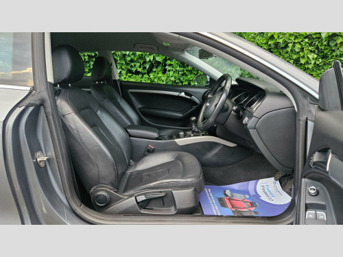 We are proud to offer our latest arrival, this stunning A5 Coupe... , Presented in beautiful Monsoon Grey Metallic bodywork, the car has has only 1 OWNER FROM NEW!, Absolutely beautiful condition throughout and really dos drive exceptionally well. , *** READY TO DRIVE AWAY TODAY!! ***, , SPECIFICATION:, Full Black Nappa Leather Interior... Audi Multi-Media Interface (MMI) with Satellite Navigation (Sat Nav) Bluetooth... Dual Zone Digital Climate Control with Automatic Air Conditioning... Auto-Activating Headlights... Front & Rear Parking Sensors with Park Assist... Multi-Function Leather Steering Wheel... Cruise Control with Speed Limiter... 17 Alloy Wheels... 2 x RCL Key Fobs... and a long list of additional standard features. , MOT:, The car has a new 12 month MOT with NO ADVISORIES. , SERVICE HISTORY:, Backed up by an excellent and fully documented Service History, with services recorded at 8k, 17k, 23k, 30k, 40k, 47k, 60k, 67k and 76k. The Timing Belt and Water Pump has also been replaced. , WARRANTY:, This A5 comes supplied to you with a 3 month nationwide Warranty plan included. , FINANCE:, Yes, finance packages available - Quotes and proposals can be done over the phone., , PART EXCHANGE:, Yes, all part exchange vehicles are welcome.