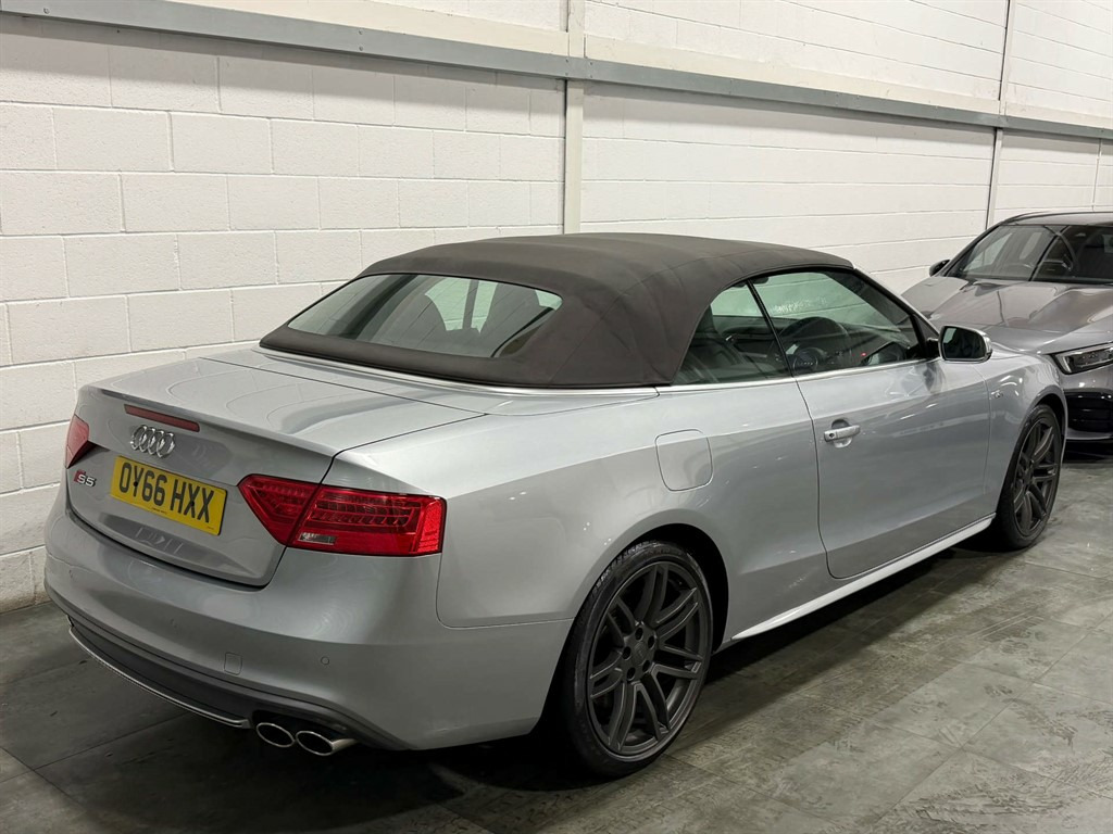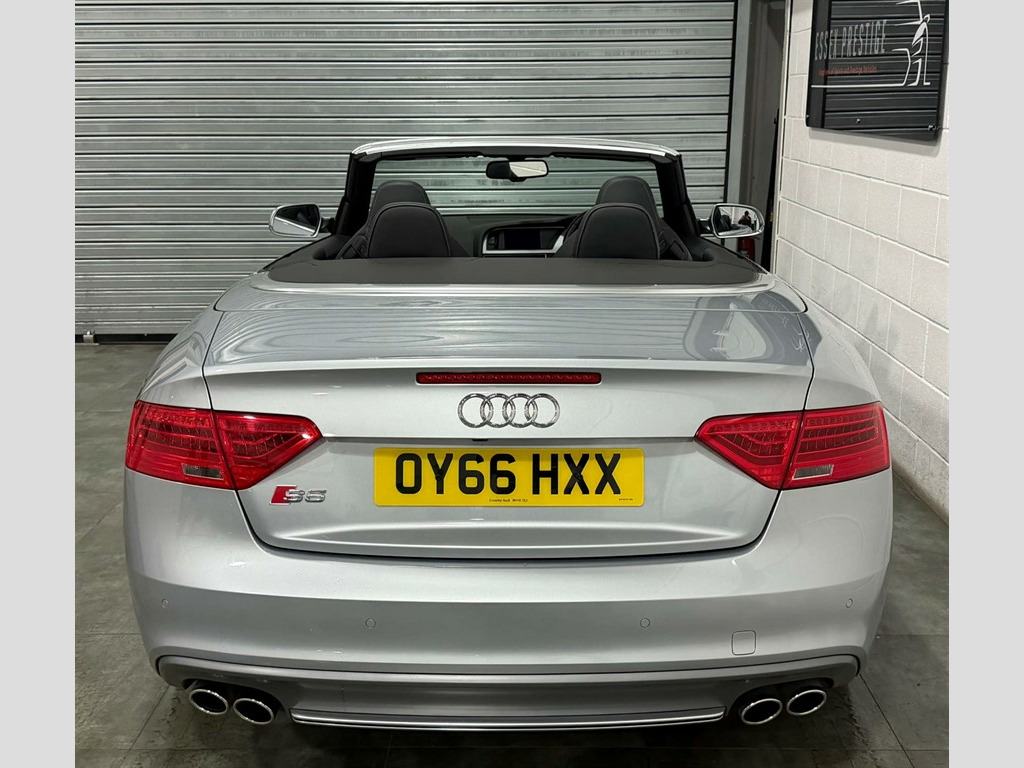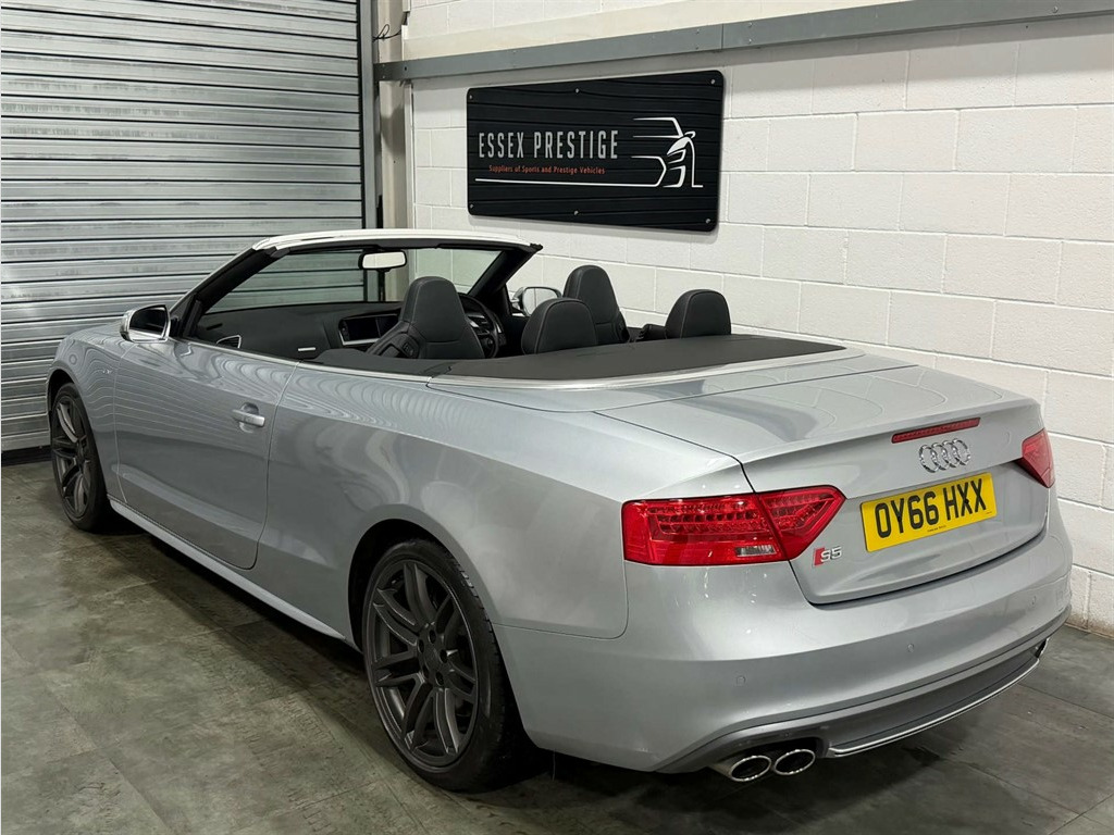 Full Service History, Sat Nav, Xenon Plus Headlights,Warning Triangle,Tyre Pressure Loss Indicator,Tool Kit and Car Jack,Through-Load Facility,Thatcham Category 1 Alarm and Immobiliser,Steering Wheel - 3-spoke S Sport Multi-function Leather with Contrast Stitching,Steering Column - Rake and Reach Adjustment,Space Saver Spare Wheel,S5 Super Sport Seats,S Sport Suspension,Auto-Dimming Rear-View Mirror,ESC - Electronic Stabilisation Control,Door Mirrors - Electrically Adjustable and Heated,Deluxe 3-Zone Climate Control,DAB Digital Radio Reception,Cup Holders - Centre Console,Cruise Control,Colour Drivers Information System - DIS,Brake Calipers - Painted with S5 Logo,Bluetooth Interface,Black Hood,Electric Windows - Front and Rear,Auto Opening Boot Lid,Audi Sound System Speaker Package,Audi Parking System Plus,Audi Concert Radio,Anti Theft Locking Wheel Bolts,Aluminium-Effect Door Mirror Housings,Aluminium Scuff Plates with S5 Logo,Airbags - Front Side,Acoustic Hood with LED Passenger Reading Lights,ABS - Anti-Lock Braking System,ISOFIX Child Seat Mounting,S Radiator Grille with S5 Logo,S Model Enhanced Braking System,S Instrument Dials,S Body Styling,Rest Recommendation System,Light and Rain Sensor,Interior Light Package,Interior Chrome Package,Intelligent Key,Inlays - Matt Brushed Aluminium,19in Alloy Wheels - 5-Parallel Spoke Design,Full-size Airbags for Driver and Front Passenger,Front and Rear Fog Lights,Front and Rear Floor Mats,Front Centre Armrest,First Aid Kit,Exterior Aluminium Package,Exhaust Pipes,Electromechanical Power Steering,Electromechanical Parking Brake,Door Mirrors - Heated-Electrically Adjustable-Folding,Adaptive Lights,Audi Drive Select