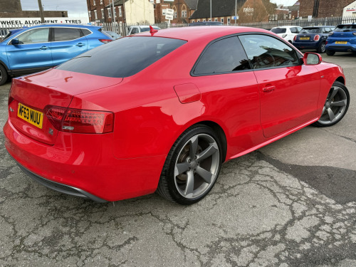This stunning Audi A5 Black Edition S Line is available from MATS Garage, a family owned used car dealership in Goole, East Yorkshire. Here at MATS Garage, we pride ourselves on the quality of our used cars which are all MOTd, serviced and prepared in-house at our workshop with over 100 years combined mechanical experience. MATS Garage has an on-site full time professional detailer as well, meaning all the cars we offer are mechanically sound and also look fantastic inside and outside. All our vehicles come with; 12 months MOT, service as required, HPI check, approved vehicle inspection and 3 months comprehensive in-house warranty. There is also the option to purchase a 12 month warranty, available from £300. We put our customers first, from the initial enquiries (no question is ever too small!), to our no pressure test drives and through to our after-sales service too. We offer finance (subject to status) and part exchange if required, please get in touch for more details. MATS Garage is located in the centre of Goole, a 1 minute walk away from the train station, or 5 minutes from Junction 36 of the M62. You can ask any questions, sort any paperwork etc either online, over the phone, or in person - whichever way you prefer. The bright red Audi A5, registered in late 2013, has a low mileage of 62,108 backed up with a full service history. Immaculate inside & outside, and comes with 2 keys, sat nav, bluetooth, full leather, air conditioning, and much more. Cars can be reserved from £200, and we accept BACS, all major credit/debit cards, cash (up to £8500) or finance options are available if required. , Audi A5 S Line Black Edition Quattro. , 2013, 63 Plate. , 2.0 TDi 177. , 6 Speed Manual. , 62,108 Miles. , Full Service History. , 2 Keys. , Sat Nav. , Full Leather Interior. , Bluetooth. , Air Conditioning. , Bang & Olufsen Upgrade Sound System. , Front and Rear Parking Sensors. , Xenon Headlights. , Privacy Glass. , Flat Bottom Steering Wheel. , Stunning Car. , Finance Available - Ring For Best Prices. , Will Come With : - Service - 12 Months MOT - 3 Months Warranty. , 12 Months Warranty Available From £300. , We are located in Goole, East Yorkshire, DN14 5BS. , Easy access from M62, Junction 36. , Phone Mat on 01405 780935 or 07753 959899. , Full List of Cars For Sale at www.matsgarage.co.uk