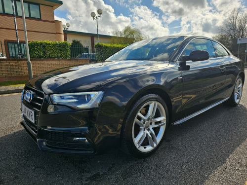 For sale an Audi A5 Sline at Motorline Car Sales Leicester. Car has just been serviced and ready to go. Has MOT till May 26. Car is only £35 a year road tax so cheap to run and very fuel efficient. Car has 18 inch alloys, leather trim, parking sensors, and climate control. Nationwide delivery available, finance arranged, driveway insurance available, extended warranty available and pick up from local train station (Syston) available. Major cards accepted. r conditioning, bluetooth connection, climate control, comms pack, door mirrors electrically foldable, dual climate zones, full leather, manufacturer direct, rain-sensing wipers, usb/ipod interface, xenon headlamps, adaptive cruise control, cruise control, digital instrument cluster, esp, front parking sensor, parking sensors, power steering, rear parking sensor, reverse parking aid, stability control, steering wheel rake adjustment, traction control, trip computer, abs, air bag, child locks, curtain airbags, isofix child seat anchor points, multiple airbags, passenger airbag, pedestrian airbag, quick-clear screen, rear airbags, service indicator, side air bags, twin air bags, tyre pressure monitor, alarm, anti-theft system, central locking, immobiliser, locking wheel nuts, privacy glass, remote alarm, remote central locking, auto-dip rearview, automatic electric windows, electric aerial, electric front windows, electric handbrake, electric mirrors, electric tailgate, electric windows, heated door mirrors, rear electric windows, windscreen heating, auxiliary input socket, cd player, mp3 player, oem sound system, steering wheel audio controls, stereo, front armrest, front head restraints, height adjustable drivers seat, lumbar support, retractable headrests, sports seats, folding rear seats, rear armrest, rear headrests, 3 zone climate control, sport suspension, alloy wheels, auto lighting, body coloured bumpers, colour coded body, front fog lights, headlamp jetwash, headlight washers, led 3rd brake light, led daytime running lights, led foglights, led headlights, led indicator lights, led rear lights, metallic paintwork