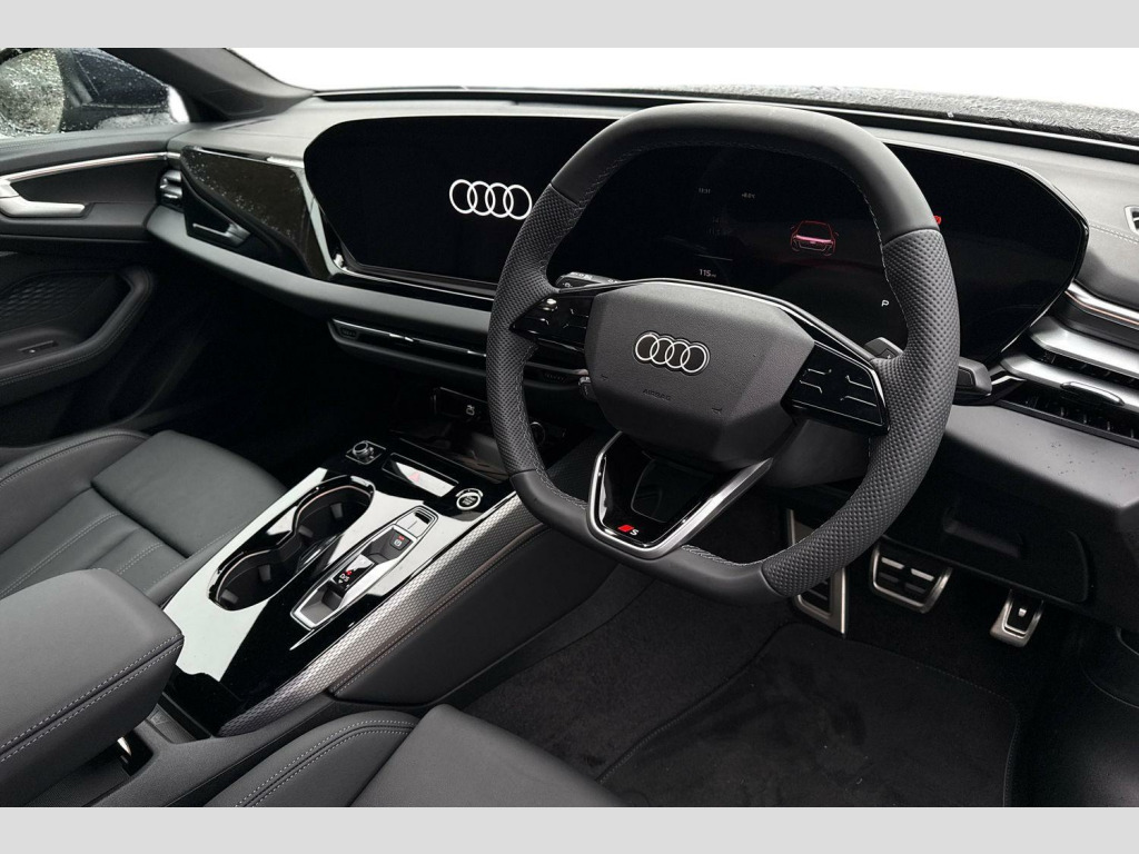 ℹ️Vehicle price shown includes a deposit contribution of £7000 when purchased on finance by 31/03/2026. Solutions Personal Contract Plan. 7.9% APR Representative. Audi Financial Services. Terms and Conditions apply. 19in Alloy Wheels - 8.0J 5-Arm Aero Design in Gloss Turned Black, 19in Alloy Wheels - 8.0J 5-Twin-V-Spoke Design - Graphite Grey, 2 USB-C Ports in both the Front and the Rear, 3-Zone Automatic Climate Control, Accent Surfaces and Control Buttons in Gloss Black, Adaptive Cruise Control, Advanced Driver Attention and Fatigue Monitor, Airbags in Front - Front Passenger Airbag Can Be Manually Deactivated, Aluminium Window Trims, Ambient Lighting Package Plus, Anti Theft Wheel Bolts, Anti-Theft Alarm, Audi Application Store and Smartphone Interface, Audi Assistant, Audi Connect Emergency Call and Service with Audi Connect Remote and Control, Audi Connect Navigation and Infotainment (3 Year Subscription From New), Audi Drive Select, Audi Sound System, Auto-Dimming Rear-View Mirror, Automatic Start-Stop with Coasting Functionality and Efficiency Programme, Body Coloured Door Mirrors, Camera Based Traffic Sign Recognition, Comfort Centre Armrest - Front, DAB Digital Radio Reception, Dashboard - Black with Contrast Stitching, Electric Child Safety Lock, Exterior Mirrors - Electrically Adjustable - Heated and Folding - Automatically Dimming on Both Sides, First Aid Kit and Warning Triangle and Safety Vests, Front Door Sill Trims with Aluminium Inlays - Illuminated with S Logo, Front Emergency Brake Assist, Front Seats with Manual Adjustment for Position and 4-Way Electric Lumbar Support, Front Side Airbags with Head Airbag System and Front Interaction Airbag, Front and Rear Floor Mats, Headlining in Cloth - Black, Heated Front Seats, High Beam Assist, Hill Hold Assist, I-Size Child Seat Mounting on the Front Passenger Side and I-Size and Top Tether on the Outer Rear Seat, Inlays in Matt Brushed Aluminium with Linear Embossing - Anthracite, Intersection Assist, Keyless Go, LED Headlights, LED Rear Lights Pro, Lane Departure Warning, Luggage Compartment Lid - Electrically Opening and Closing, MMI Navigation Plus with High Resolution 14.5in OLED Touchscreen Colour Display and Audi Virtual Cockpit Plus with 11.9in OLED Colour Display, Manual Steering Column Adjustment, Park Assist Plus, Parking System Plus with 360 Degree Display, Phone Compartment with Wireless Charging, Privacy Glass, Progressive Steering with Servotronic, Rear-View Camera, S Line Badge on the Front Wings, S Line Exterior Styling, Seat Belt Monitoring with Rear Seat Occupant Reminder - Child Presence Detection, Side and Rear Windows in Heat-Insulating Glass, Softwrap in Leatherette with Contrast Stitching, Split-Folding Rear Seat Bench Can Be Split 40-20-40 with Centre Armrest and Cup Holders, Sports Suspension - Lowered by 20mm, Stainless Steel Pedals and Footrest, Steering Wheel - 3-Spoke Leather - Multi-Function Buttons with Touch Control - Flattened on Top and Bottom - S Badging - Contrast Stitching - Steering Wheel Grips in Perforated Leather - Shift Paddles, Swerve Assist and Turn Assist, Traffic-Sign-Based Speed Limiter, Tyre Pressure Loss Indicator, Tyre Repair Kit, Upper and Lower Interior Elements in Leatherette, White Rhombus Logo Projection Light in Exterior Mirrors, Windscreen with Acoustic Glazing, Attention and Drowsiness Detection with Driver Observation, Body-Coloured Door Handles, Convenience Key, Digital Key, Front and Rear Side Airbags with Head Airbags and Interaction Airbag, Increased Charging Capacity for USB Ports - 2x100 Watts in rear - 2x60 Watts in Front, LED Headlights Plus, S Line Badges on Front Wings, Side Assist with Exit Warning - Rear Cross-Traffic Assist and Rear Turn Assist